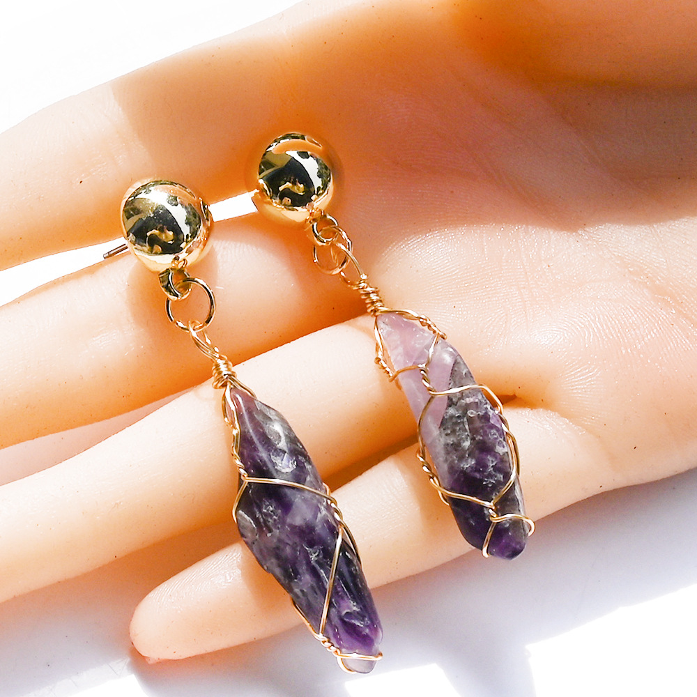 Ensembles-cadeaux bijoux, améthyste, pendentif & boucle d'oreille, Placage de couleur d'or, bijoux de mode, plus de couleurs à choisir, 20-40mm, Vendu par fixé