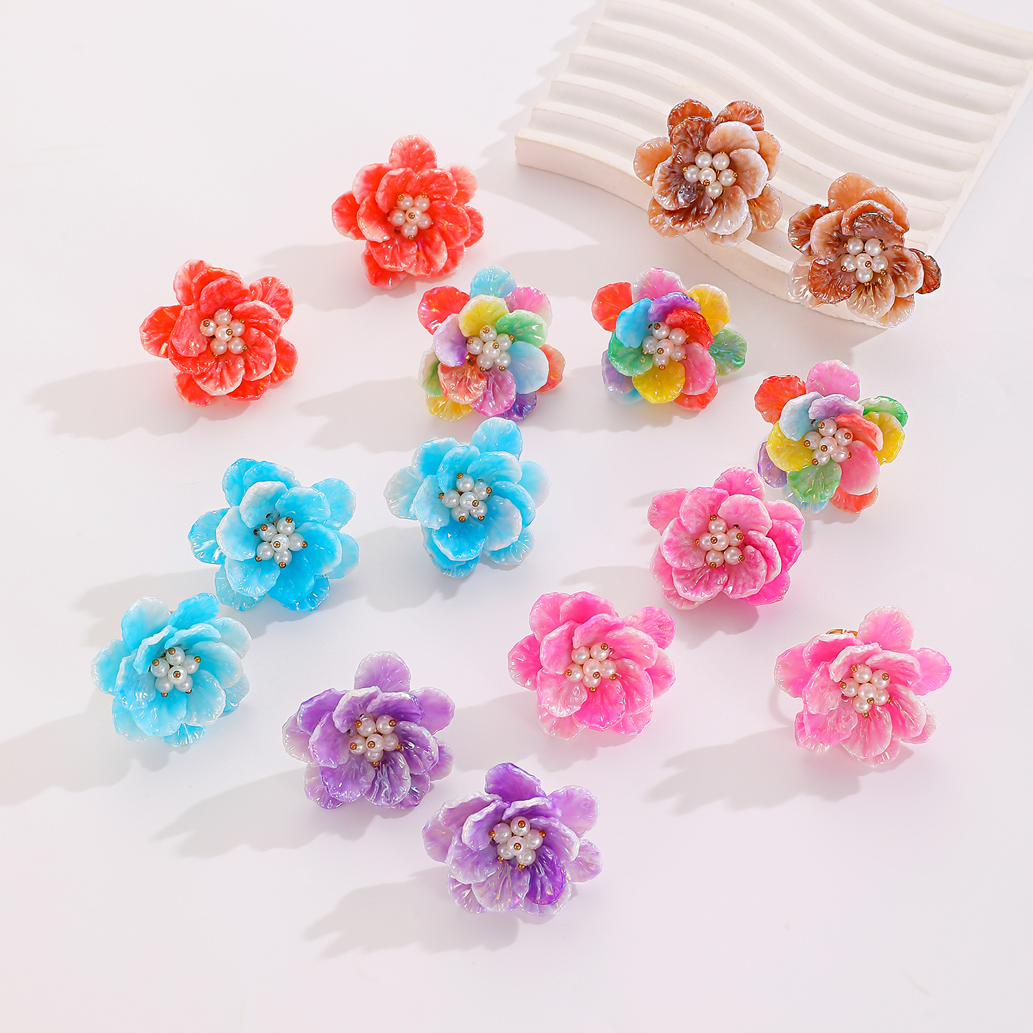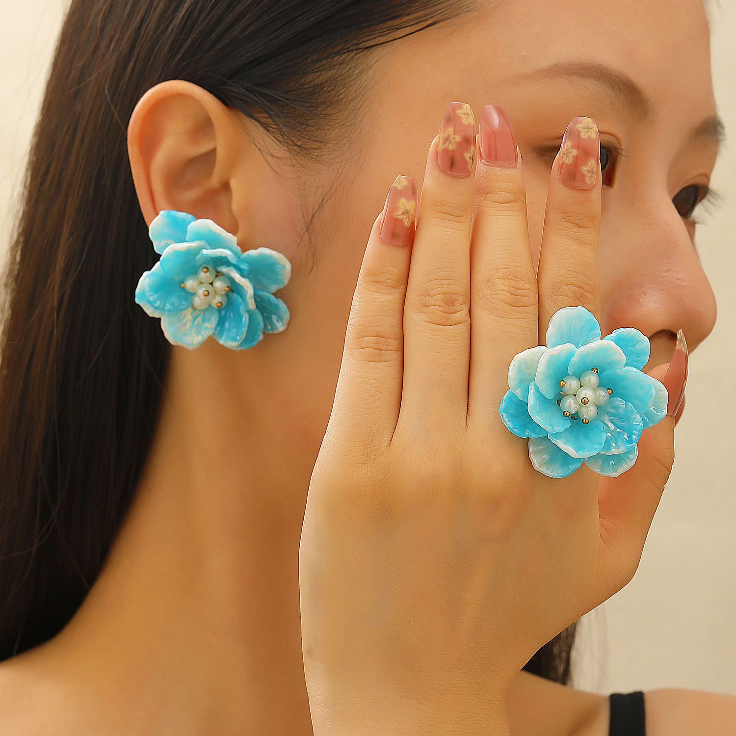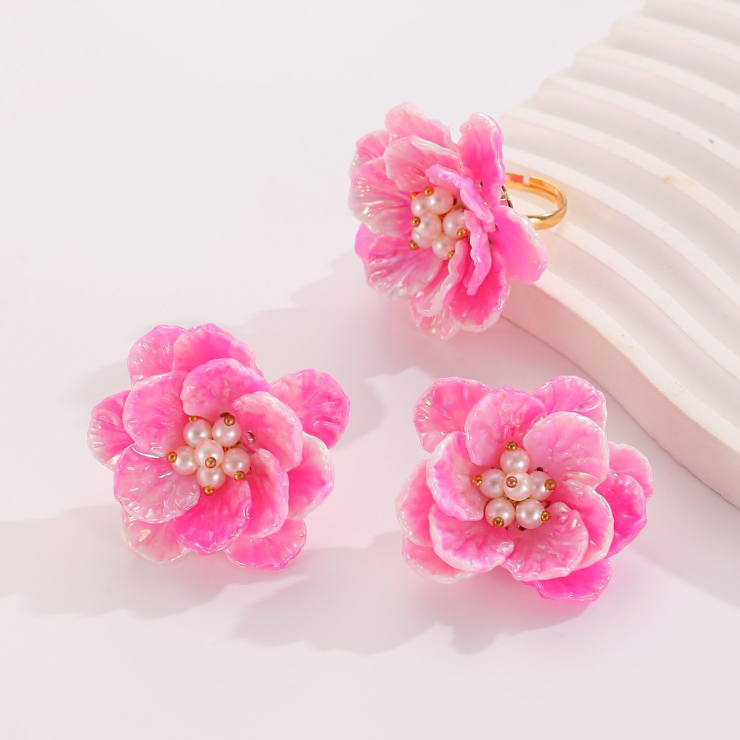 Ensembles-cadeaux bijoux, laiton, Boucle d’oreille stud & bague, anneau, avec perle de plastique & Acrylique, Placage, bijoux de mode, plus de couleurs à choisir, Vendu par PC