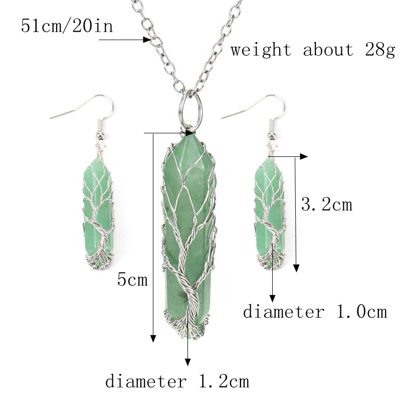 pierre gemme parure de bijoux, pendentif & boucle d'oreille, avec laiton, pendule, Placage de couleur platine, naturel & différents matériaux pour le choix, 10-12x60-70mm Vendu par fixé