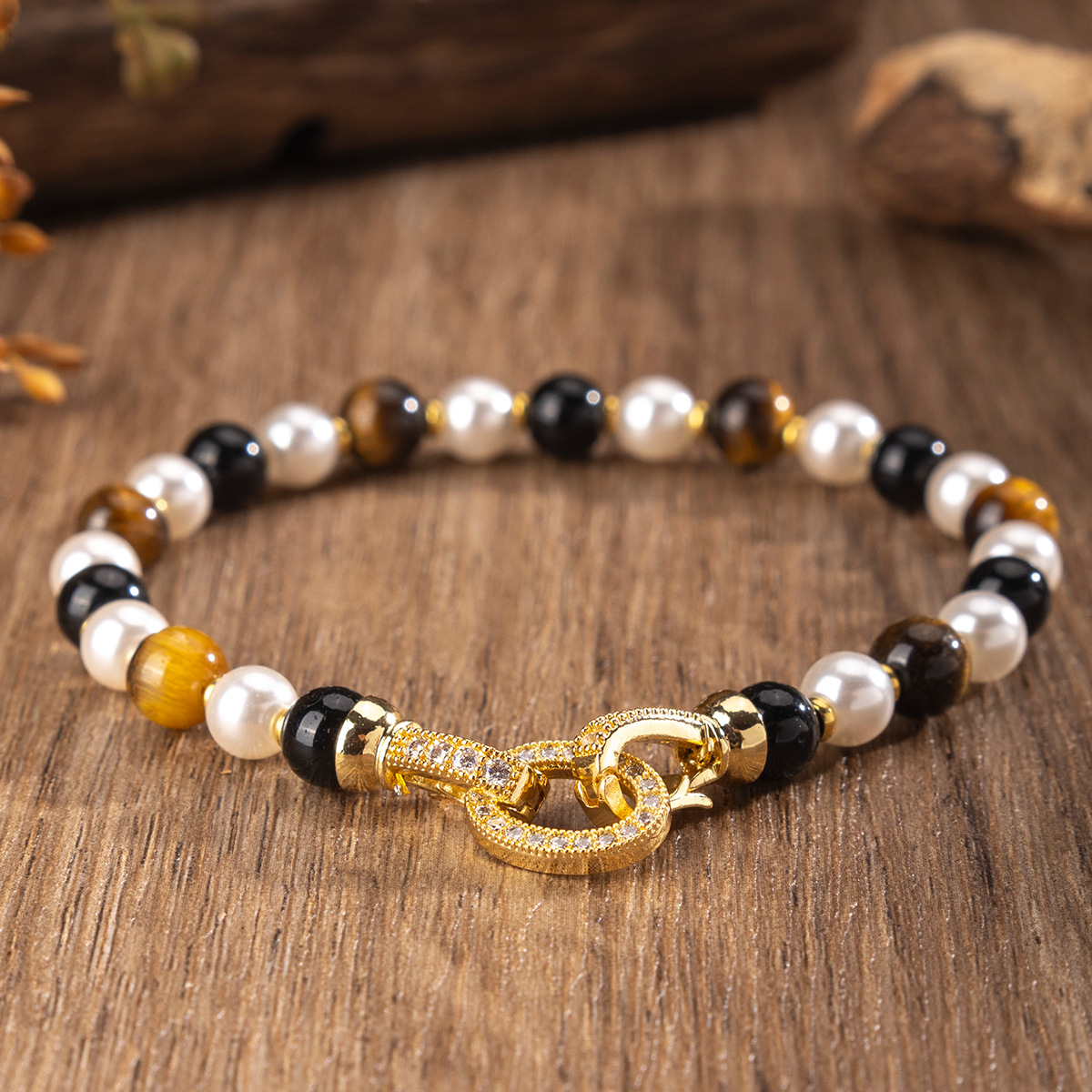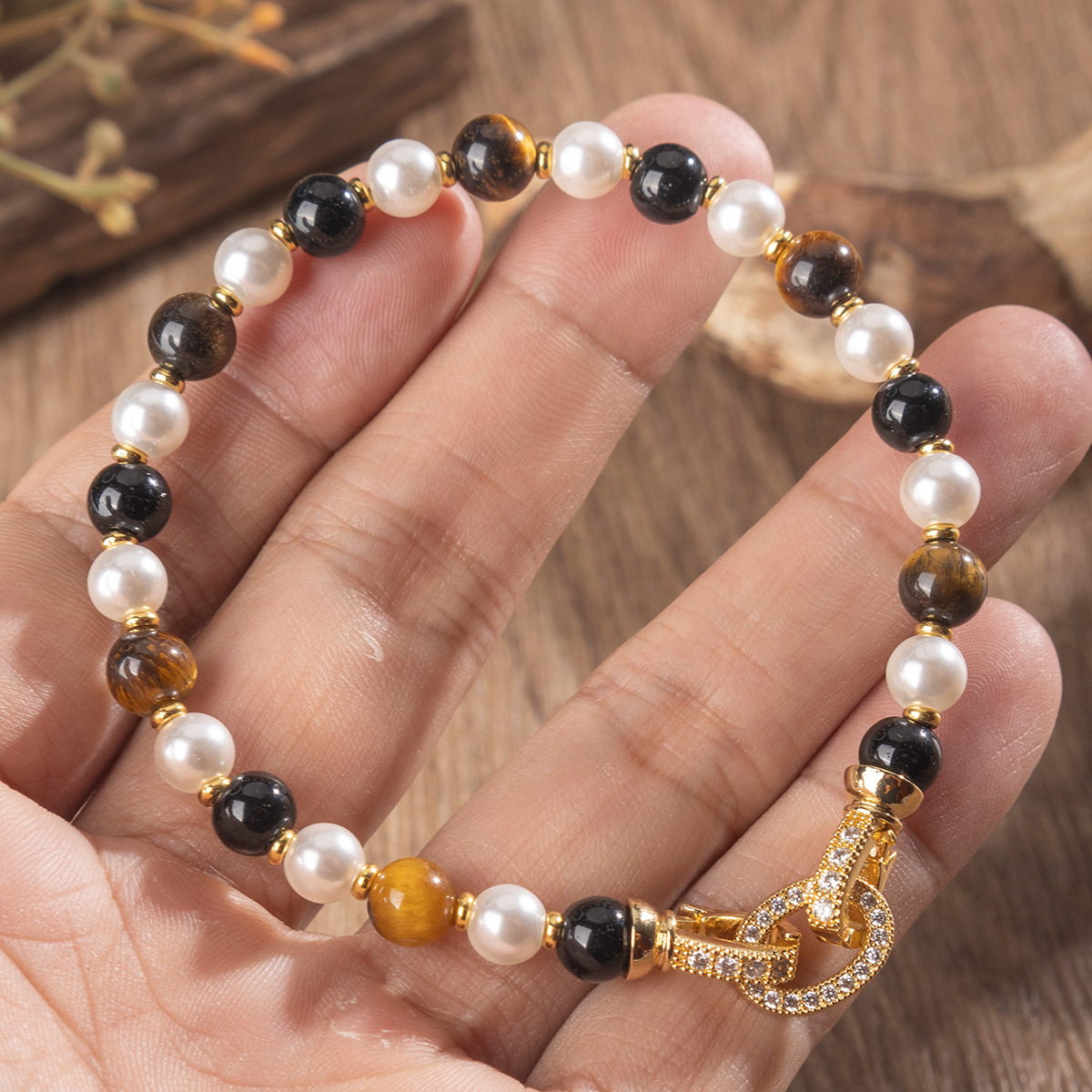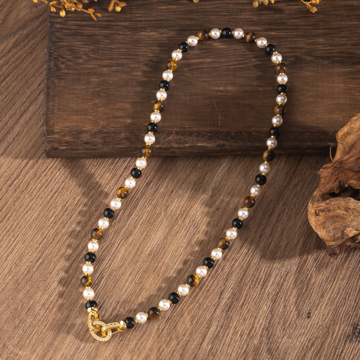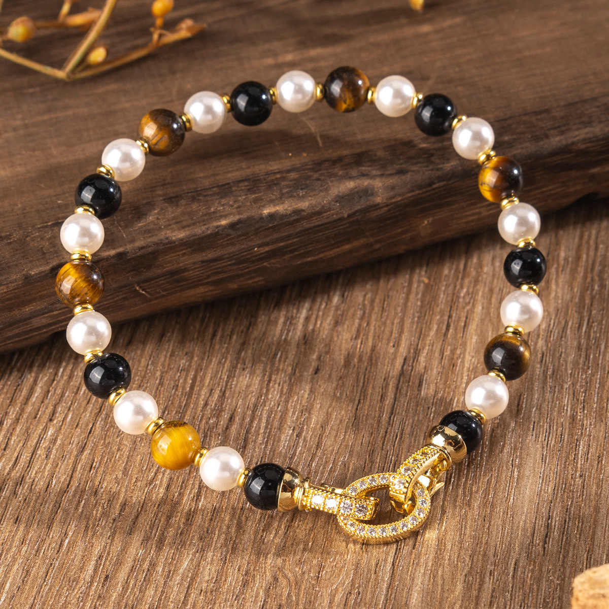 Ensembles-cadeaux bijoux, oeil de tigre, avec perle de plastique & Acier inoxydable 304, Placage de couleur d'or, styles différents pour le choix & pour femme & avec strass, Vendu par PC