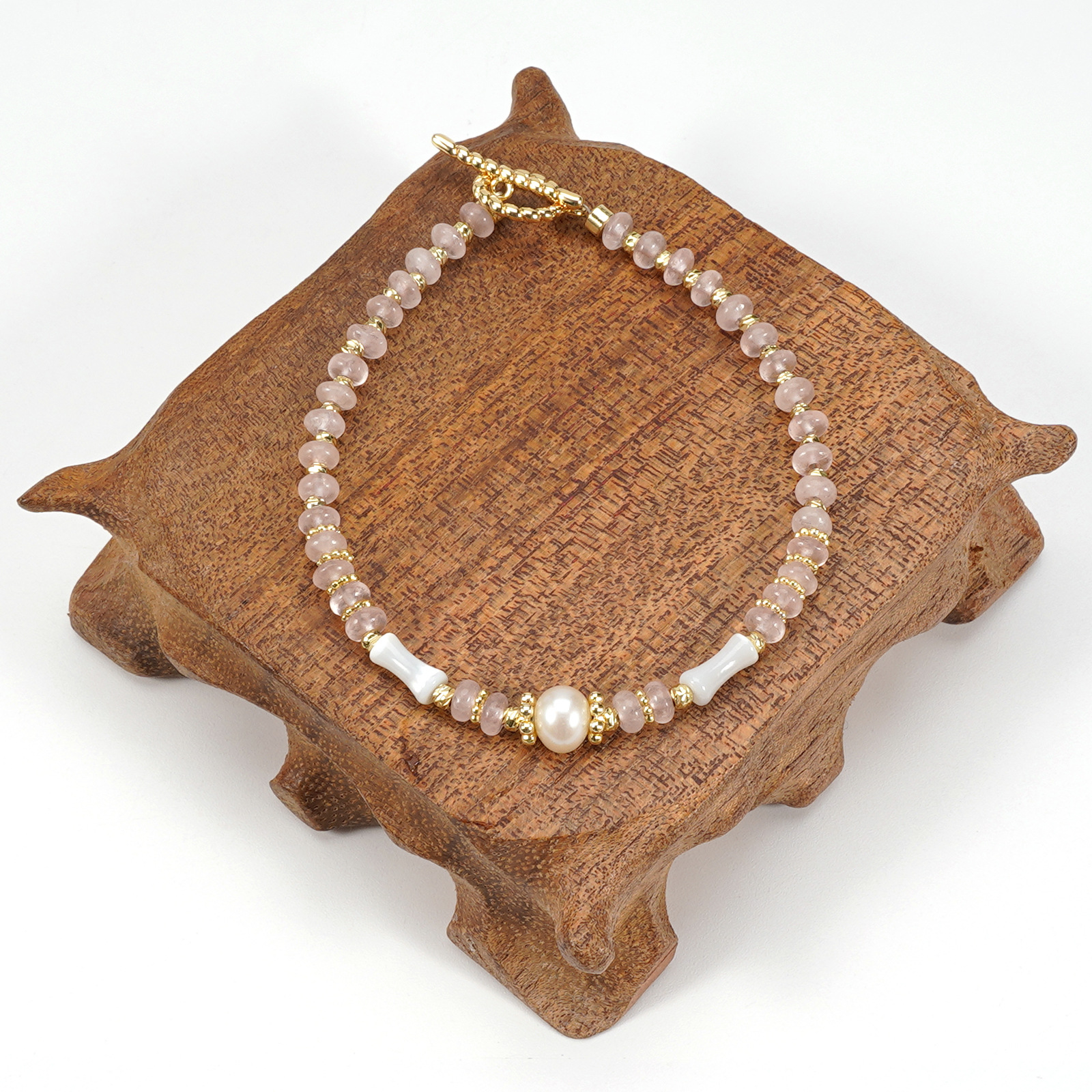 Ensembles-cadeaux bijoux, laiton, Bracelet & collier, avec coquille & perle d'eau douce cultivée & quartz rose, Placage de couleur d'or, bijoux de mode, plus de couleurs à choisir, Vendu par PC