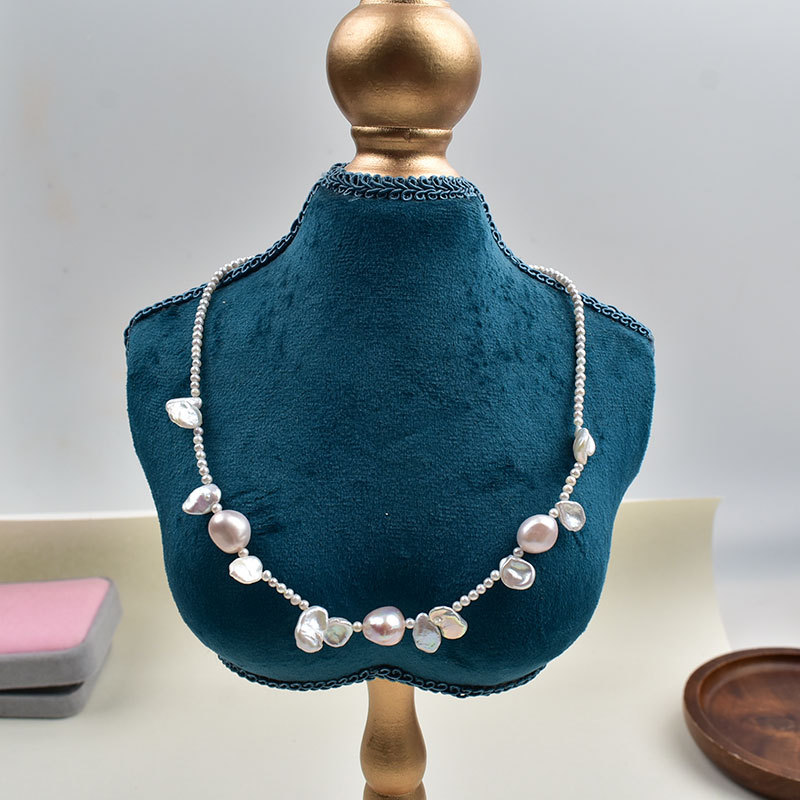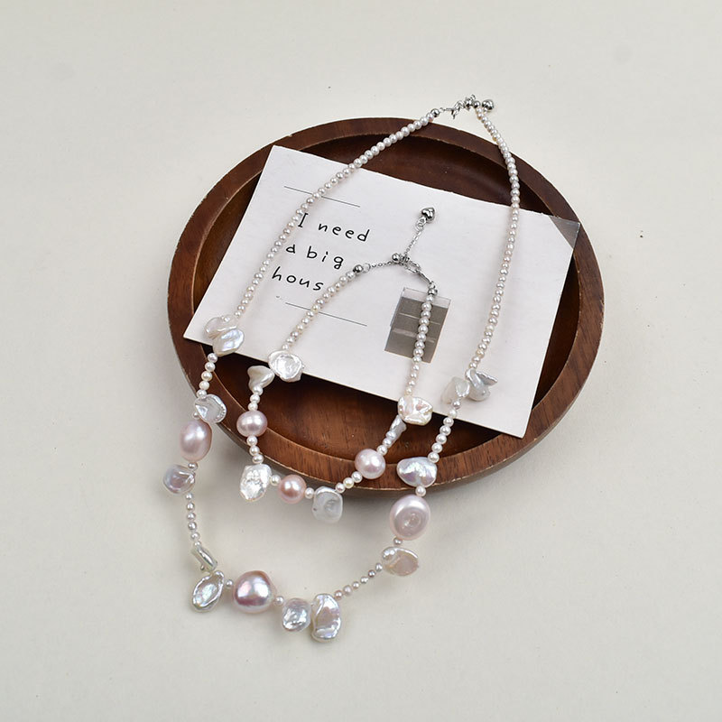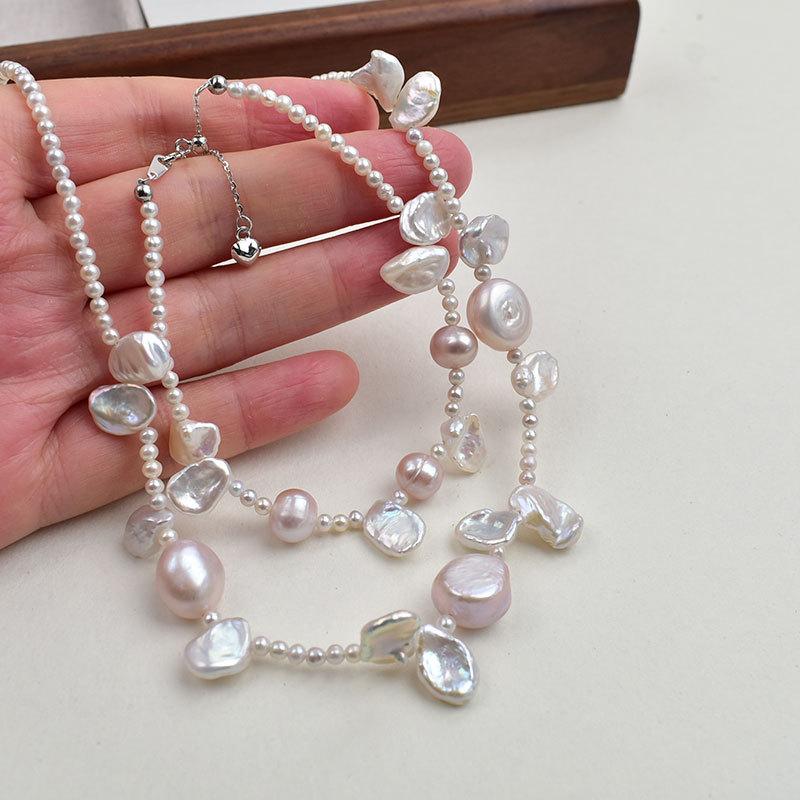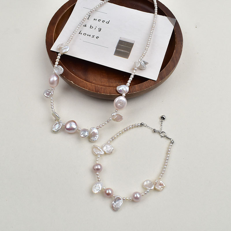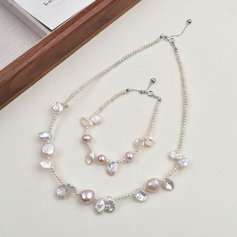 Ensembles de bijoux de perle d'eau douce en argent sterling, argent sterling 925, Bracelet & collier, avec perle d'eau douce cultivée, Baroque, bijoux de mode, blanc, 4-5mm, Longueur:50 cm, Vendu par fixé