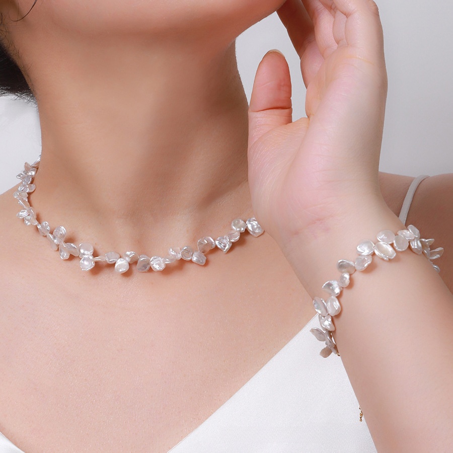Ensembles de bijoux de perle d'eau douce en laiton, perle d'eau douce cultivée, Bracelet & collier, avec laiton, pomme de terre, Placage de couleur argentée, pour femme, plus de couleurs à choisir Environ 7.1 pouce, Environ 17.7 pouce, Vendu par fixé