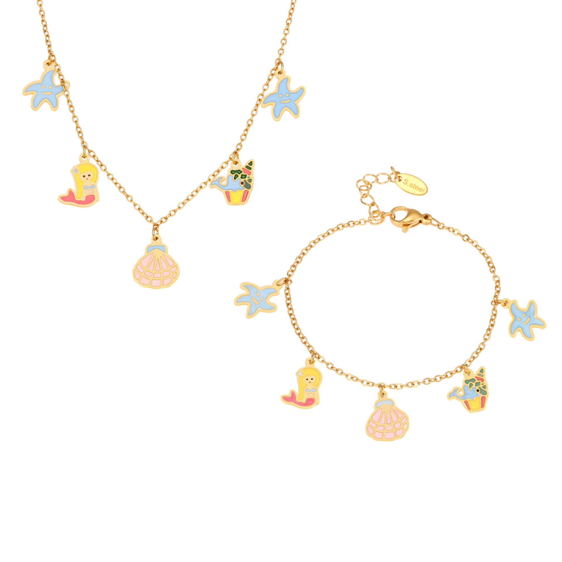 Ensembles de bijoux en acier inoxydable émaillé, Acier inoxydable 304, Placage, pour les enfants, doré, Vendu par PC