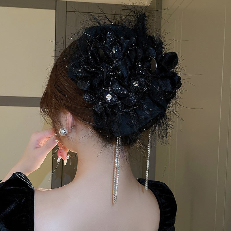 Etamine griffes pince à cheveux, avec Acrylique, pour femme & avec strass, noire, Vendu par PC