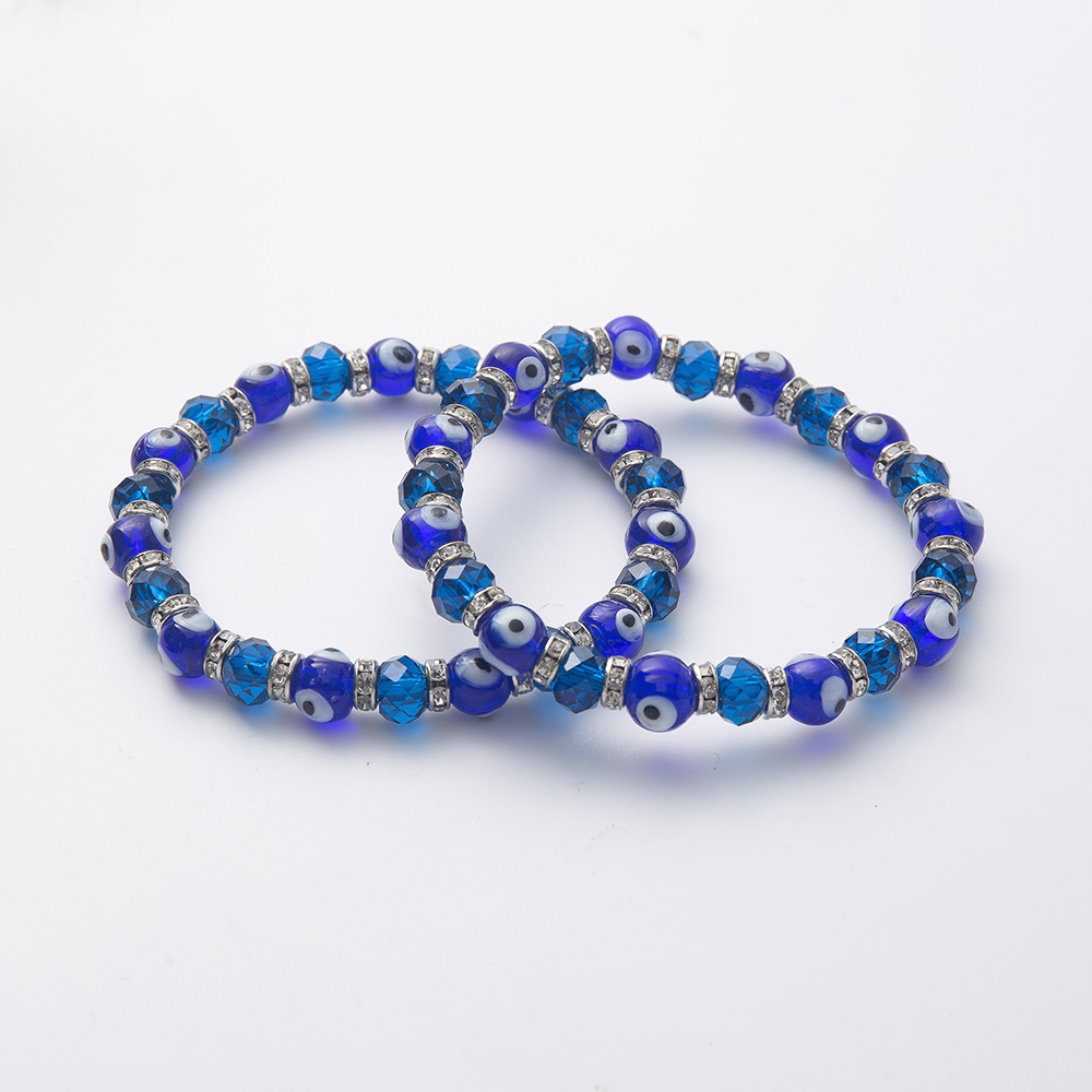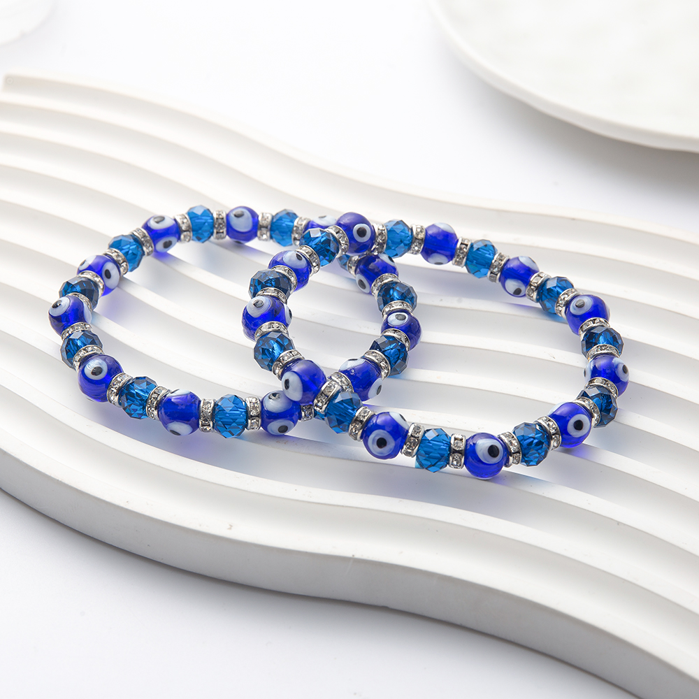 Evil Eye Bracelet Bijoux, chalumeau, avec cristal, bijoux de mode & unisexe & motif de mauvais œil, bleu, 8mm, Longueur:Environ 18 cm, Vendu par PC