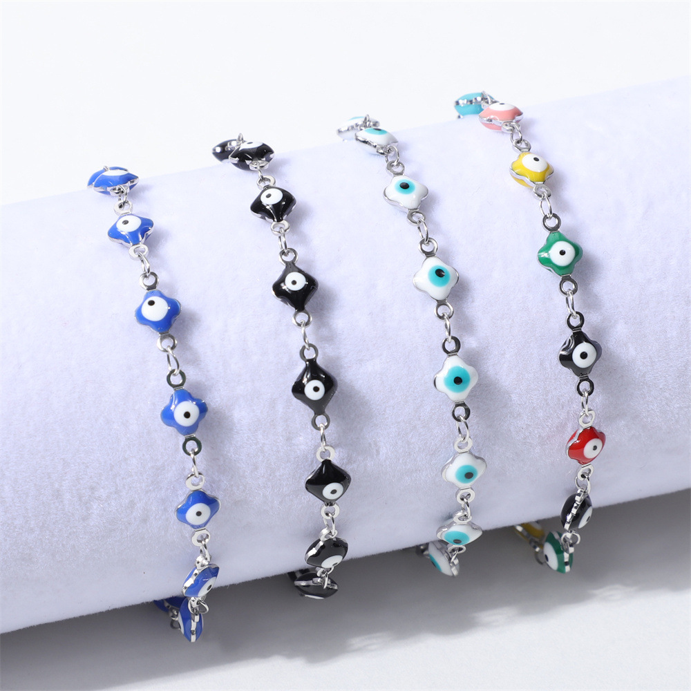 Evil Eye Bracelet Bijoux, acier inoxydable 316L, avec 5cm chaînes de rallonge, bijoux de mode & unisexe & émail, plus de couleurs à choisir, Longueur:17 cm, Vendu par PC