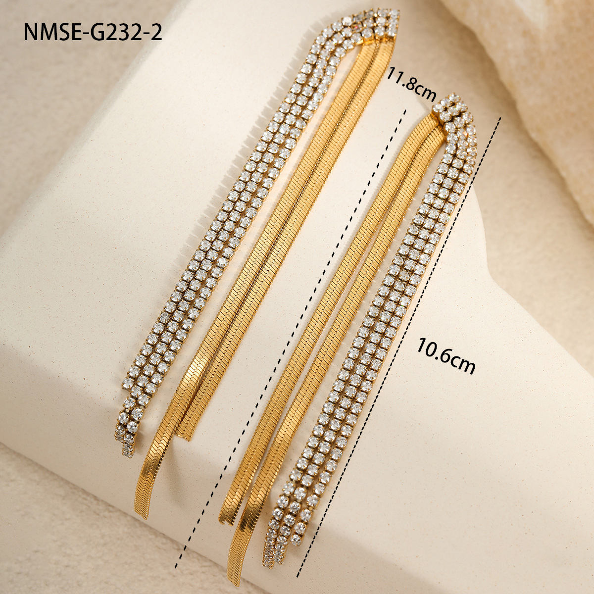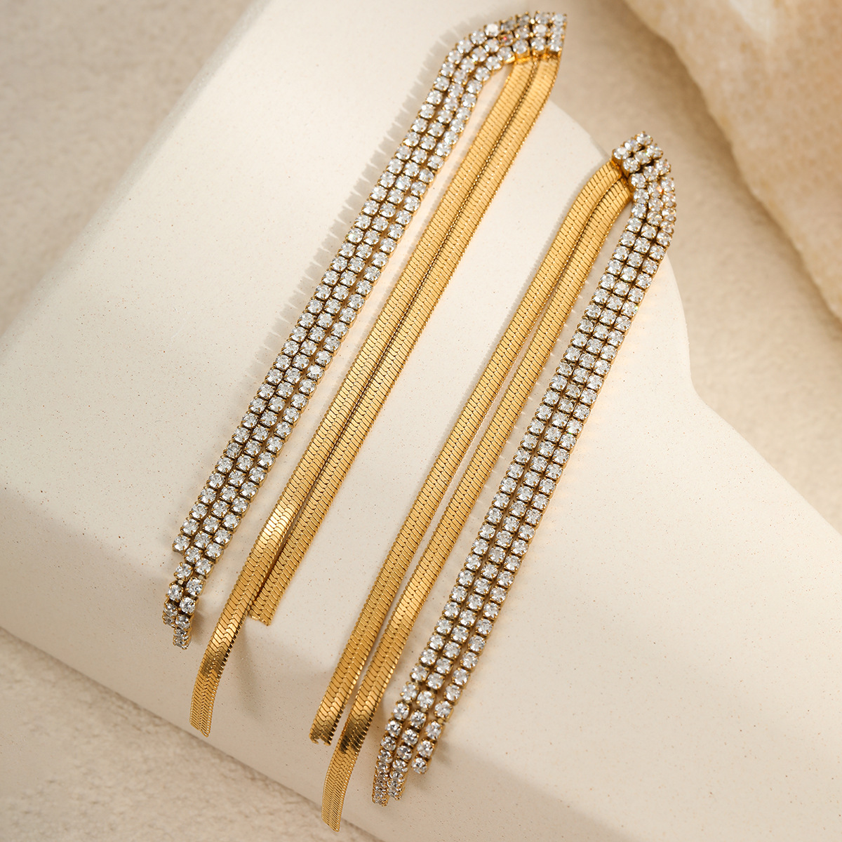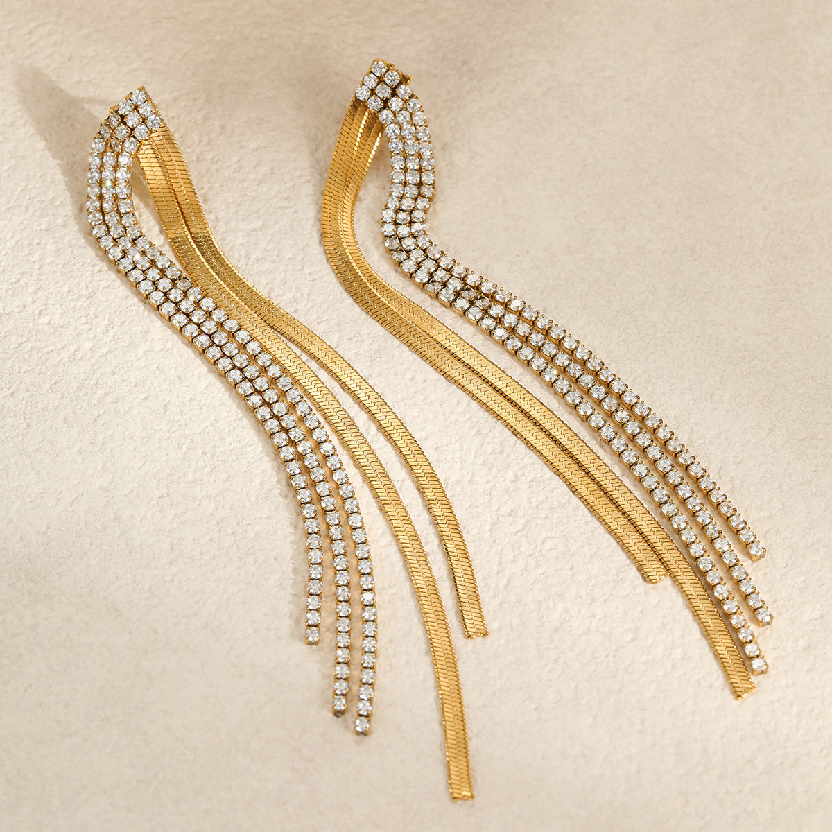 Fashion Fringe Boucles d'oreilles, Acier inoxydable 304, Plaqué or 18K, bijoux de mode & pavé de micro zircon & pour femme, Vendu par paire