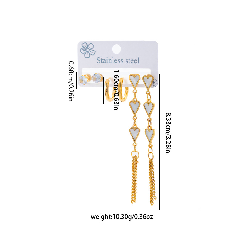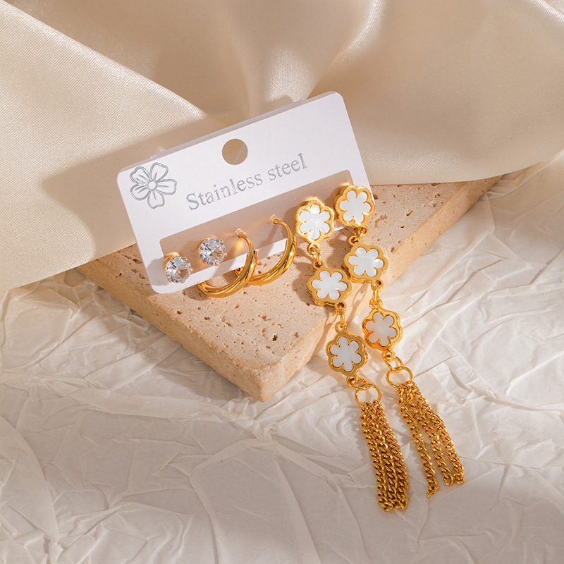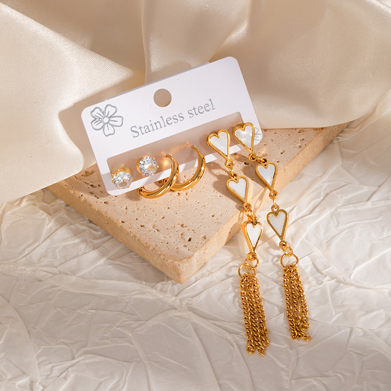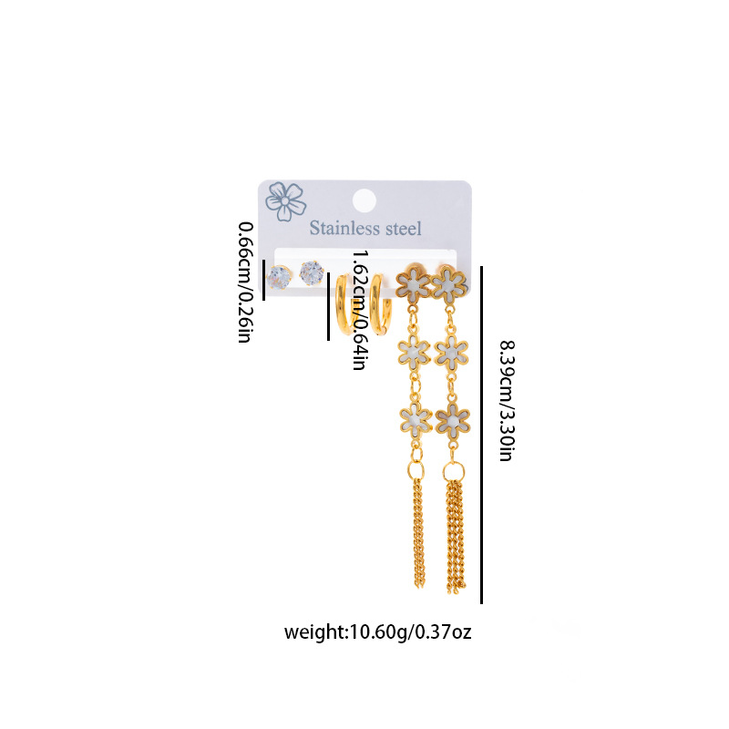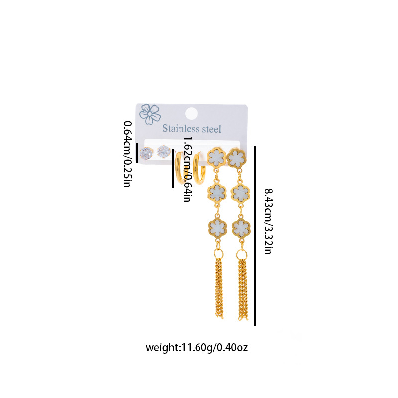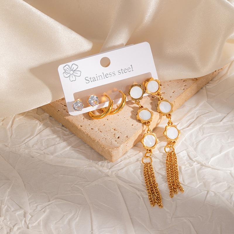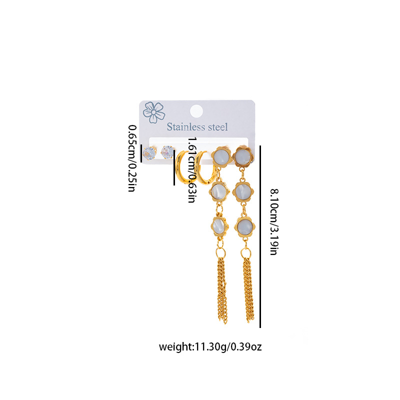 Fashion Fringe Boucles d'oreilles, Acier inoxydable 304, avec coquille blanche & Acrylique, trois pièces & différents matériaux pour le choix & styles différents pour le choix & pour femme & avec strass, doré, Vendu par fixé