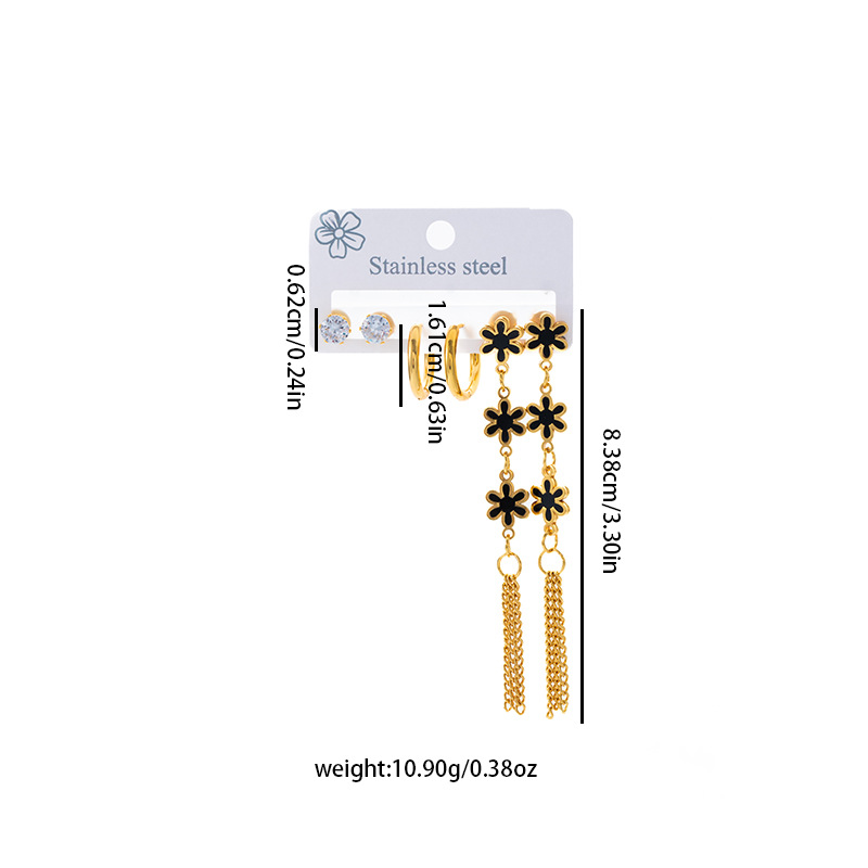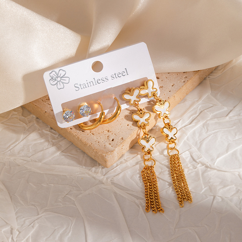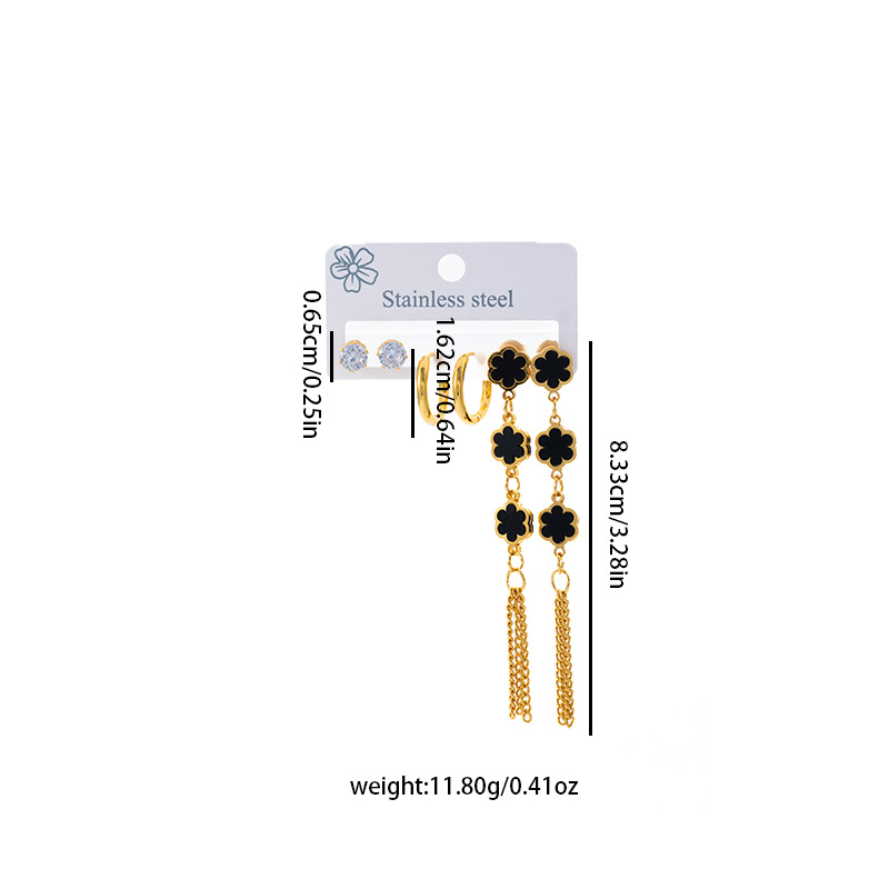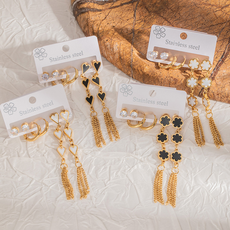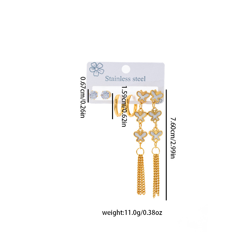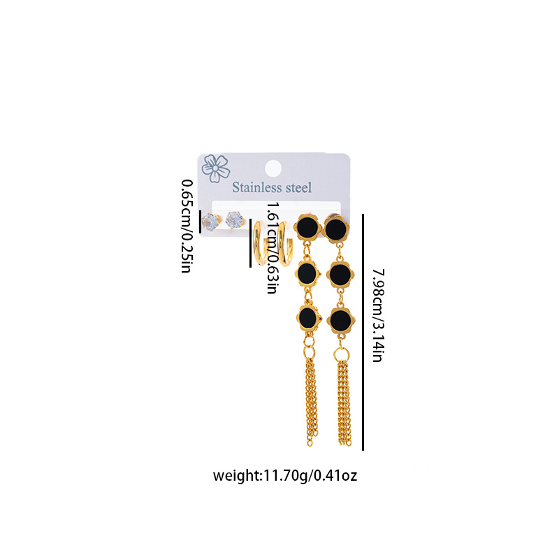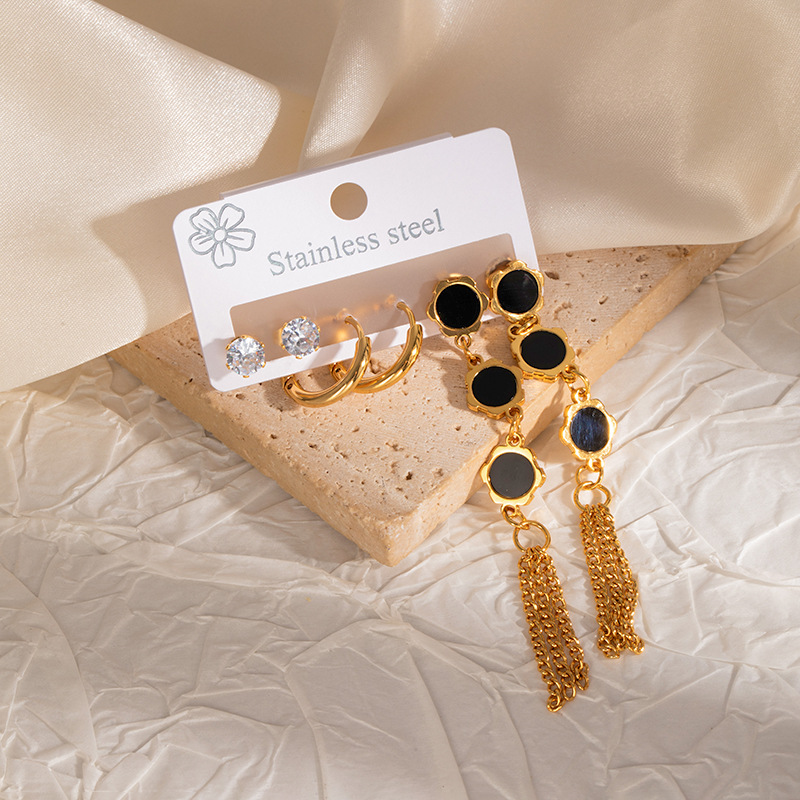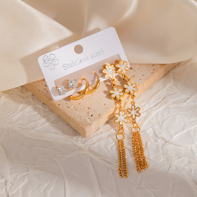 Fashion Fringe Boucles d'oreilles, Acier inoxydable 304, avec coquille blanche & Acrylique, trois pièces & différents matériaux pour le choix & styles différents pour le choix & pour femme & avec strass, doré, Vendu par fixé