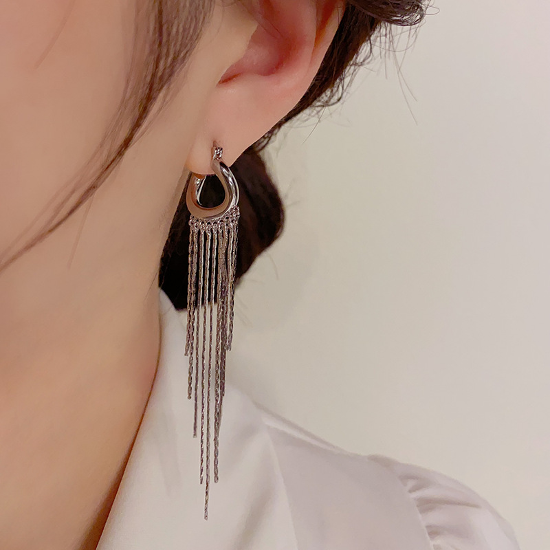 Fashion Fringe Boucles d'oreilles, alliage de zinc, fer boucle d'oreille crochet, Plaqué de couleur d'argent, pour femme, sans plomb et cadmium Vendu par paire