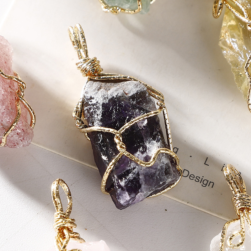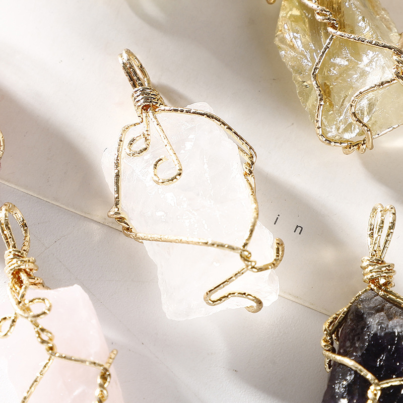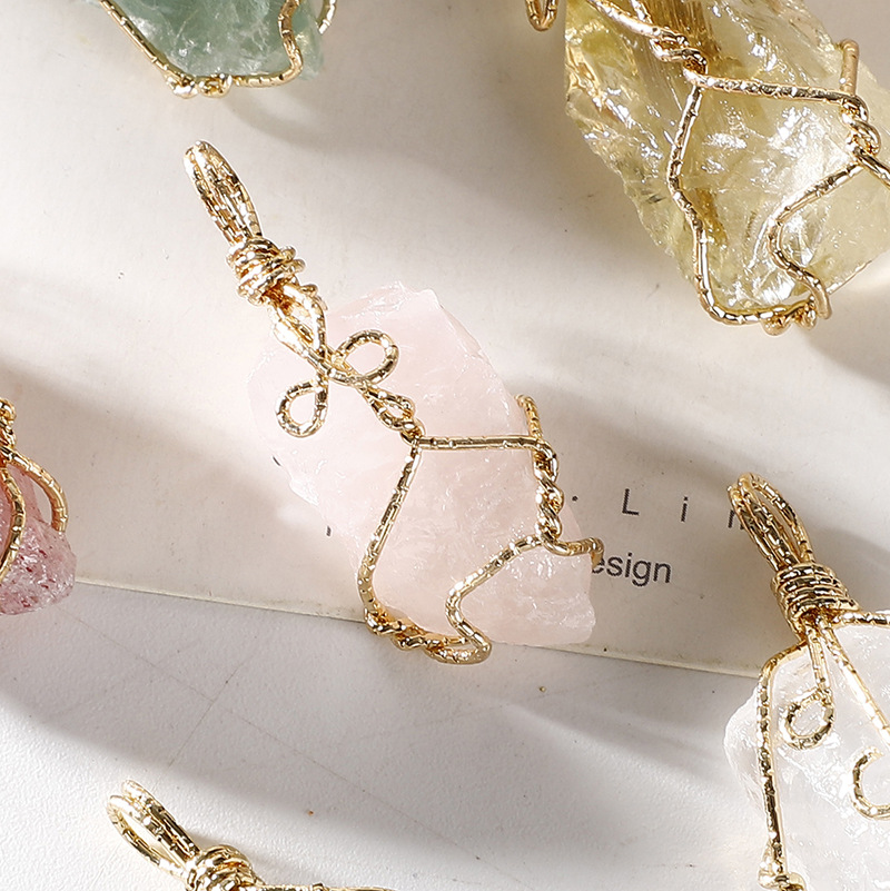 Gemstone Pendantifs en laiton, Cristal naturel, avec Fluorine & laiton, Irrégulière, Placage de couleur d'or, DIY, plus de couleurs à choisir, length about 25-30mm,width about 10-15mm, Vendu par PC