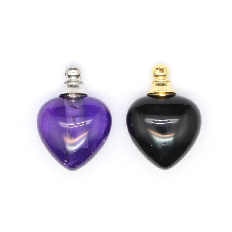Gemstone Pendantifs en laiton, pierre gemme, avec laiton, coeur, Placage de couleur argentée, différents matériaux pour le choix, plus de couleurs à choisir, 20mm, Vendu par PC