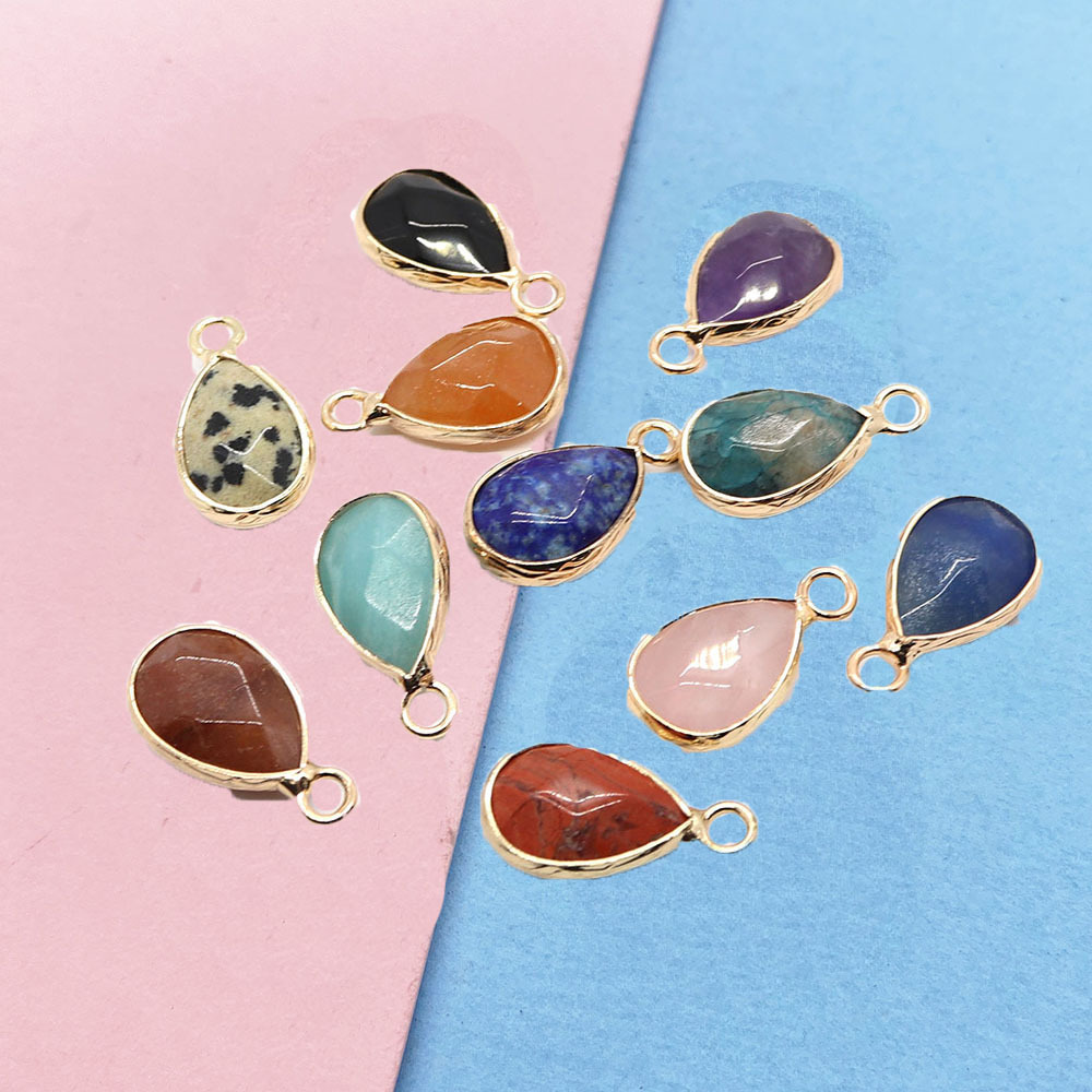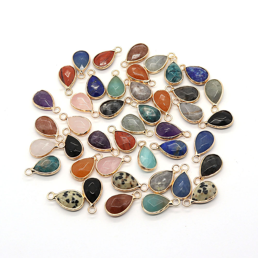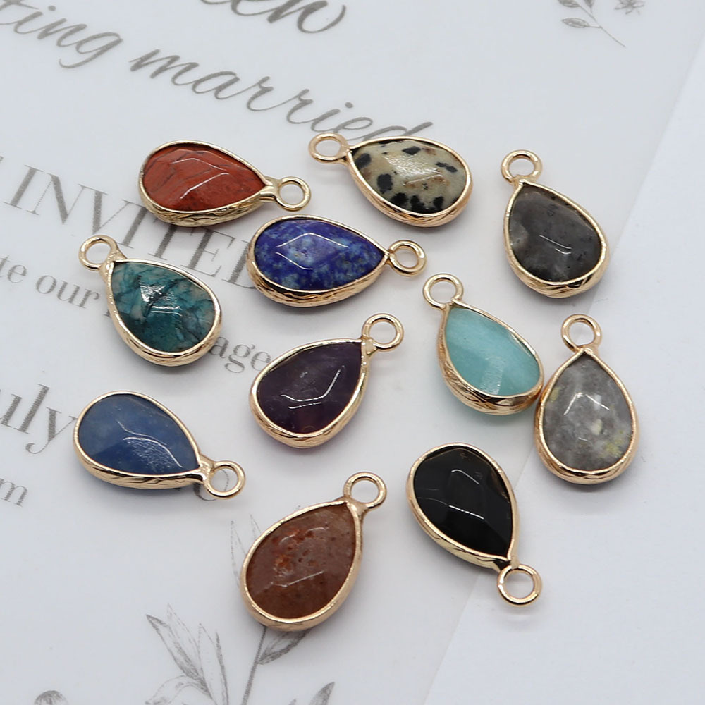 Gemstone Pendantifs en laiton, Pierre naturelle, avec laiton, larme, DIY & différents matériaux pour le choix, plus de couleurs à choisir, 18x18mm, Vendu par PC