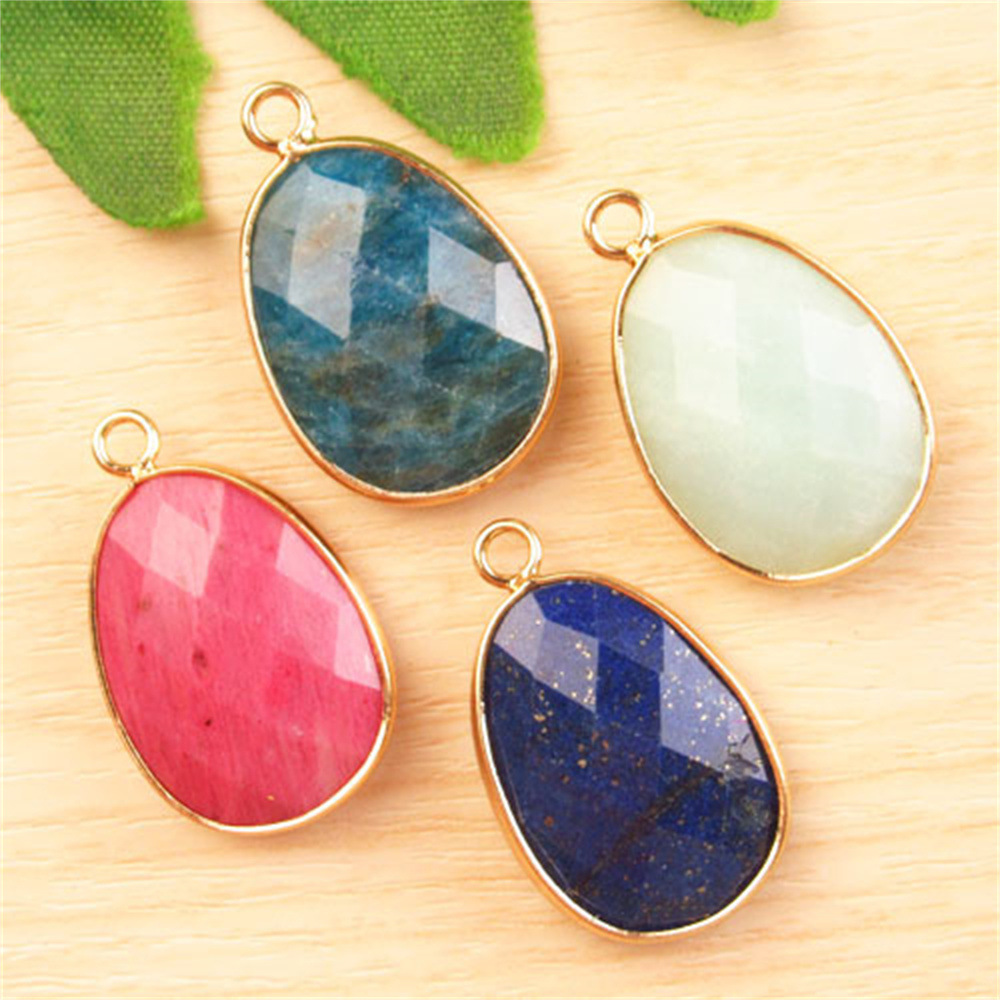 Gemstone Pendantifs en laiton, Pierre naturelle, avec laiton, ovale, DIY & différents matériaux pour le choix, plus de couleurs à choisir, 23x17mm, Vendu par PC