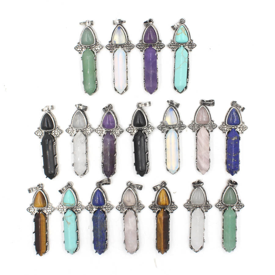 Gemstone Pendantifs en laiton, Pierre naturelle, avec laiton, DIY & différents matériaux pour le choix, plus de couleurs à choisir, 10x21x52mm, Vendu par PC