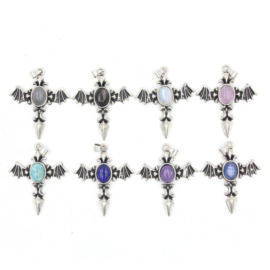 Gemstone Pendantifs en laiton, avec Pierre naturelle, Placage, DIY & différents matériaux pour le choix, plus de couleurs à choisir, 6x31x37mm, Vendu par PC