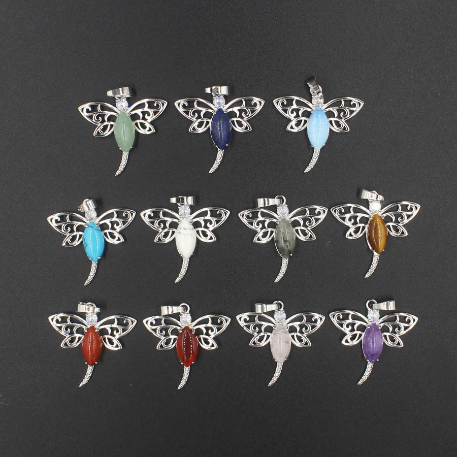 Gemstone Pendantifs en laiton, avec Pierre naturelle, libellule, Placage, DIY & différents matériaux pour le choix, plus de couleurs à choisir, 31x30x6mm, Vendu par PC