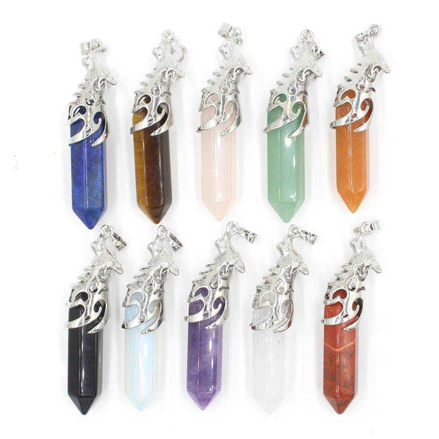 Gemstone Pendantifs en laiton, Pierre naturelle, avec laiton, DIY & différents matériaux pour le choix, plus de couleurs à choisir, 15x20x60mm, Vendu par PC