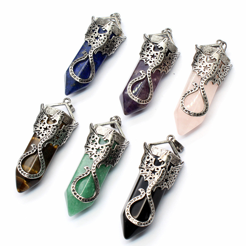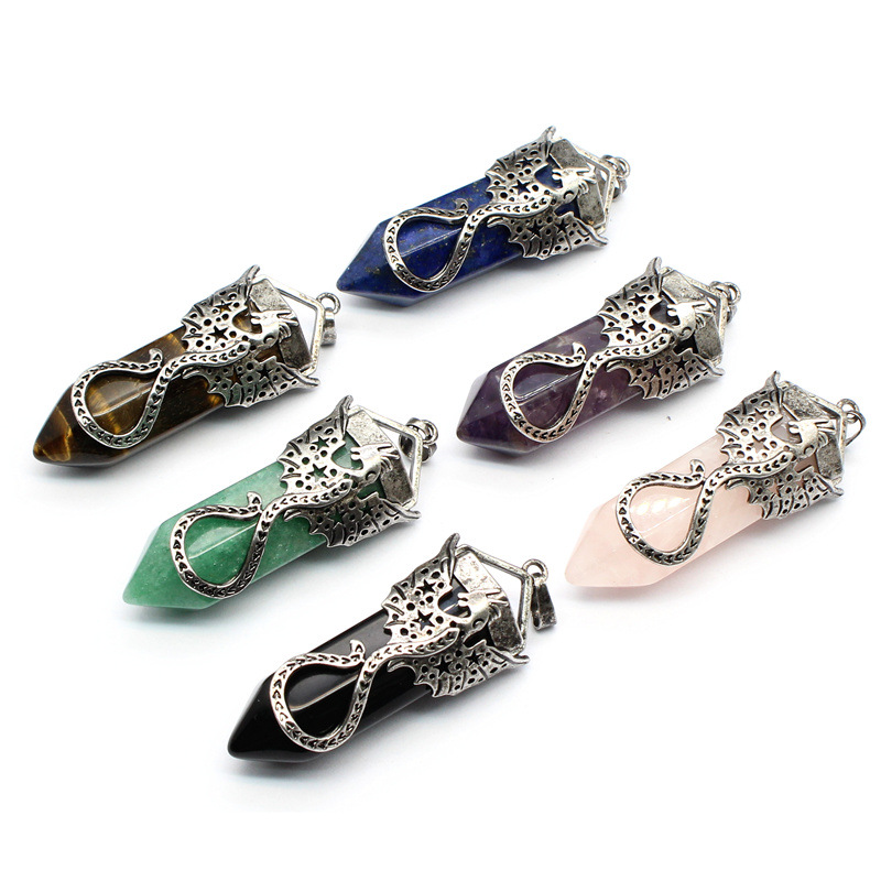 Gemstone Pendantifs en laiton, Pierre naturelle, avec laiton, Placage, DIY & différents matériaux pour le choix, plus de couleurs à choisir, 28x10x8mm, Vendu par PC