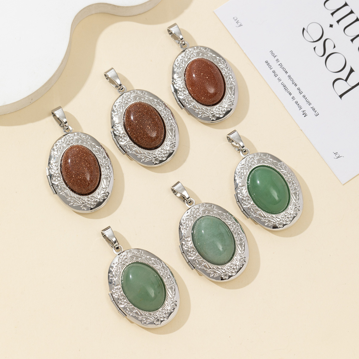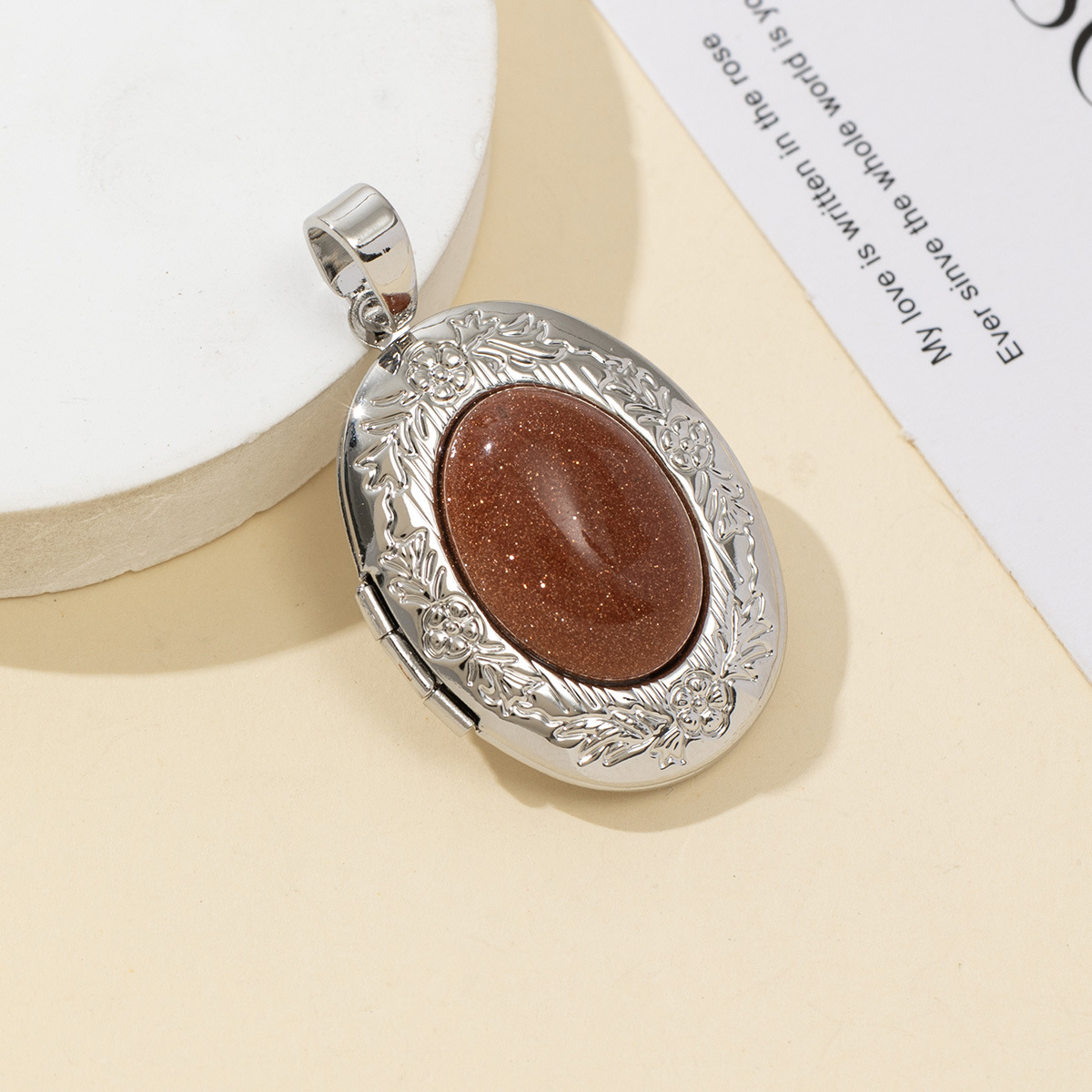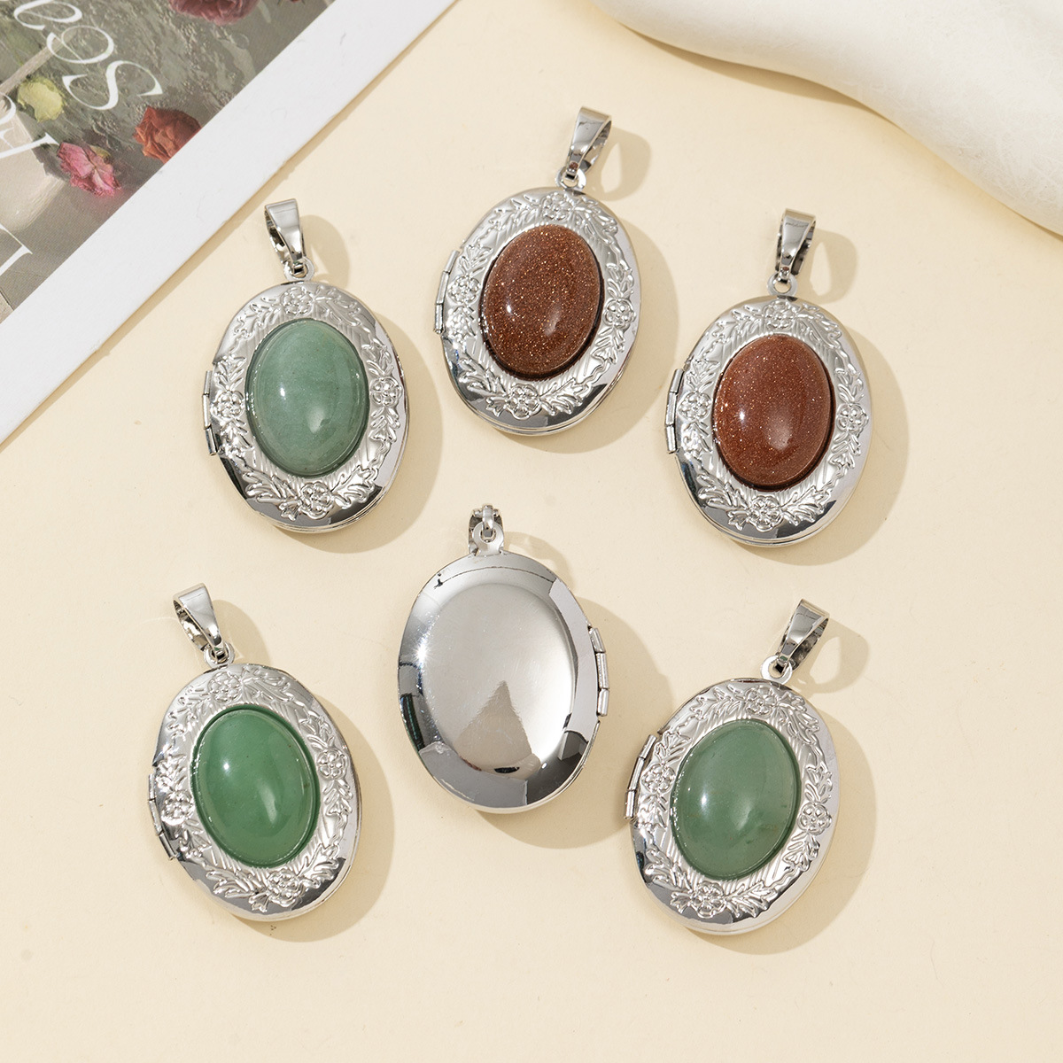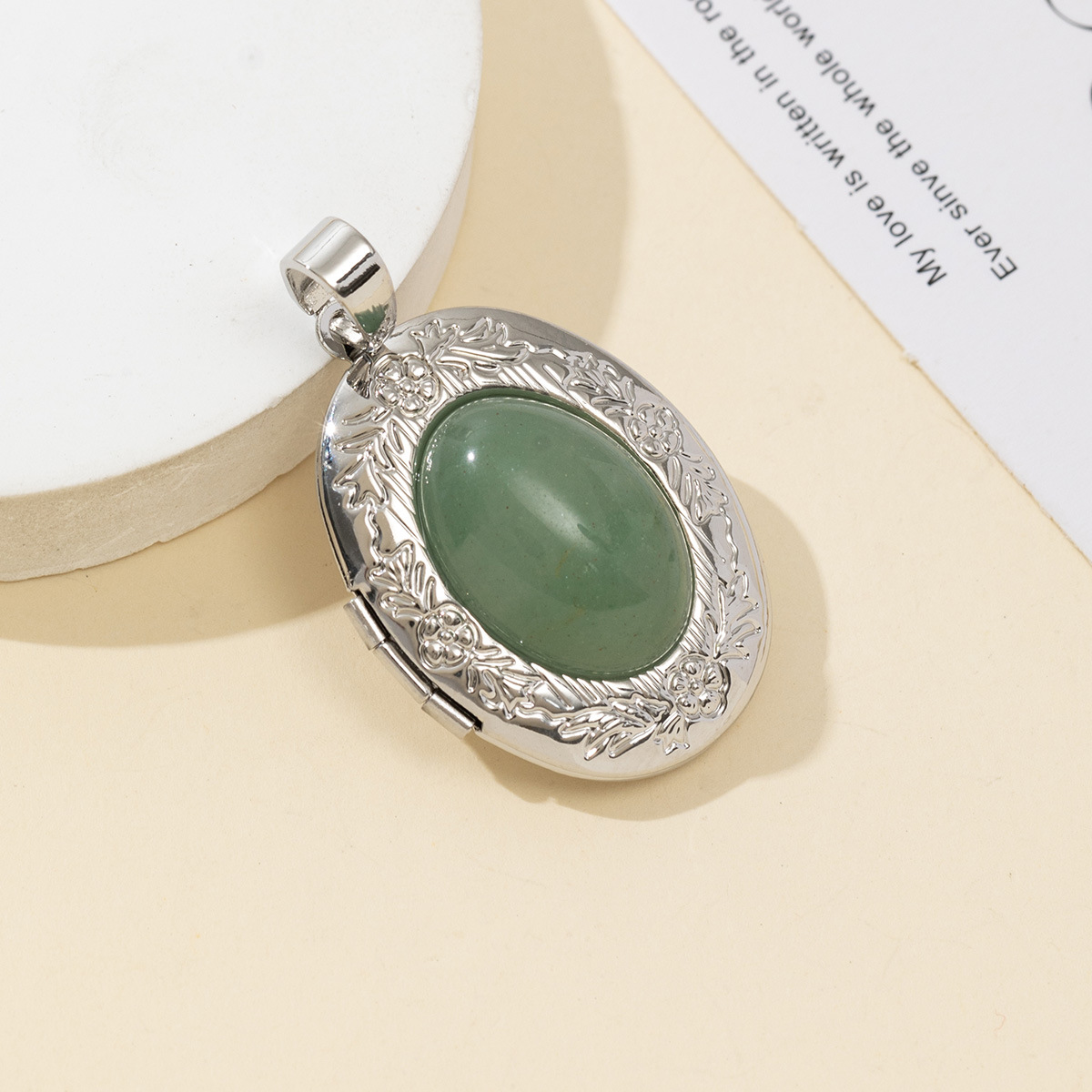 Gemstone Pendantifs en laiton, pierre gemme, avec laiton, ovale, Placage de couleur platine, plus de couleurs à choisir, 35-38x53-57x6-8mm Environ 5mm, Vendu par PC