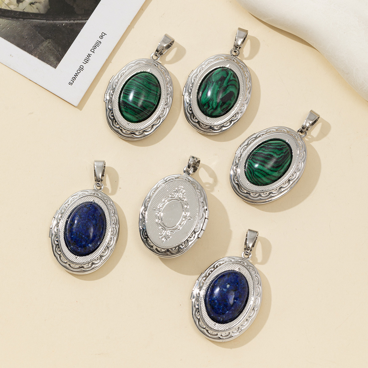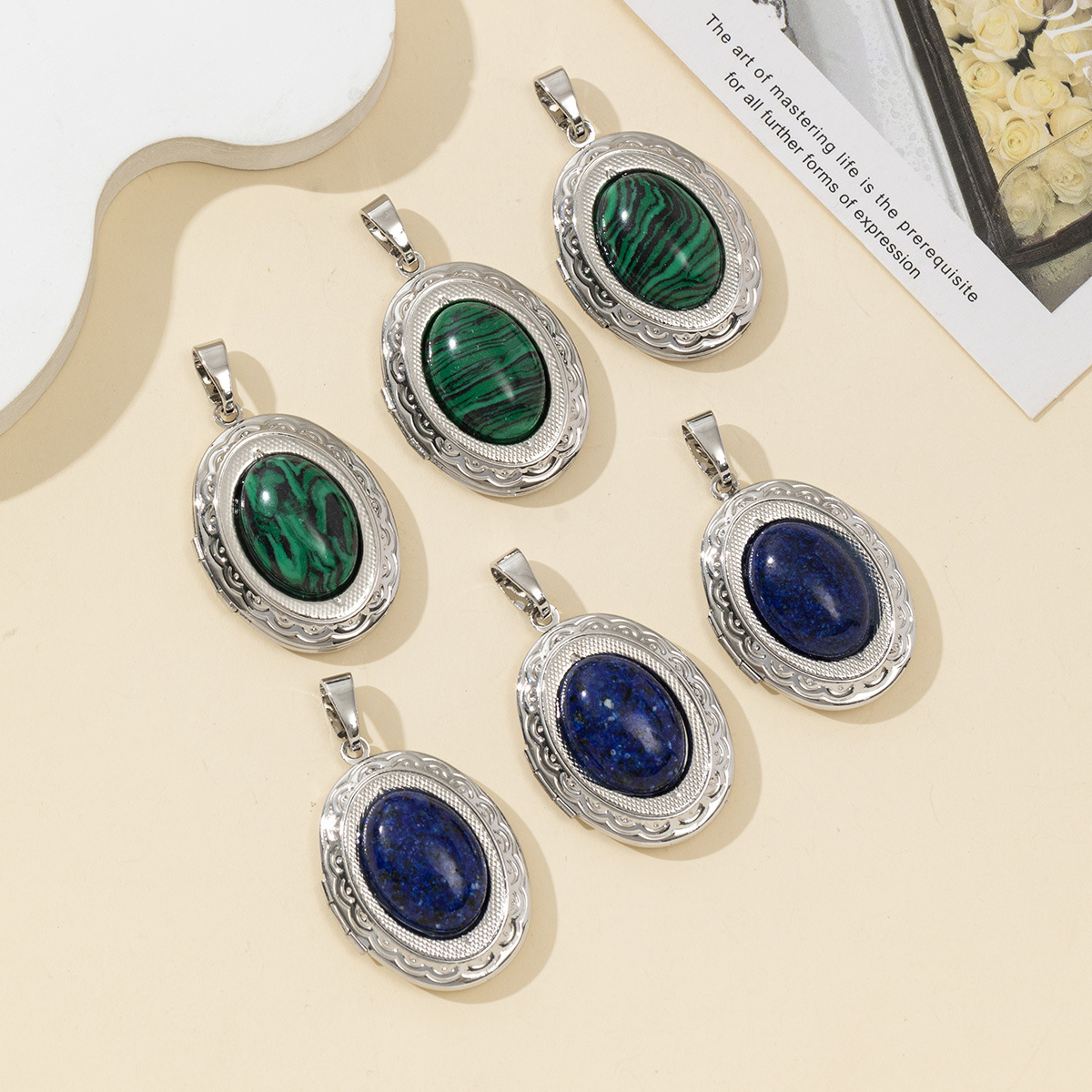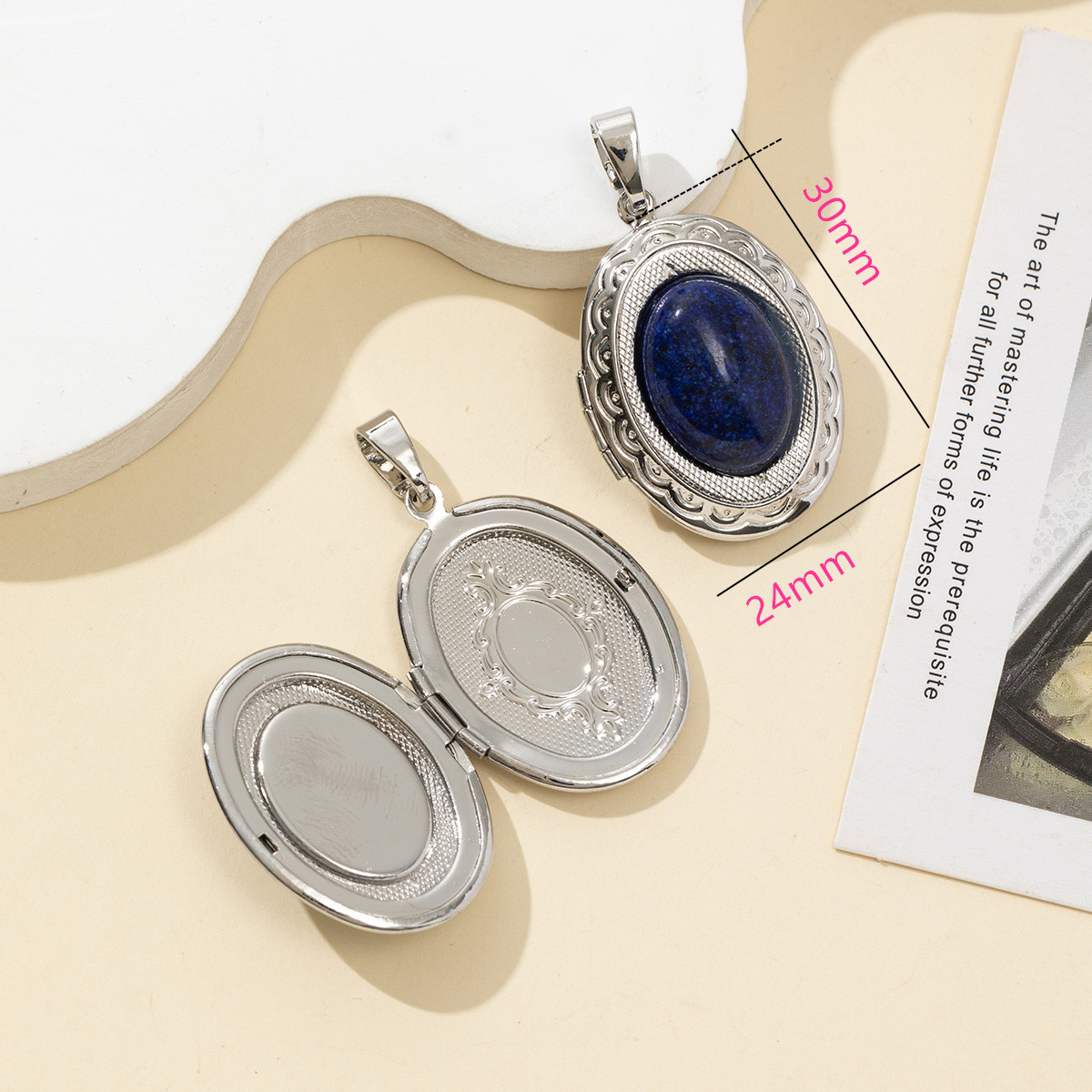 Gemstone Pendantifs en laiton, pierre gemme, avec laiton, ovale, Placage de couleur platine, plus de couleurs à choisir, 35-38x53-57x6-8mm Environ 5mm, Vendu par PC