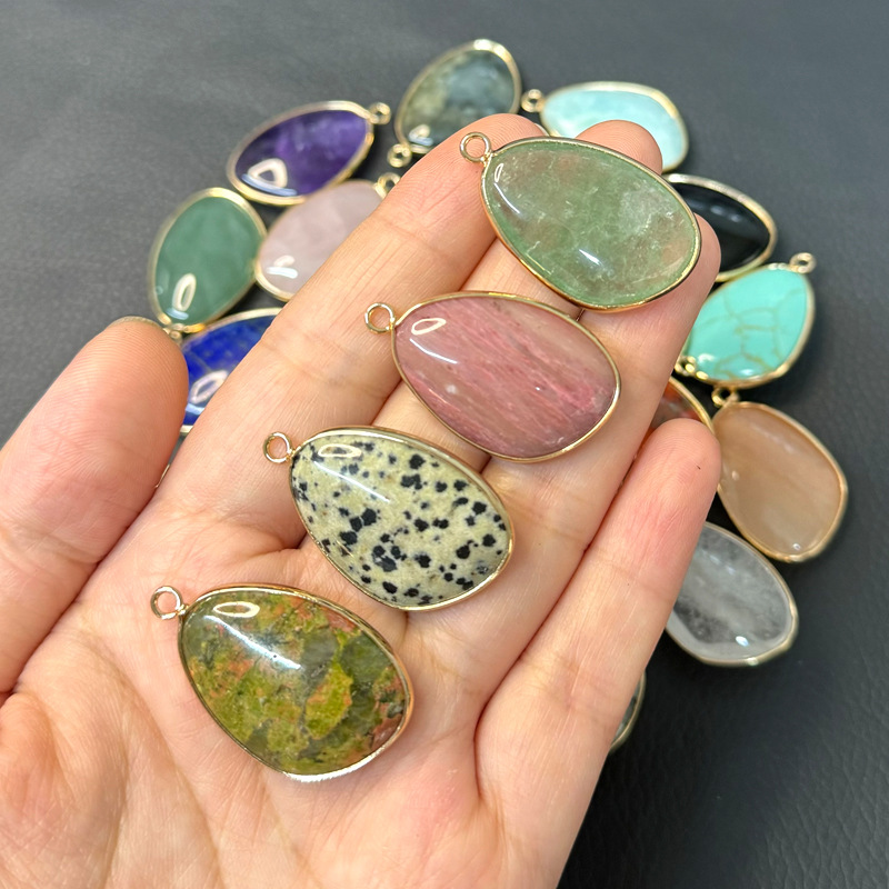 Gemstone Pendantifs en laiton, Pierre naturelle, avec laiton, DIY & différents matériaux pour le choix, plus de couleurs à choisir, 32x22mm, Vendu par PC