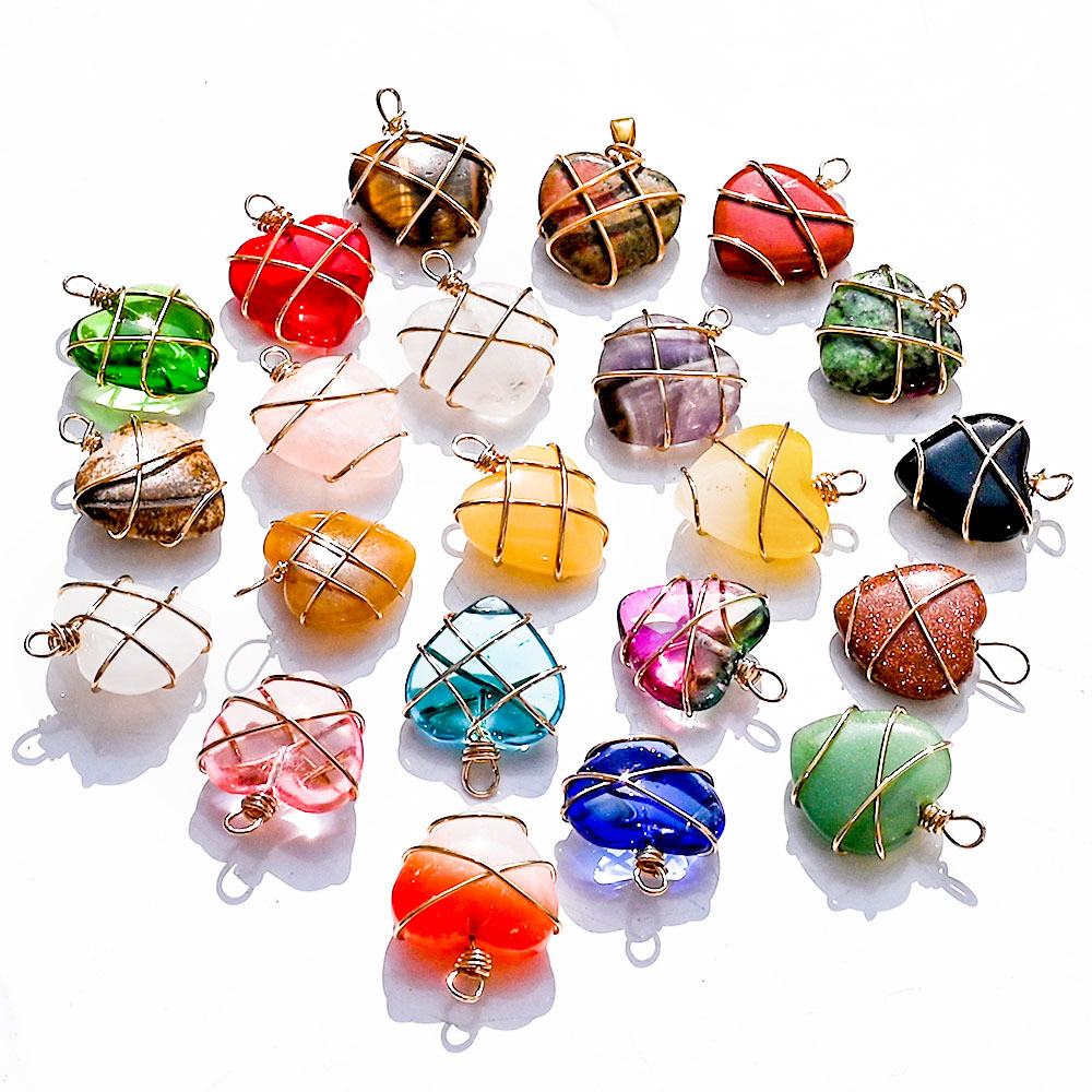 Gemstone Pendantifs en laiton, Pierre naturelle, avec laiton, coeur, DIY & différents matériaux pour le choix, plus de couleurs à choisir, 20mm, Vendu par PC