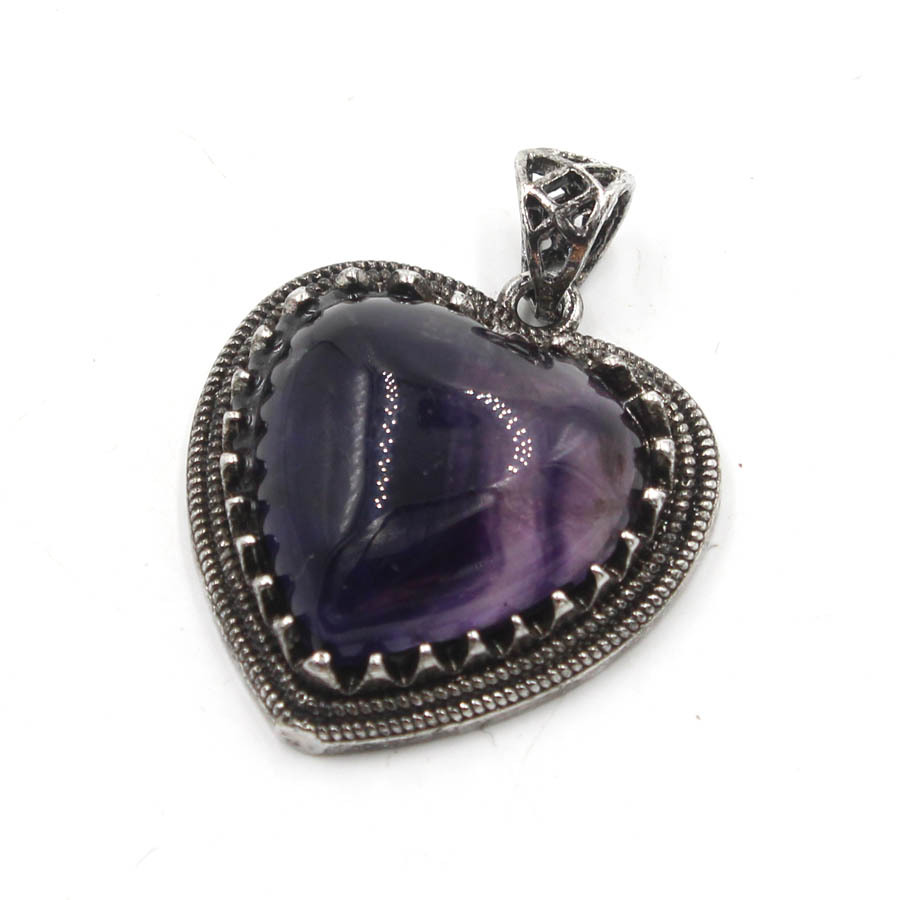 Gemstone Pendantifs en laiton, pierre gemme, avec laiton, coeur, Placage de couleur argentée, différents matériaux pour le choix, plus de couleurs à choisir, 20mm, Vendu par PC