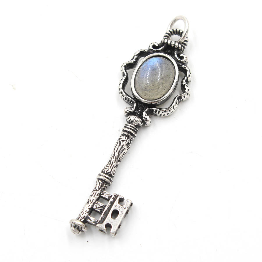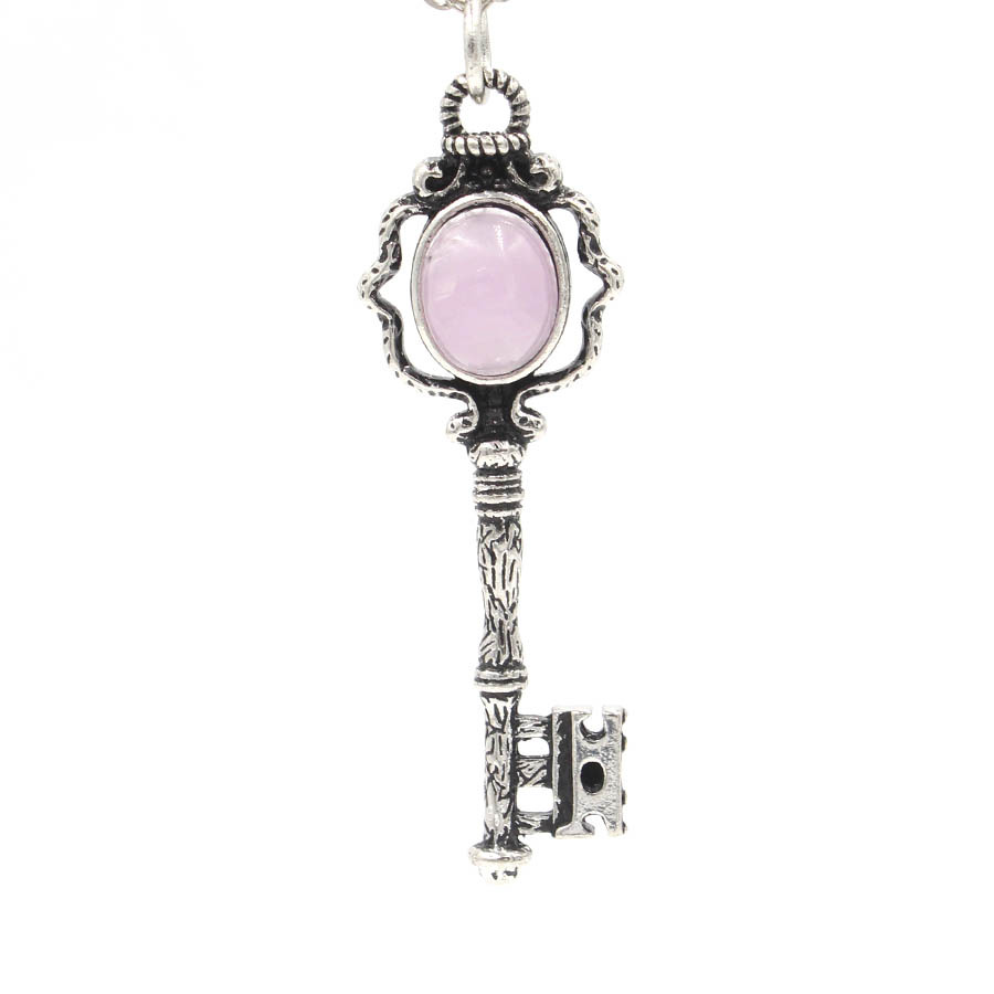 Gemstone Pendantifs en laiton, avec Pierre naturelle, clé, DIY & différents matériaux pour le choix, plus de couleurs à choisir, 7x12x51mm, Vendu par PC