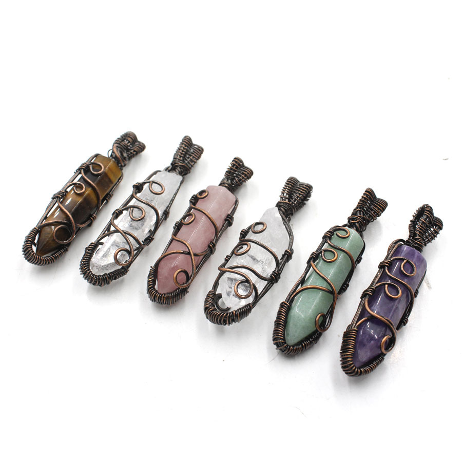 Gemstone Pendantifs en laiton, Pierre naturelle, avec laiton, DIY & différents matériaux pour le choix, plus de couleurs à choisir, 15x60mm, Vendu par PC