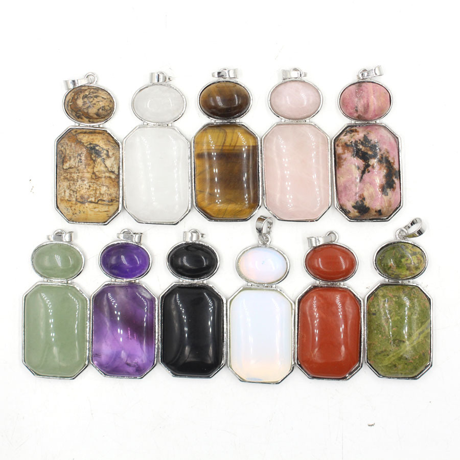 Gemstone Pendantifs en laiton, pierre gemme, avec laiton, ovale, Placage de couleur platine, plus de couleurs à choisir, 35-38x53-57x6-8mm Environ 5mm, Vendu par PC
