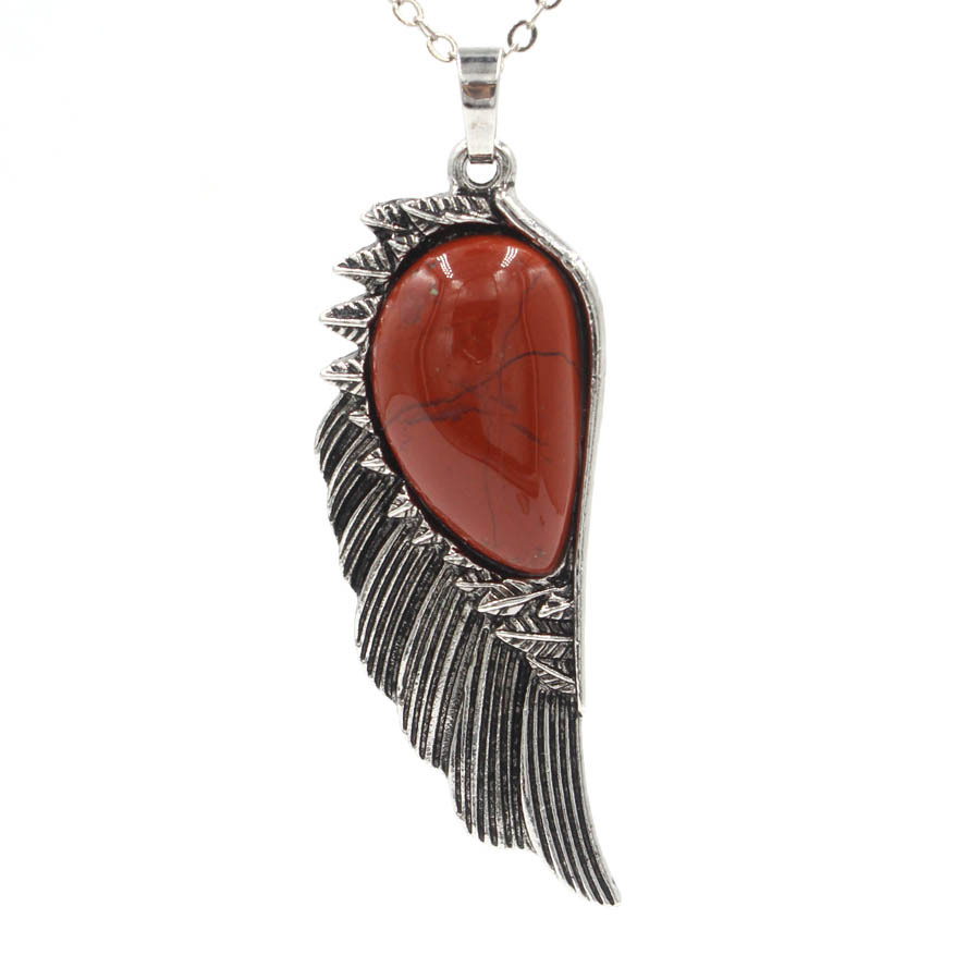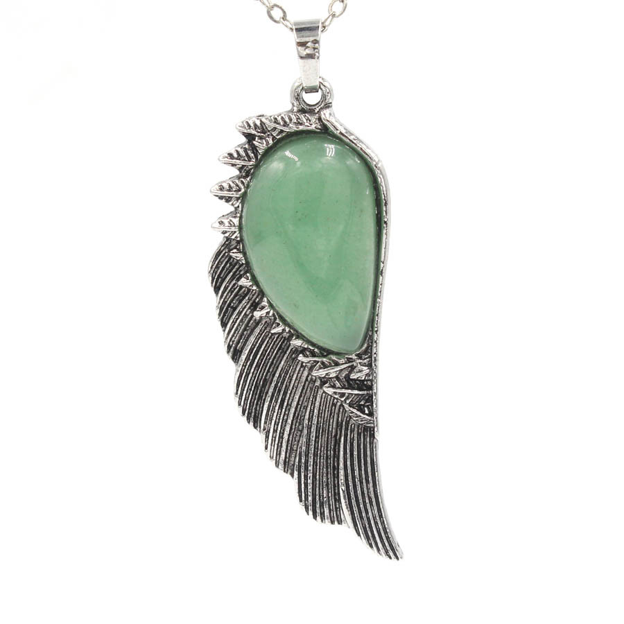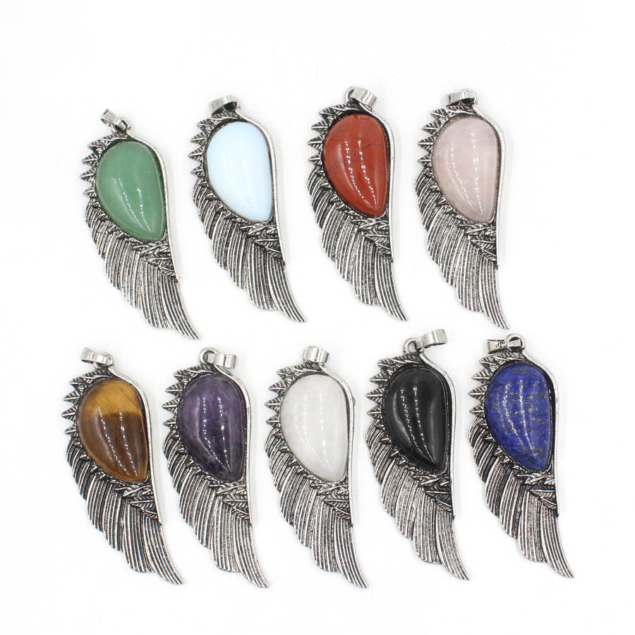 Gemstone Pendantifs en laiton, avec Pierre naturelle, forme de plume, Placage de couleur argentée, DIY, plus de couleurs à choisir, 7x21x58mm, Vendu par PC