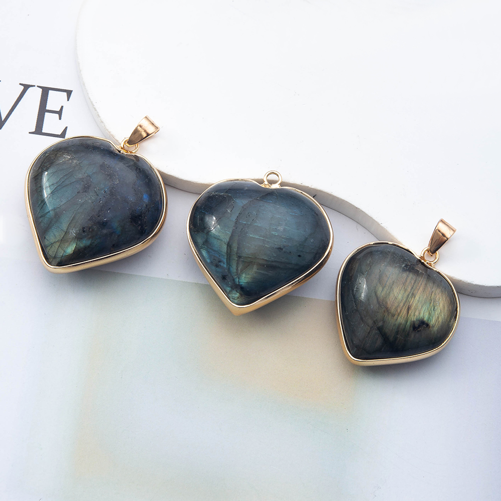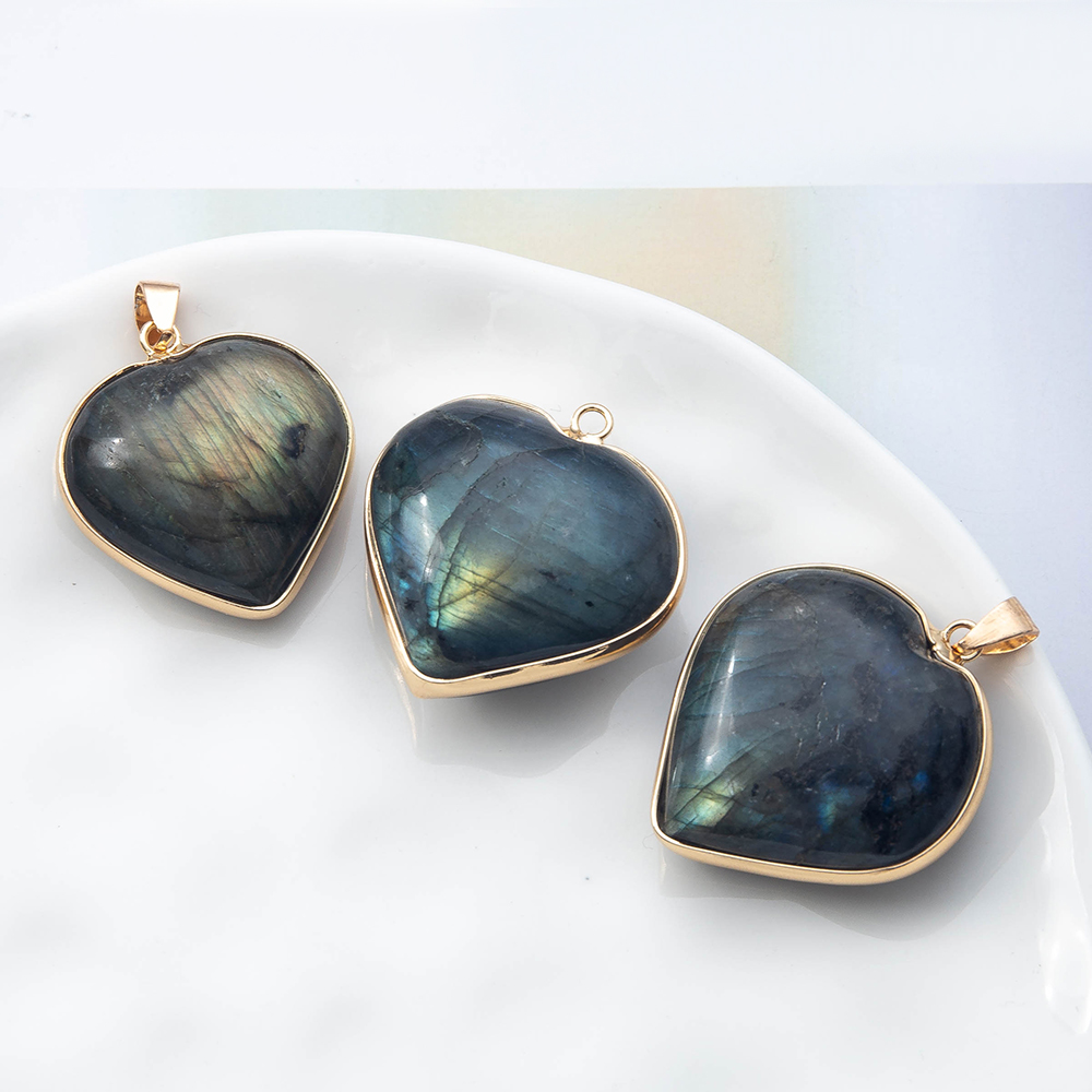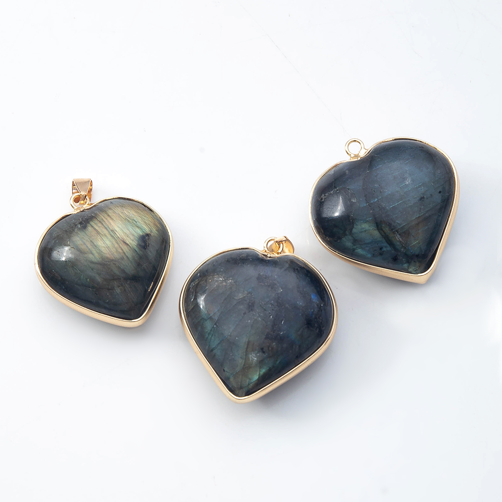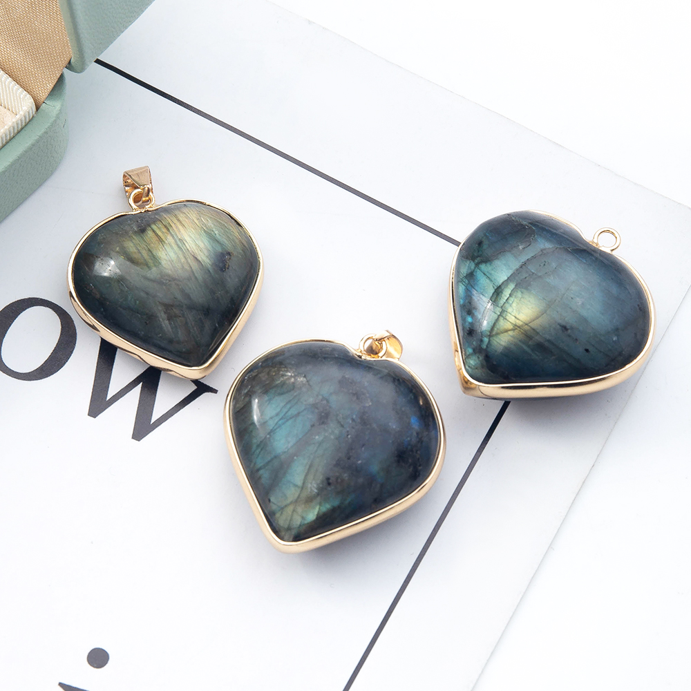 Gemstone Pendantifs en laiton, pierre gemme, avec laiton, coeur, Placage de couleur d'or, DIY & normes différentes pour le choix, plus de couleurs à choisir, Vendu par PC
