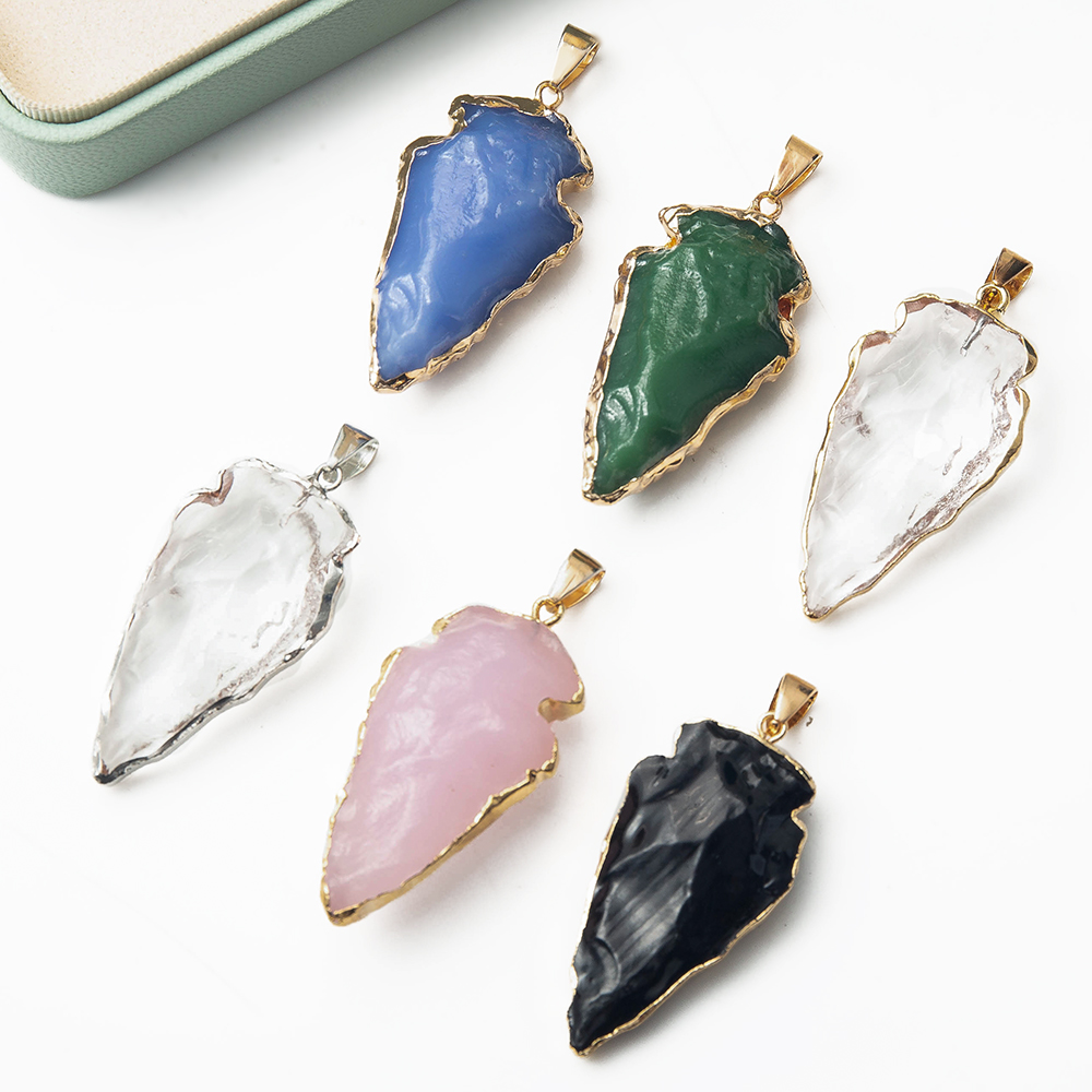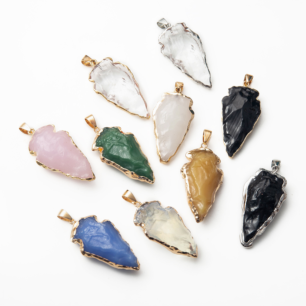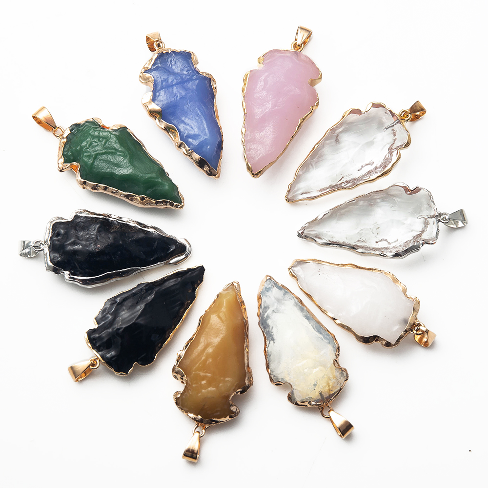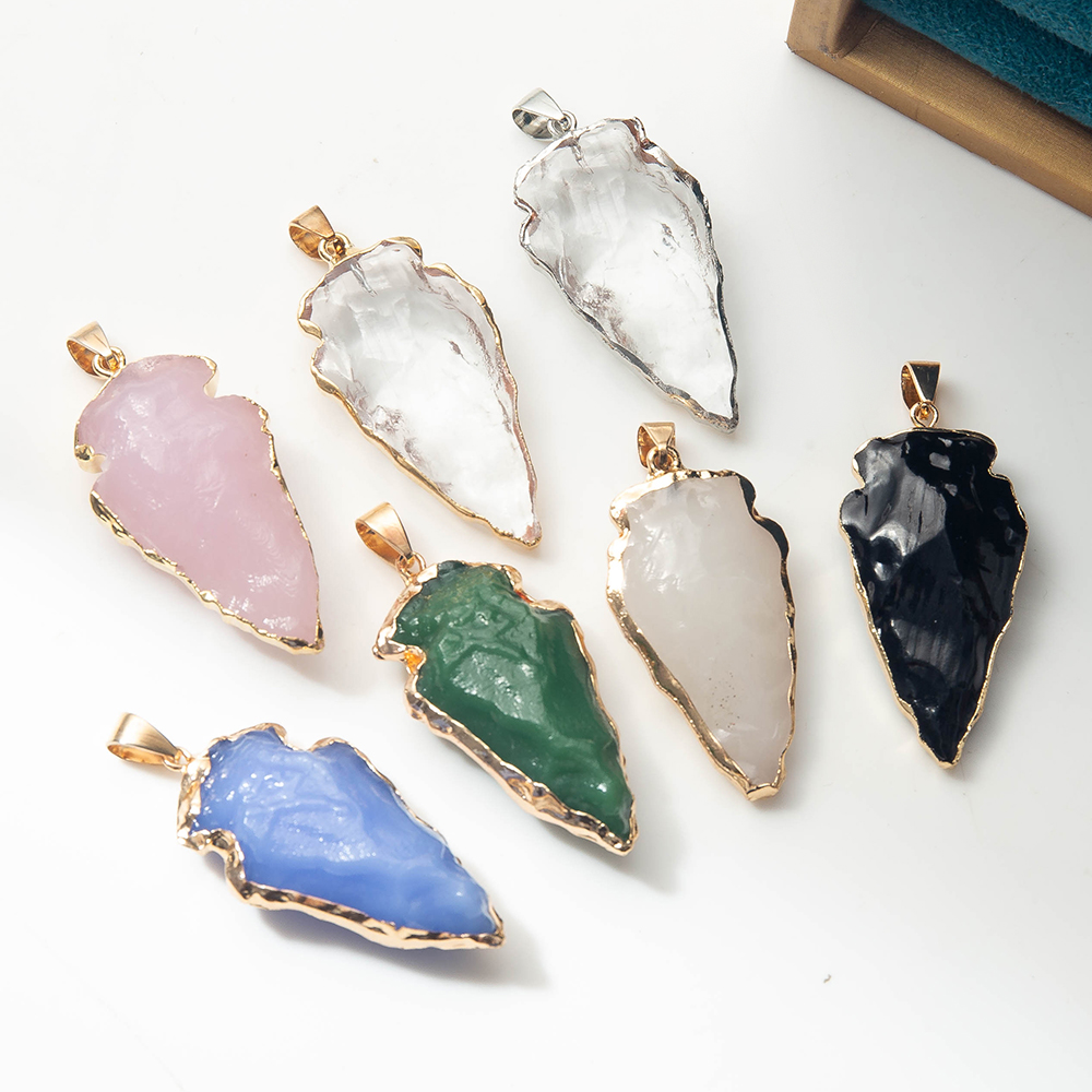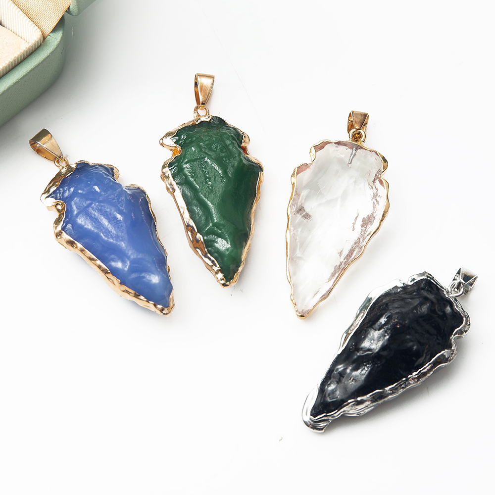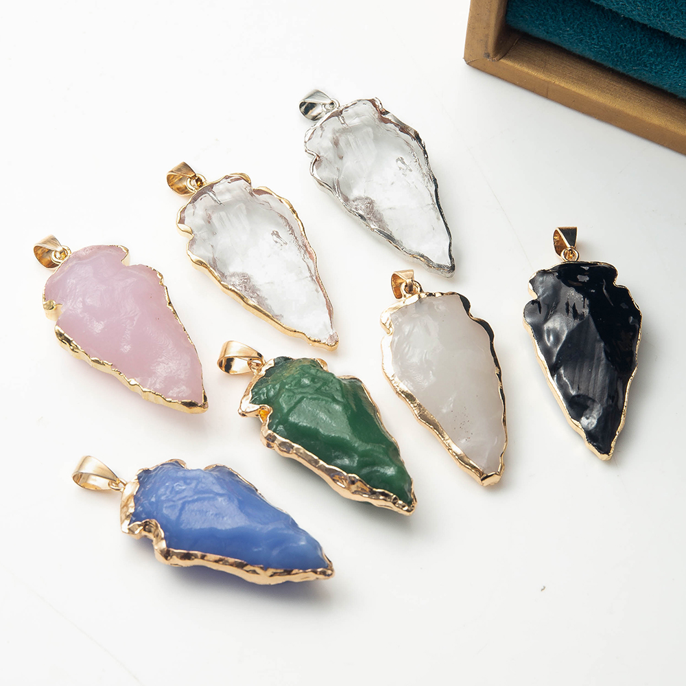 Gemstone Pendantifs en laiton, pierre gemme, avec laiton, Placage, DIY, plus de couleurs à choisir, 22.21x11.69x51.2mm, Vendu par PC