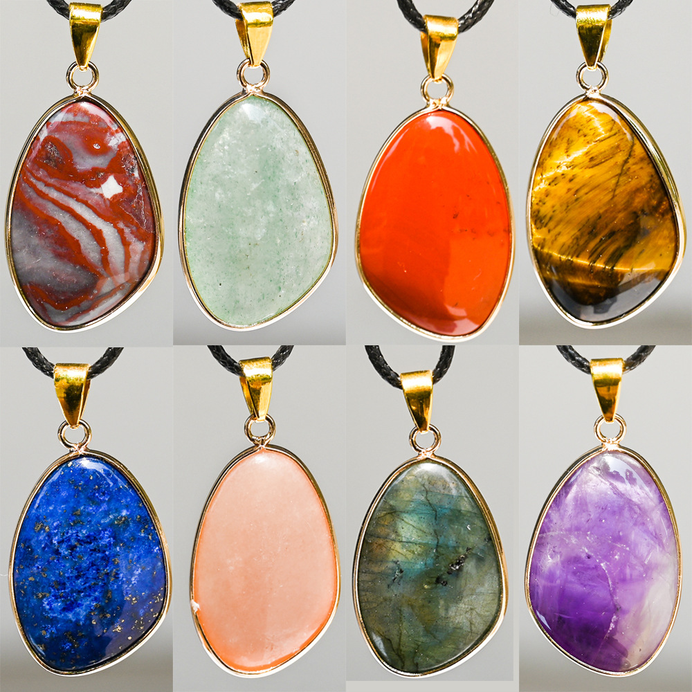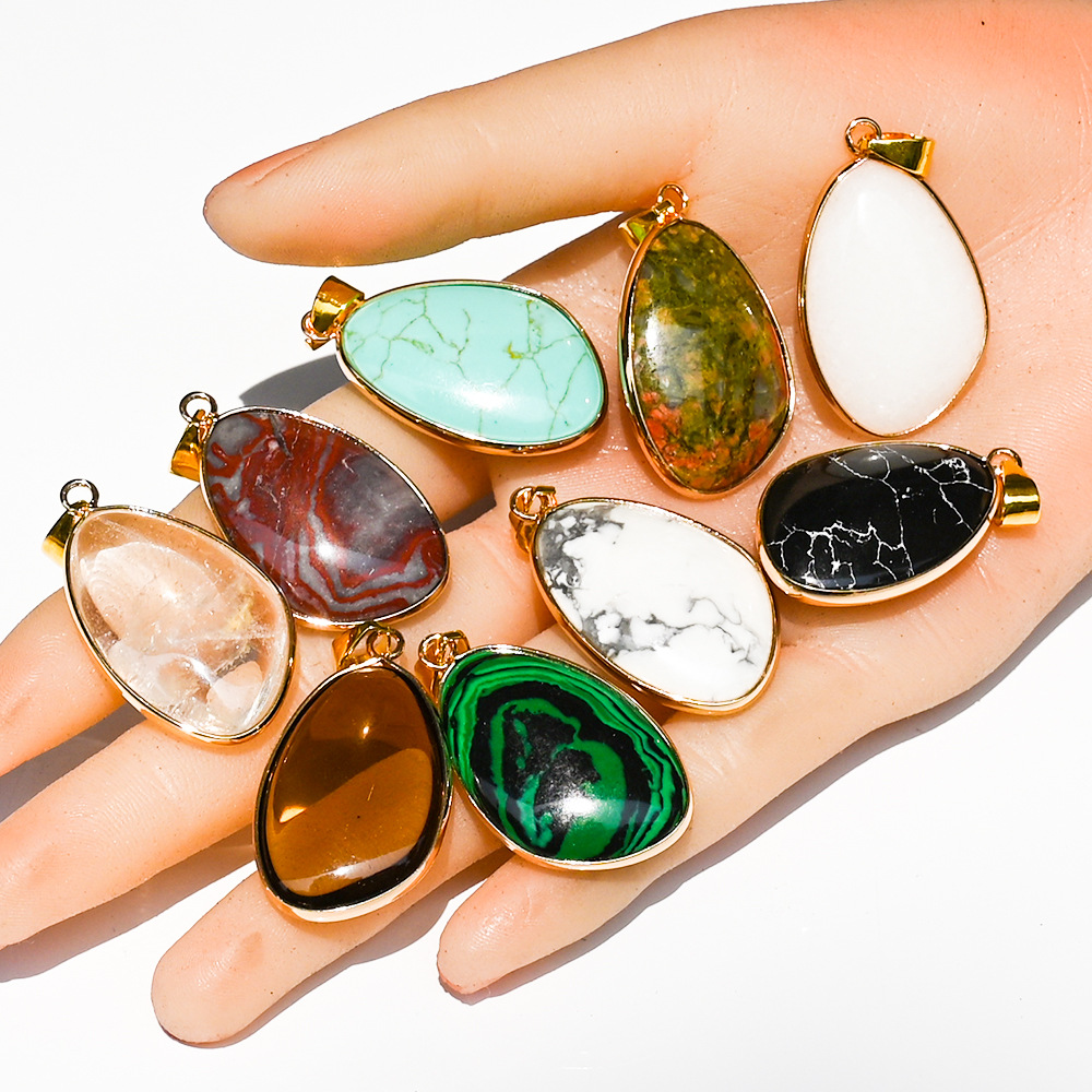 Gemstone Pendantifs en laiton, Pierre naturelle, avec laiton, Placage de couleur d'or, DIY & différents matériaux pour le choix, plus de couleurs à choisir, 20x30mm, Vendu par PC