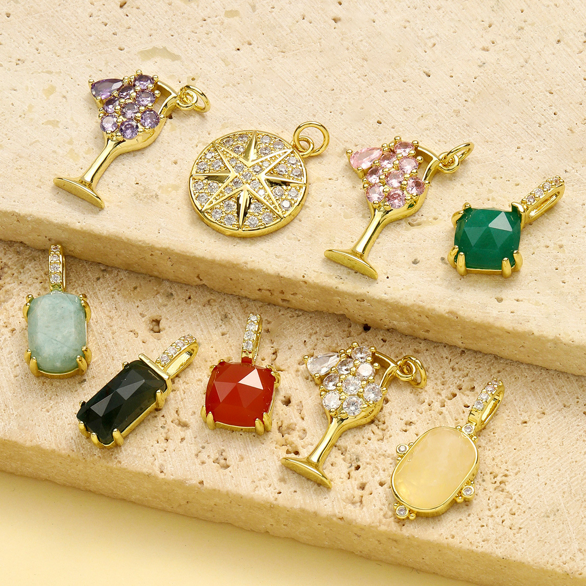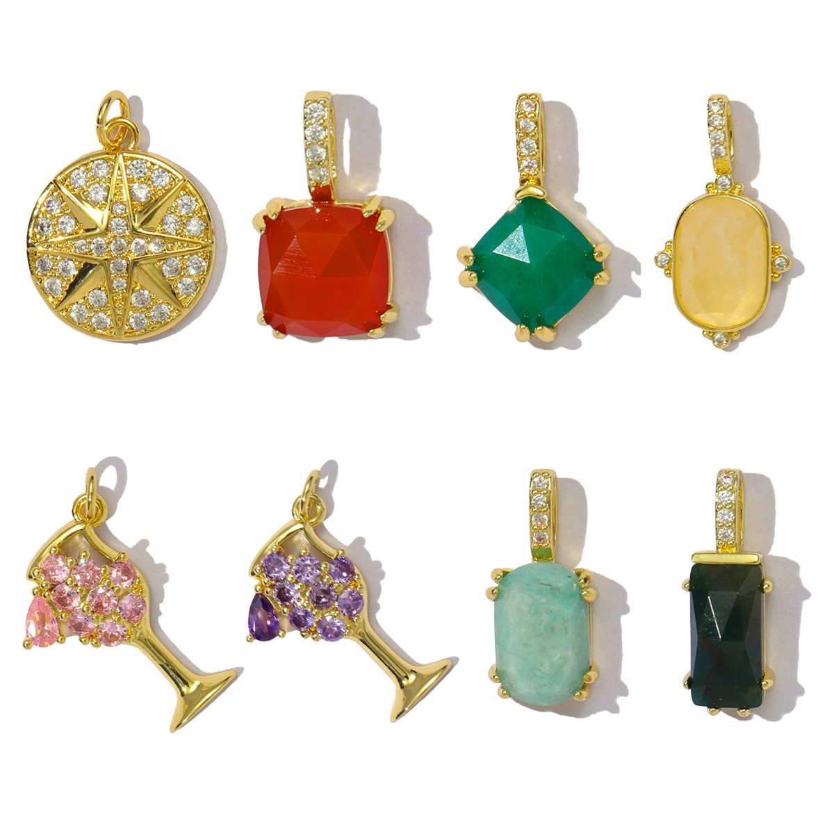 Gemstone Pendantifs en laiton, avec pierre gemme, Placage de couleur d'or, Forme différente pour le choix & DIY & pavé de micro zircon, plus de couleurs à choisir, 3PC/sac, Vendu par sac