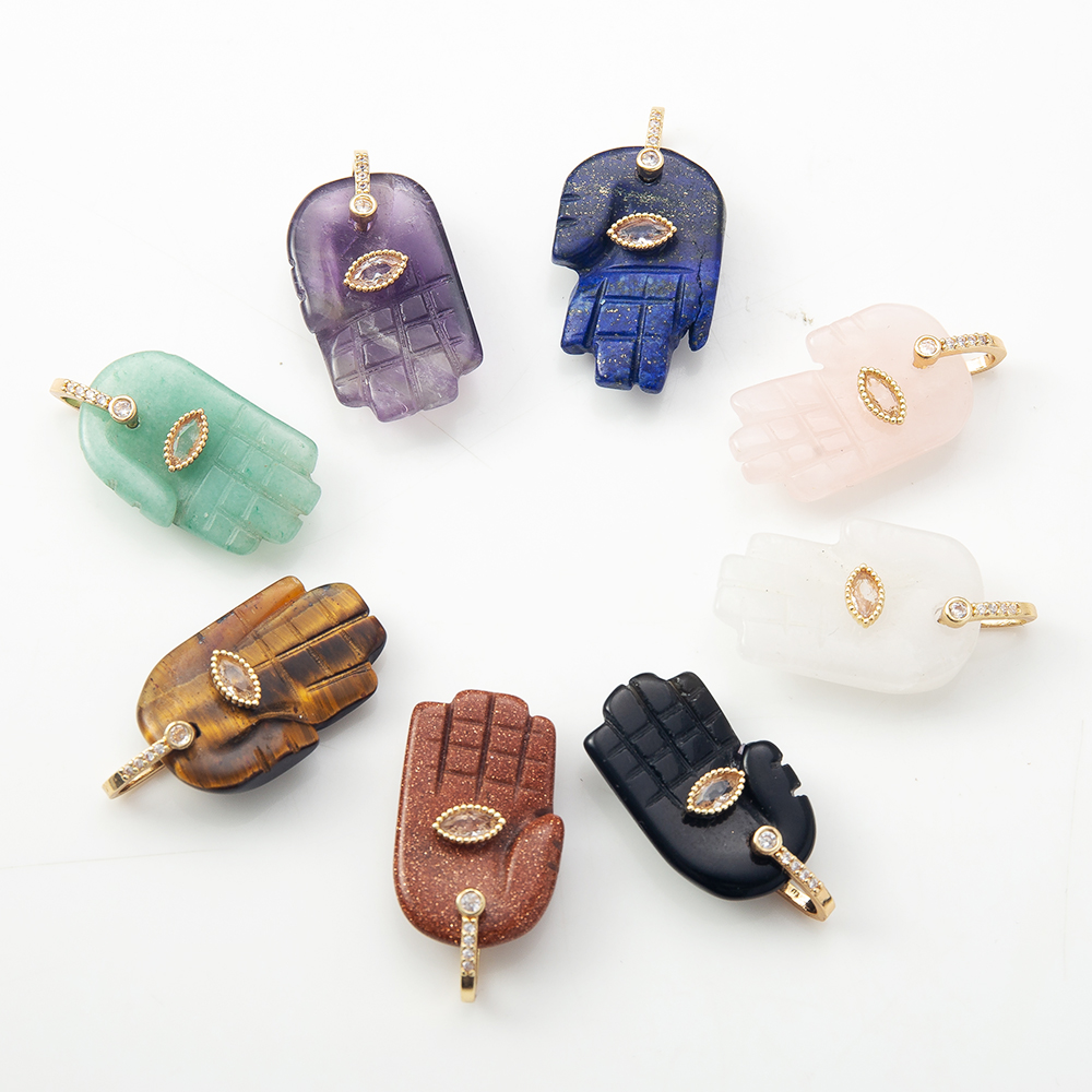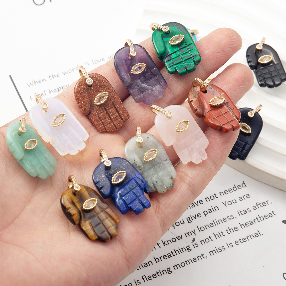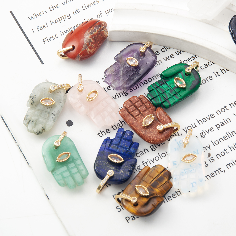 Gemstone Pendantifs en laiton, Pierre naturelle, avec laiton, Placage, DIY & pavé de micro zircon, plus de couleurs à choisir, Vendu par PC