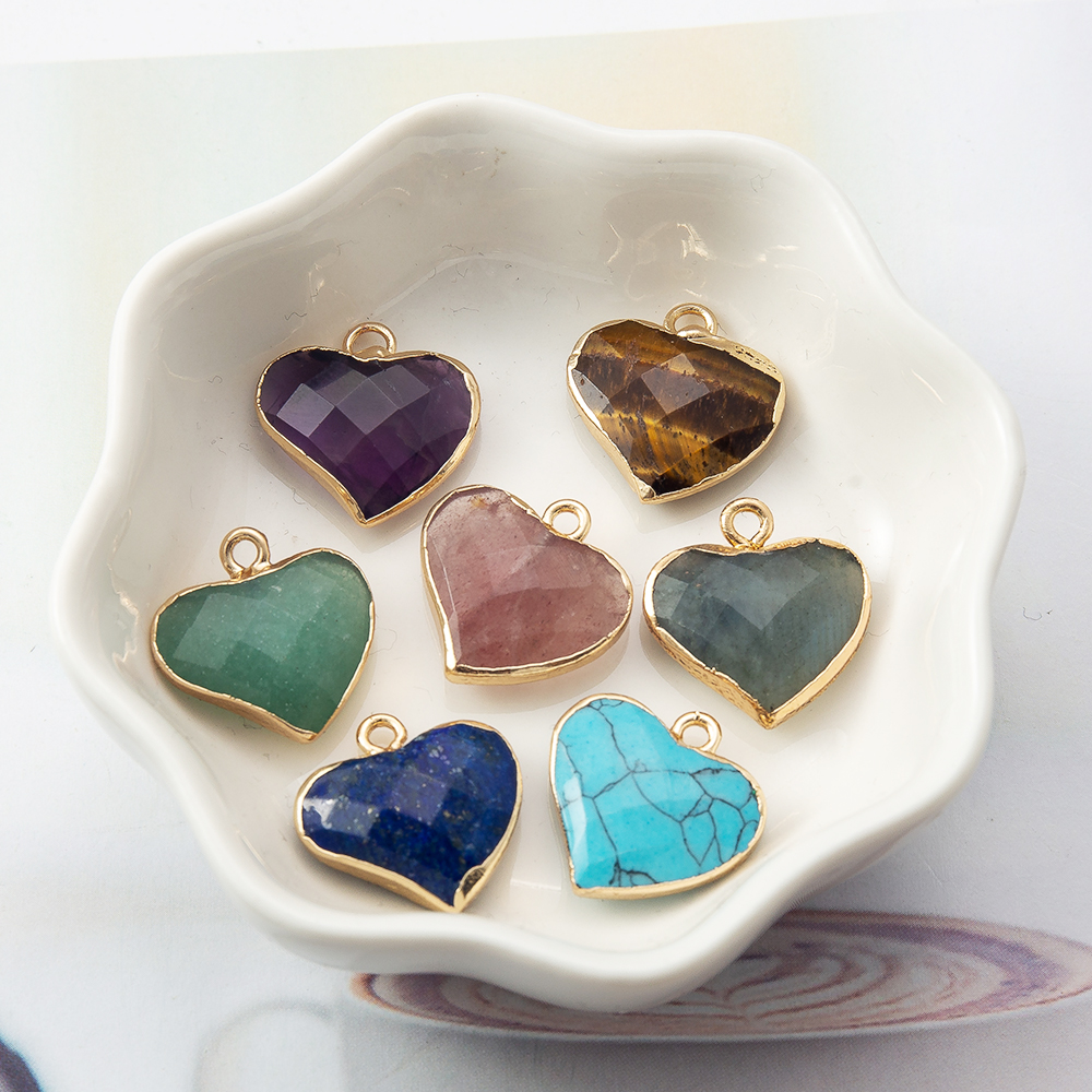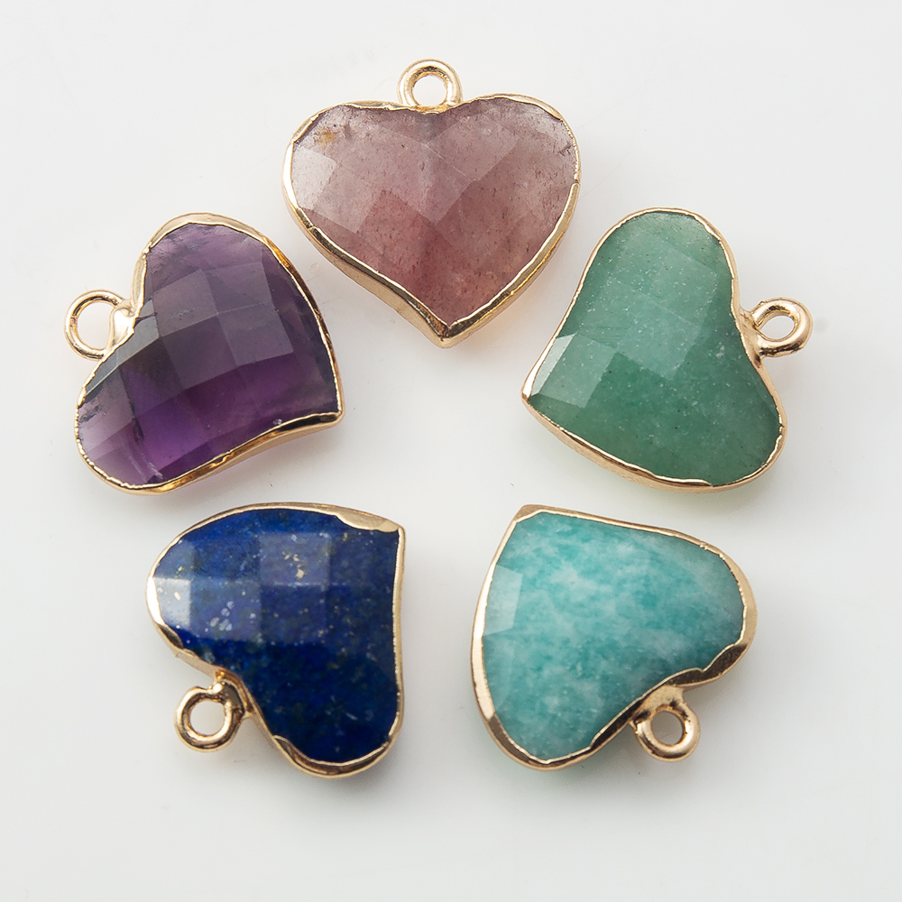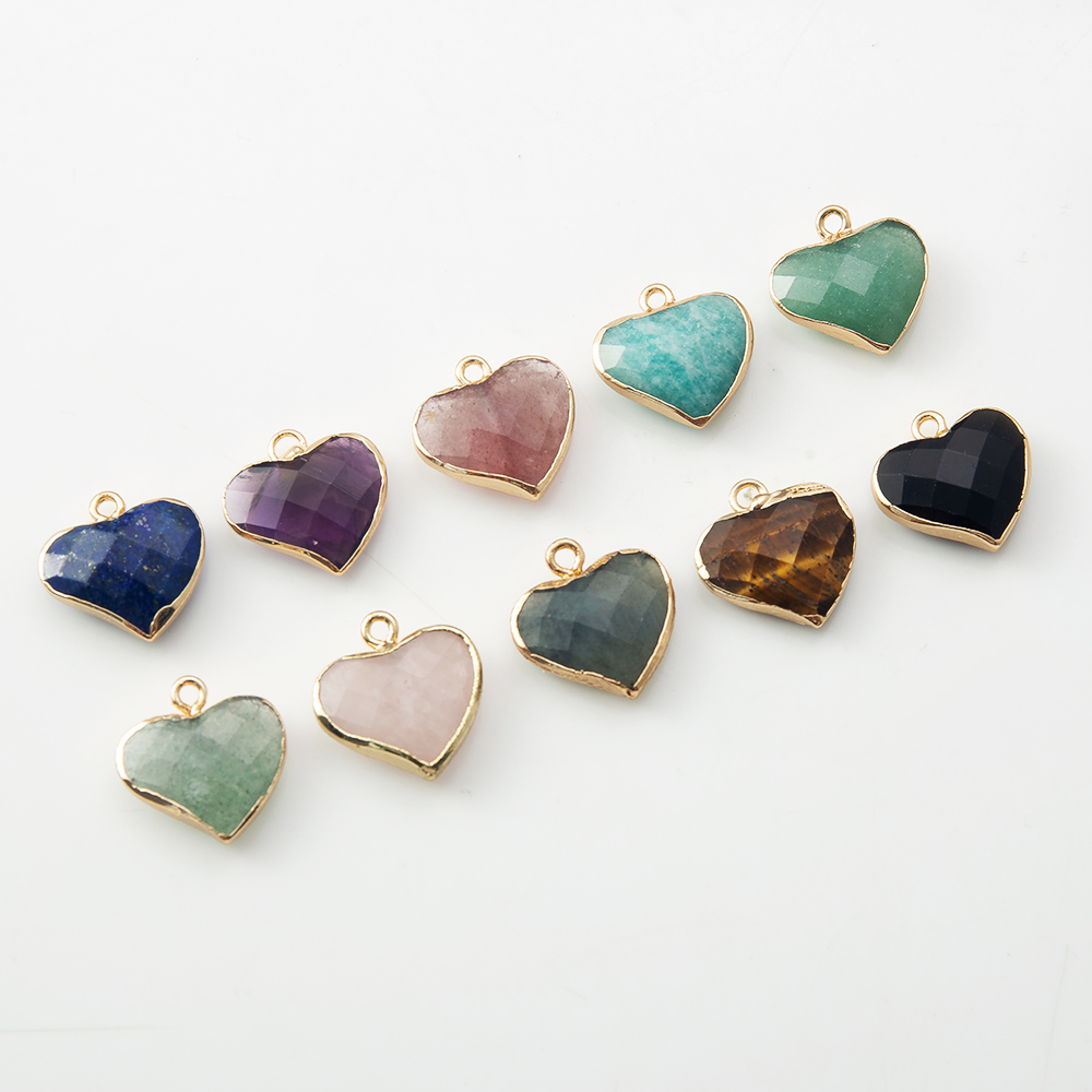 Gemstone Pendantifs en laiton, pierre gemme, avec laiton, coeur, DIY, plus de couleurs à choisir, 17x6.2x17.5mm, Vendu par PC