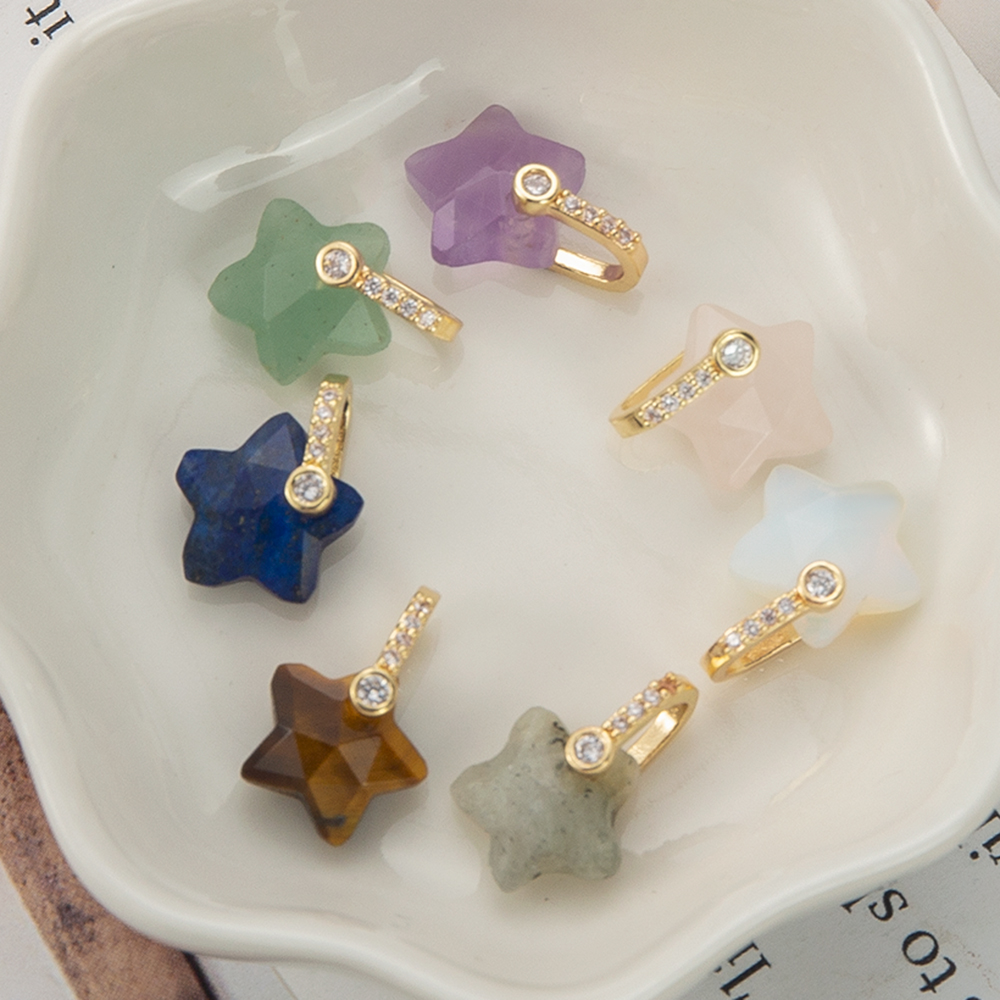Gemstone Pendantifs en laiton, avec pierre gemme, étoile, Placage, DIY & avec strass, plus de couleurs à choisir Vendu par PC