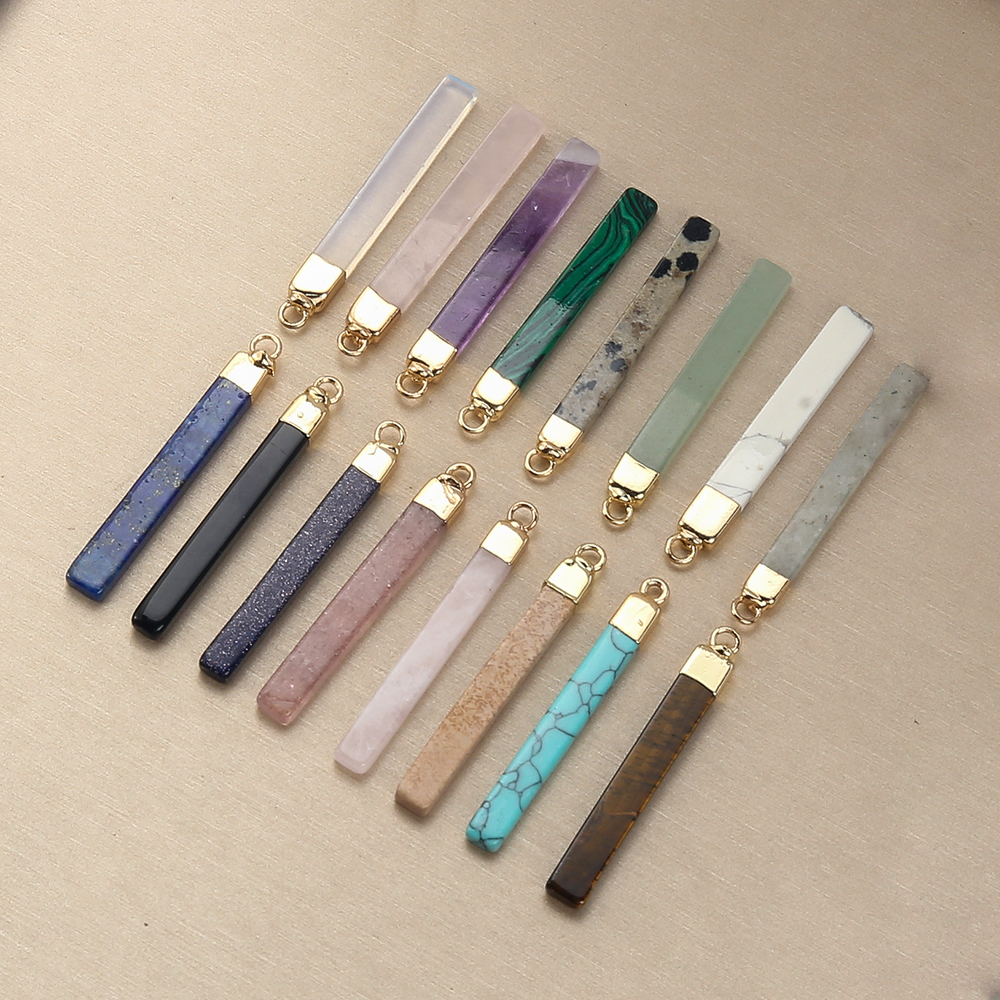 Gemstone Pendantifs en laiton, avec pierre gemme, DIY, plus de couleurs à choisir, 5.65x3.35x44.15mm, Vendu par PC
