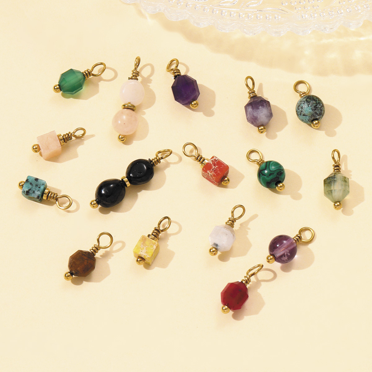 Gemstone Pendantifs en laiton, Acier inoxydable 304, avec pierre gemme, Placage, DIY, plus de couleurs à choisir, 3PC/sac, Vendu par sac