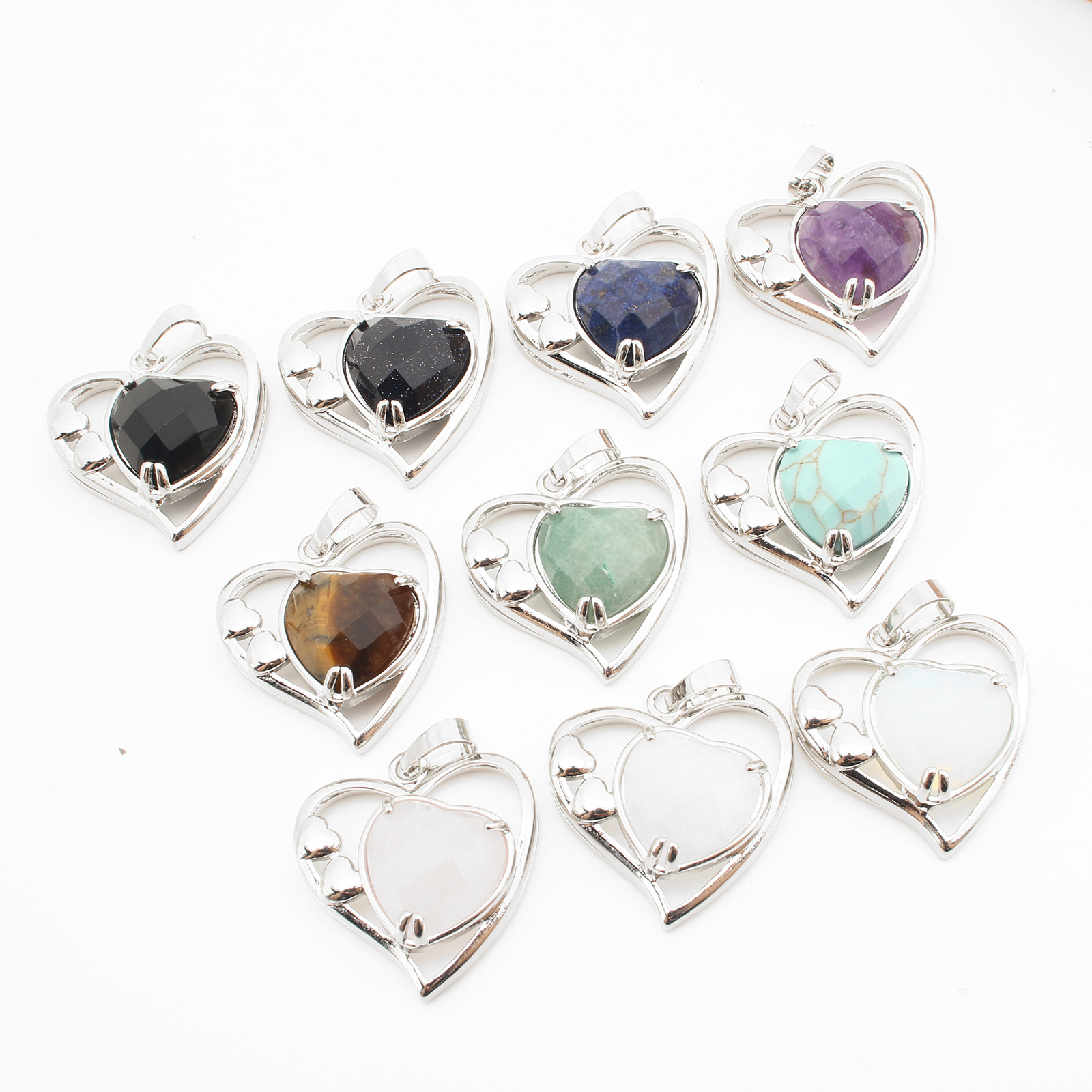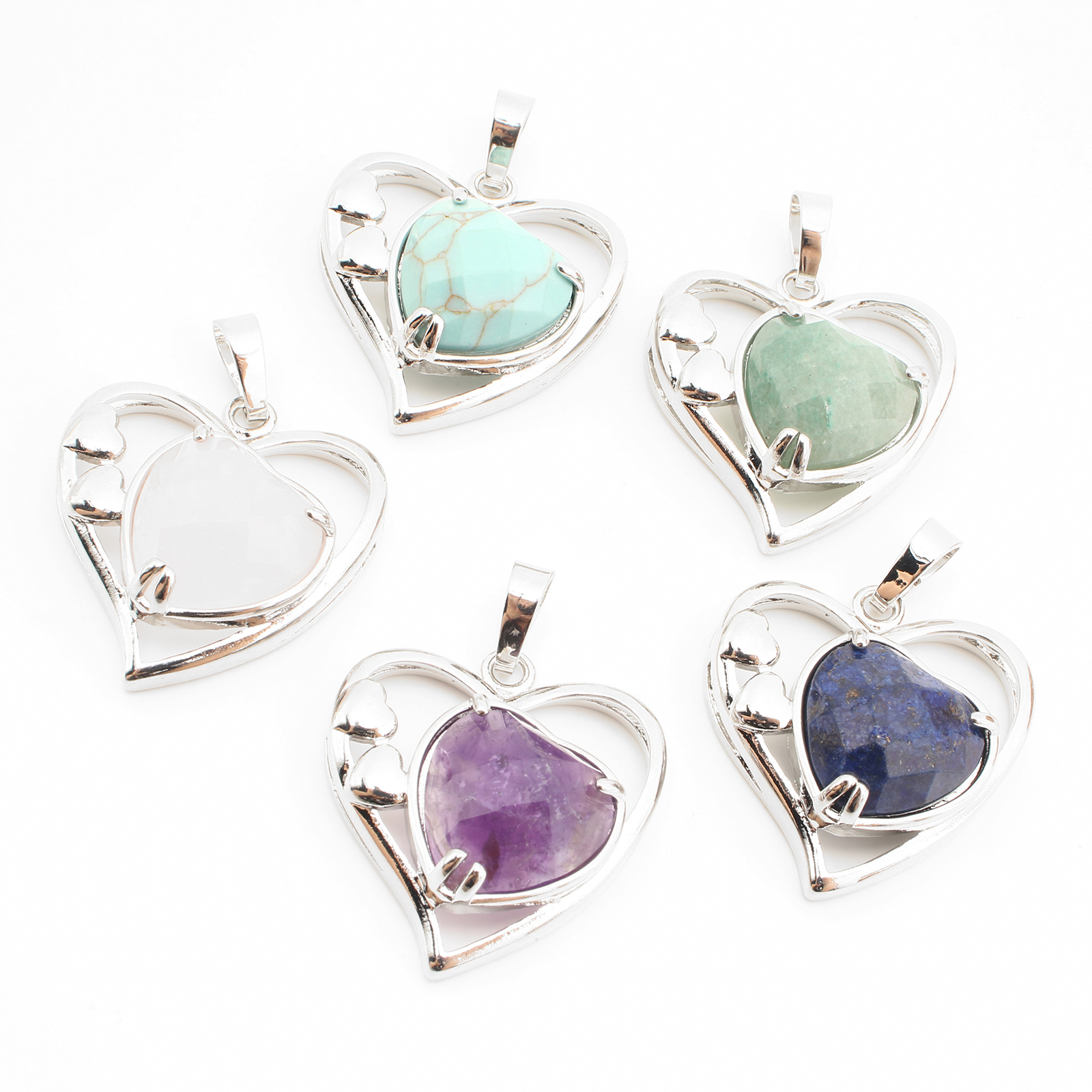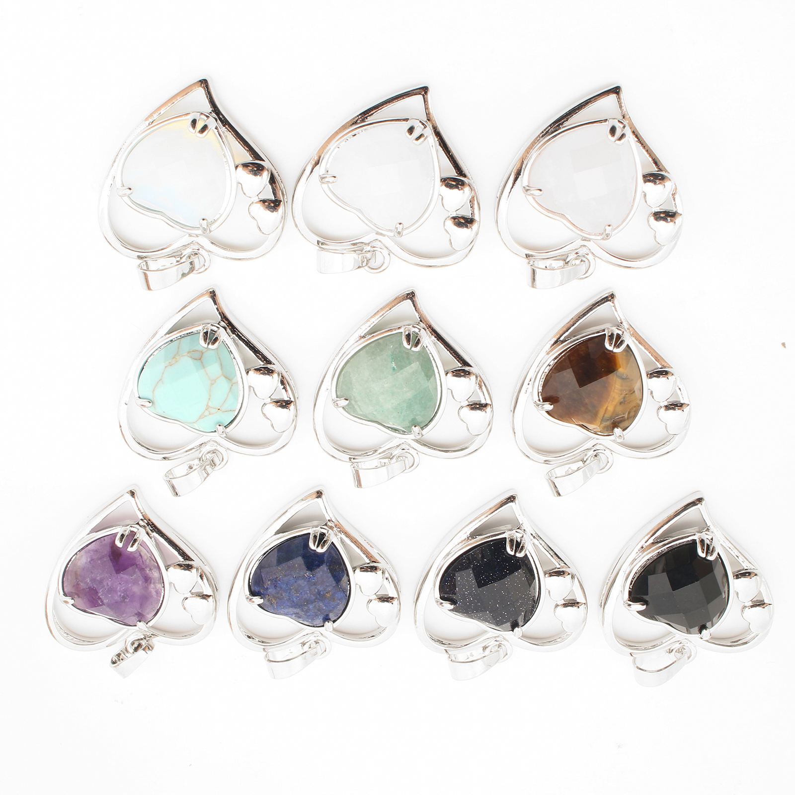 Gemstone Pendantifs en laiton, pierre gemme, avec laiton, coeur, Placage de couleur argentée, différents matériaux pour le choix, plus de couleurs à choisir, 20mm, Vendu par PC