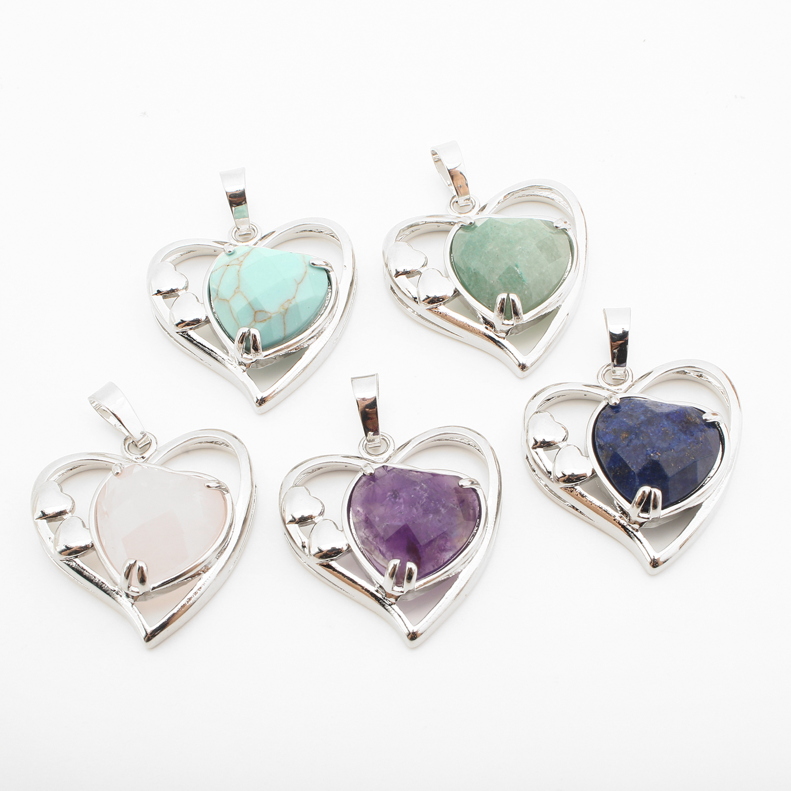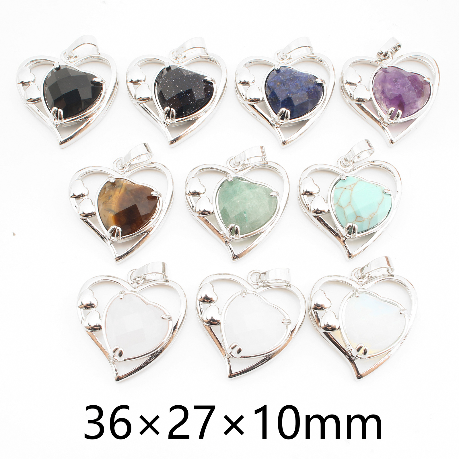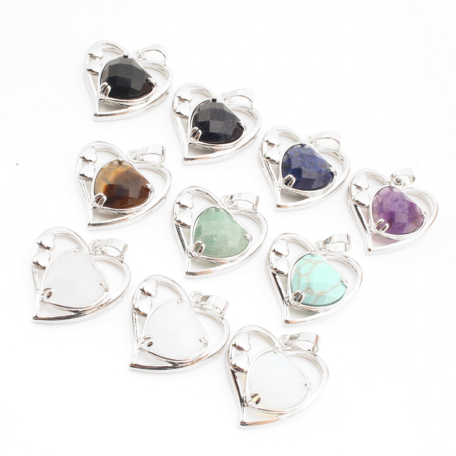 Gemstone Pendantifs en laiton, pierre gemme, avec laiton, coeur, Placage de couleur argentée, différents matériaux pour le choix, plus de couleurs à choisir, 20mm, Vendu par PC
