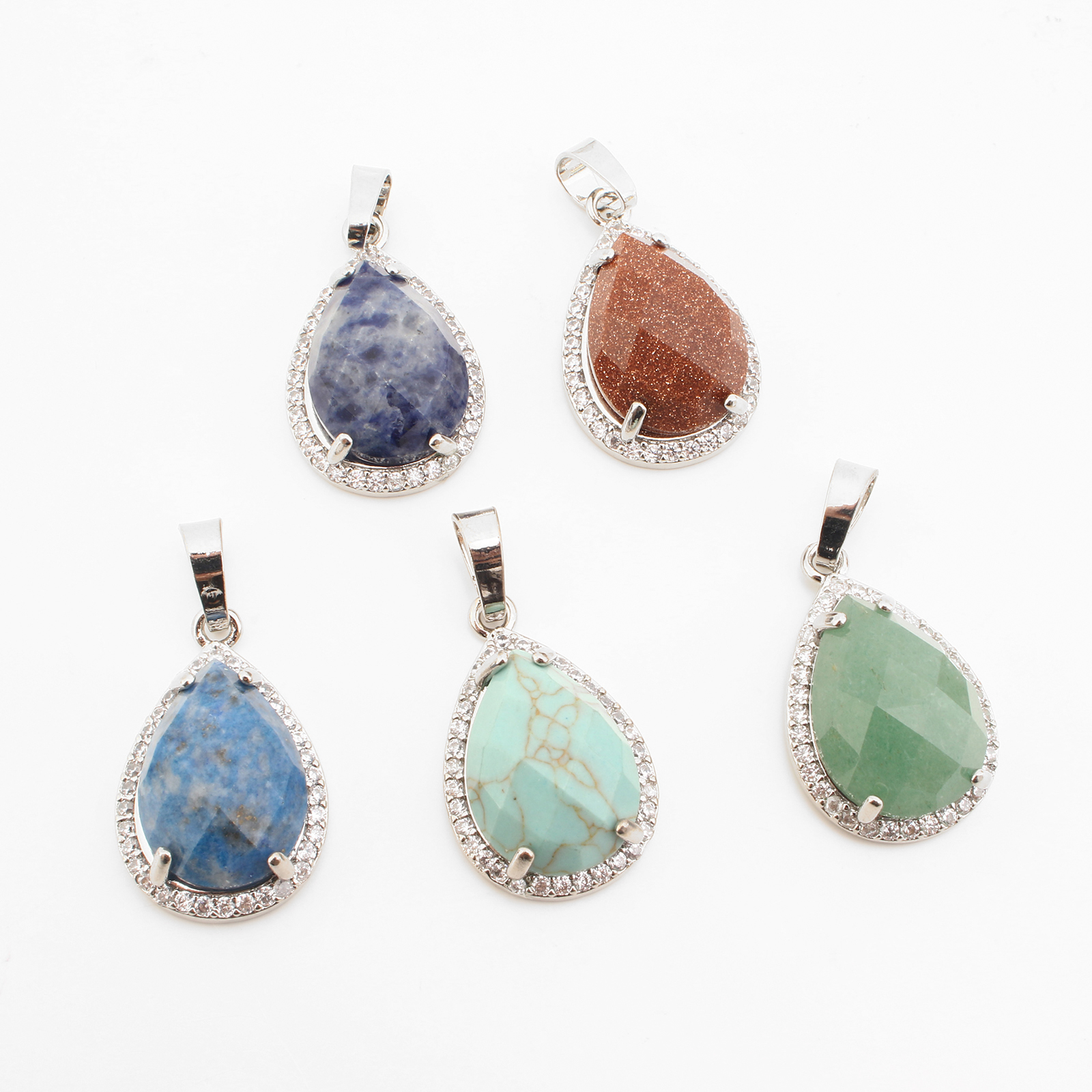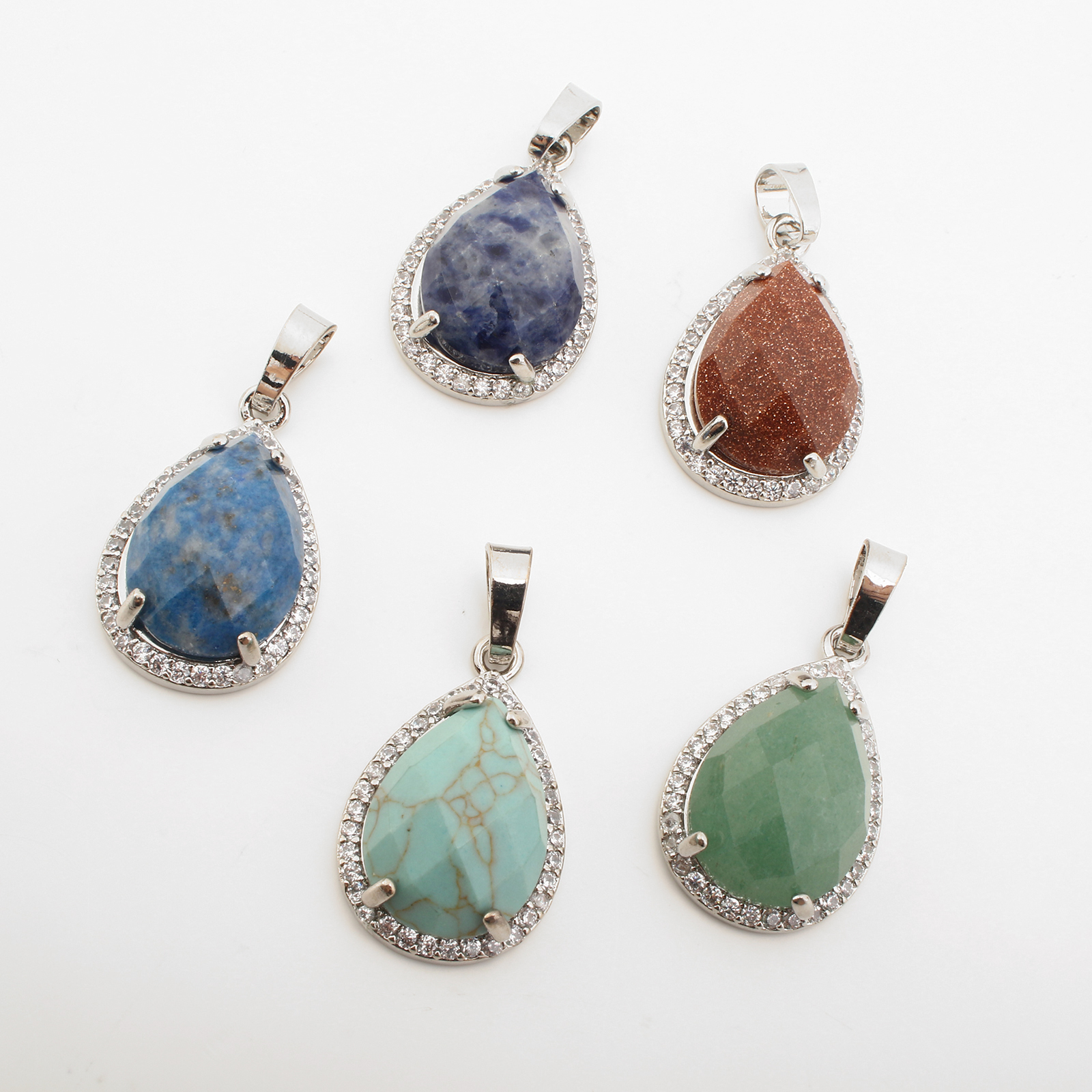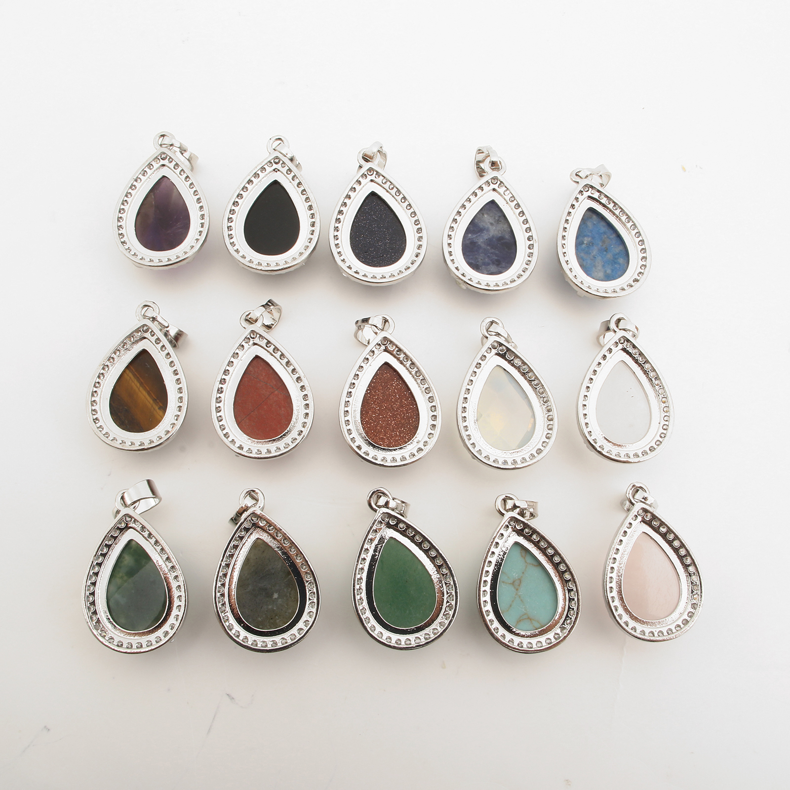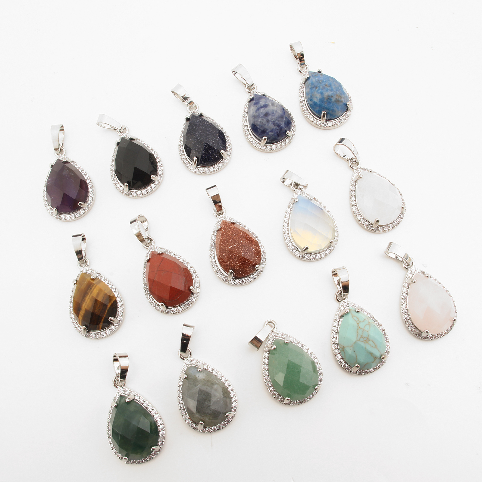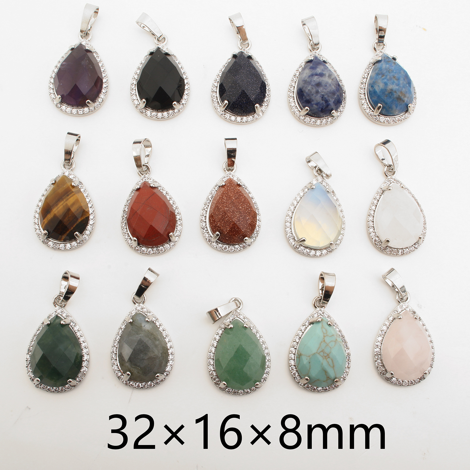 Gemstone Pendantifs en laiton, avec pierre gemme, larme, Placage de couleur platine, DIY & différents matériaux pour le choix & avec strass, 32x16x8mm, Vendu par PC