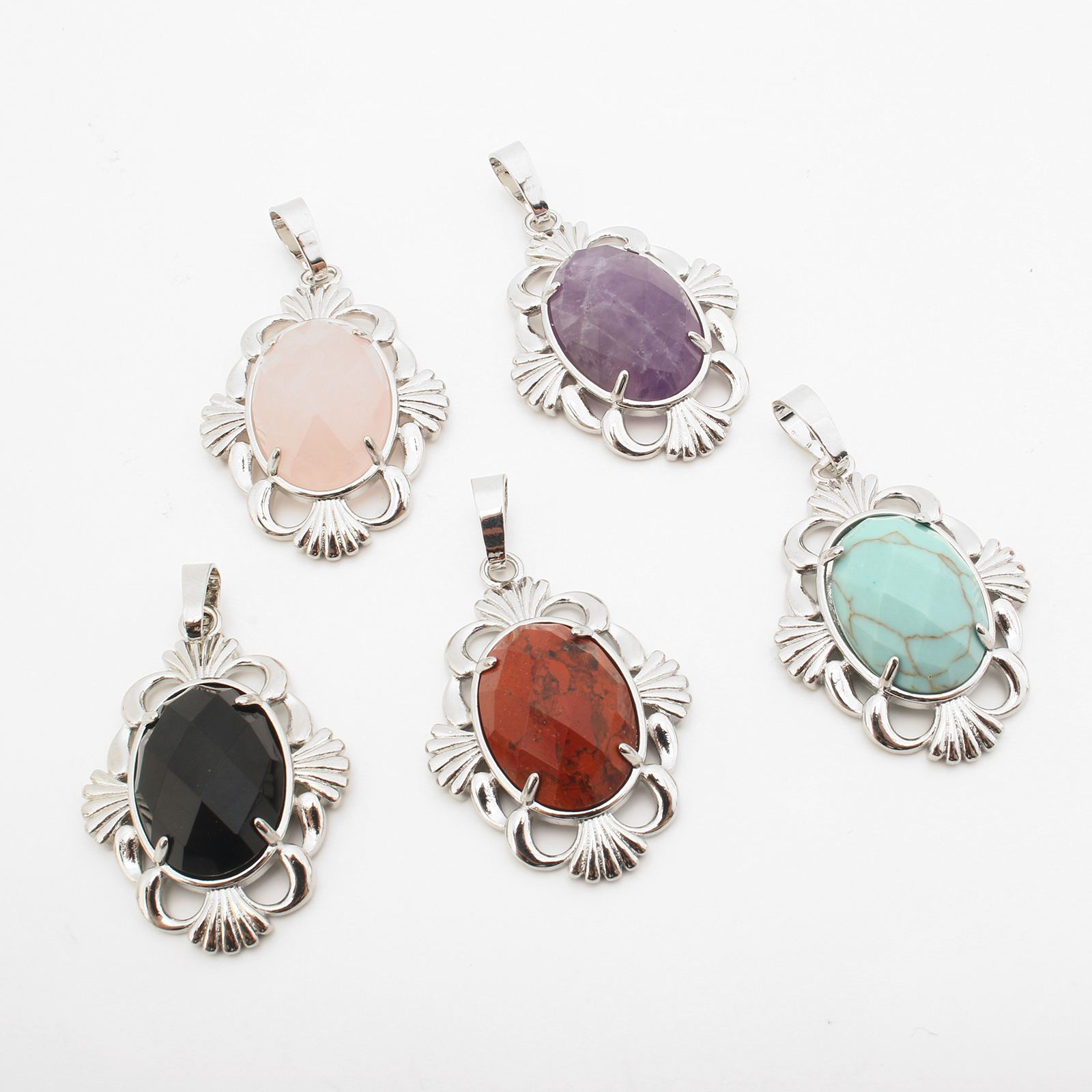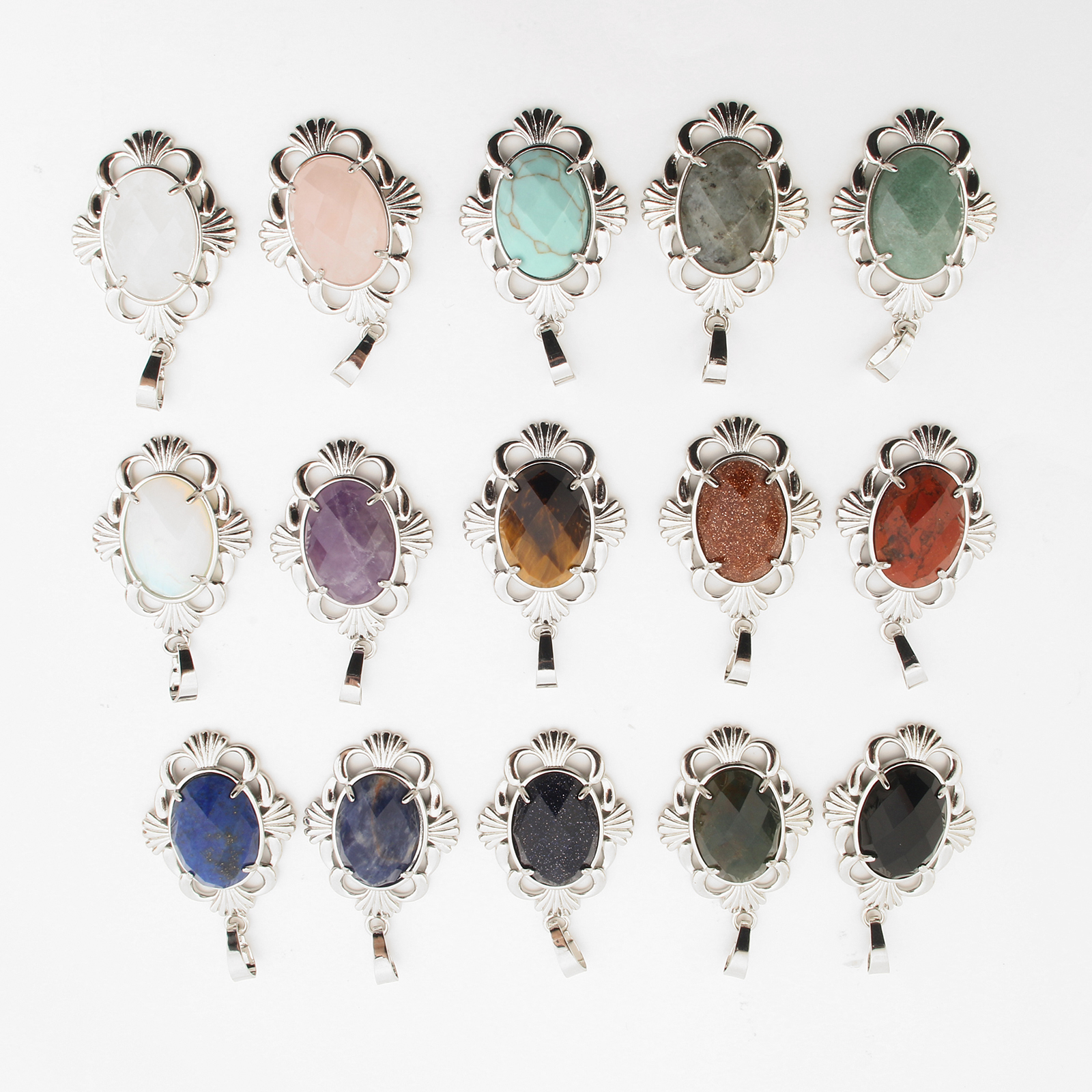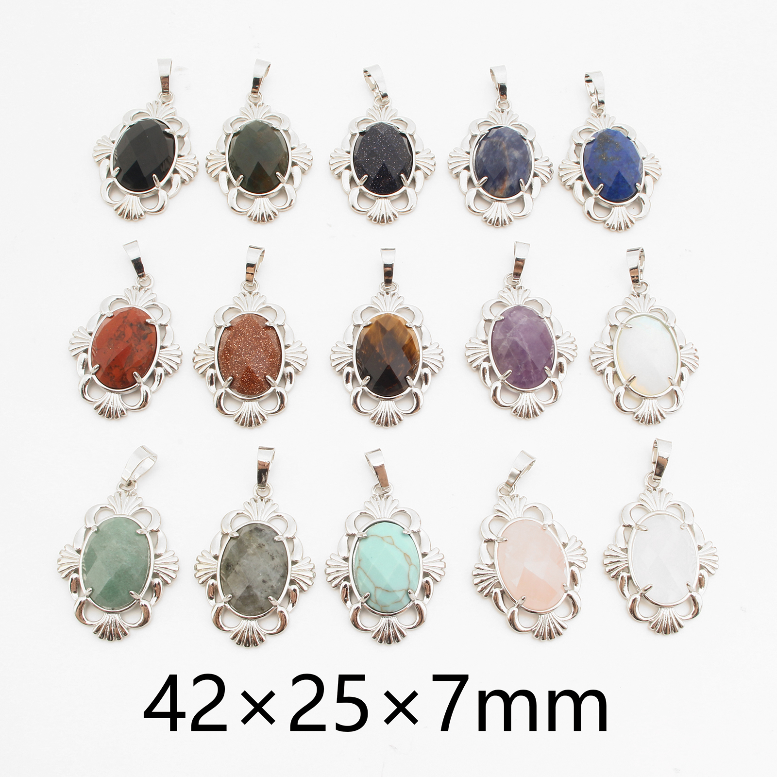 Gemstone Pendantifs en laiton, avec pierre gemme, Placage de couleur platine, DIY & différents matériaux pour le choix & creux, 42x25x7mm, Vendu par PC