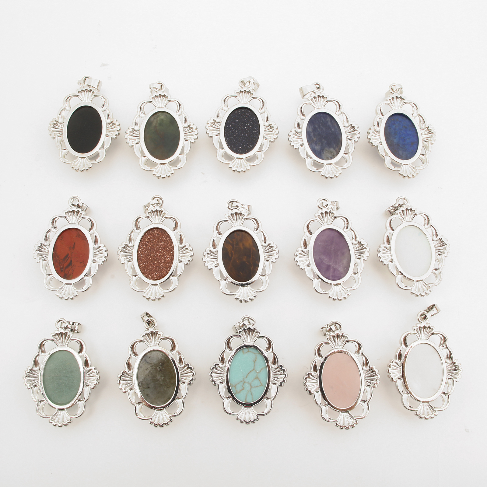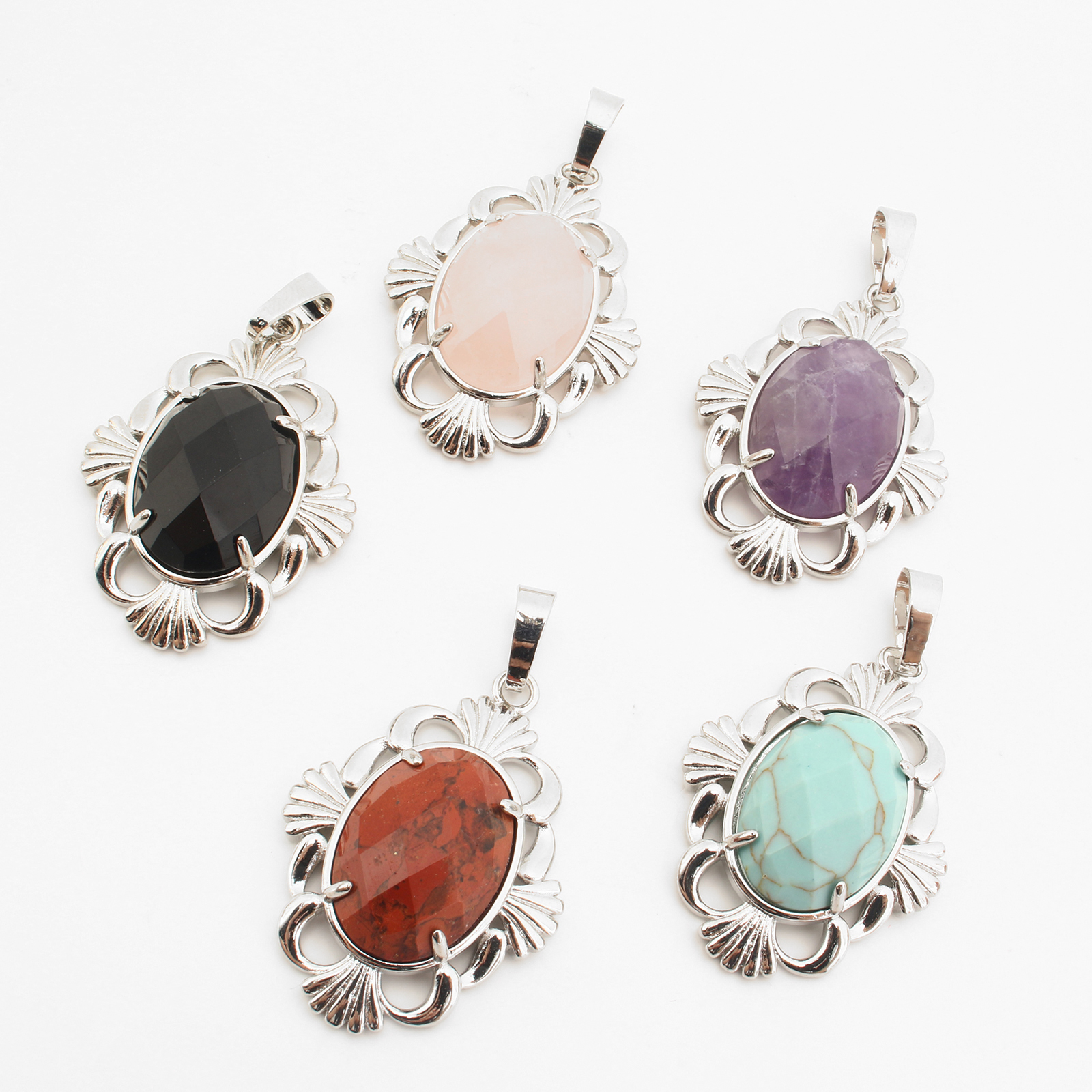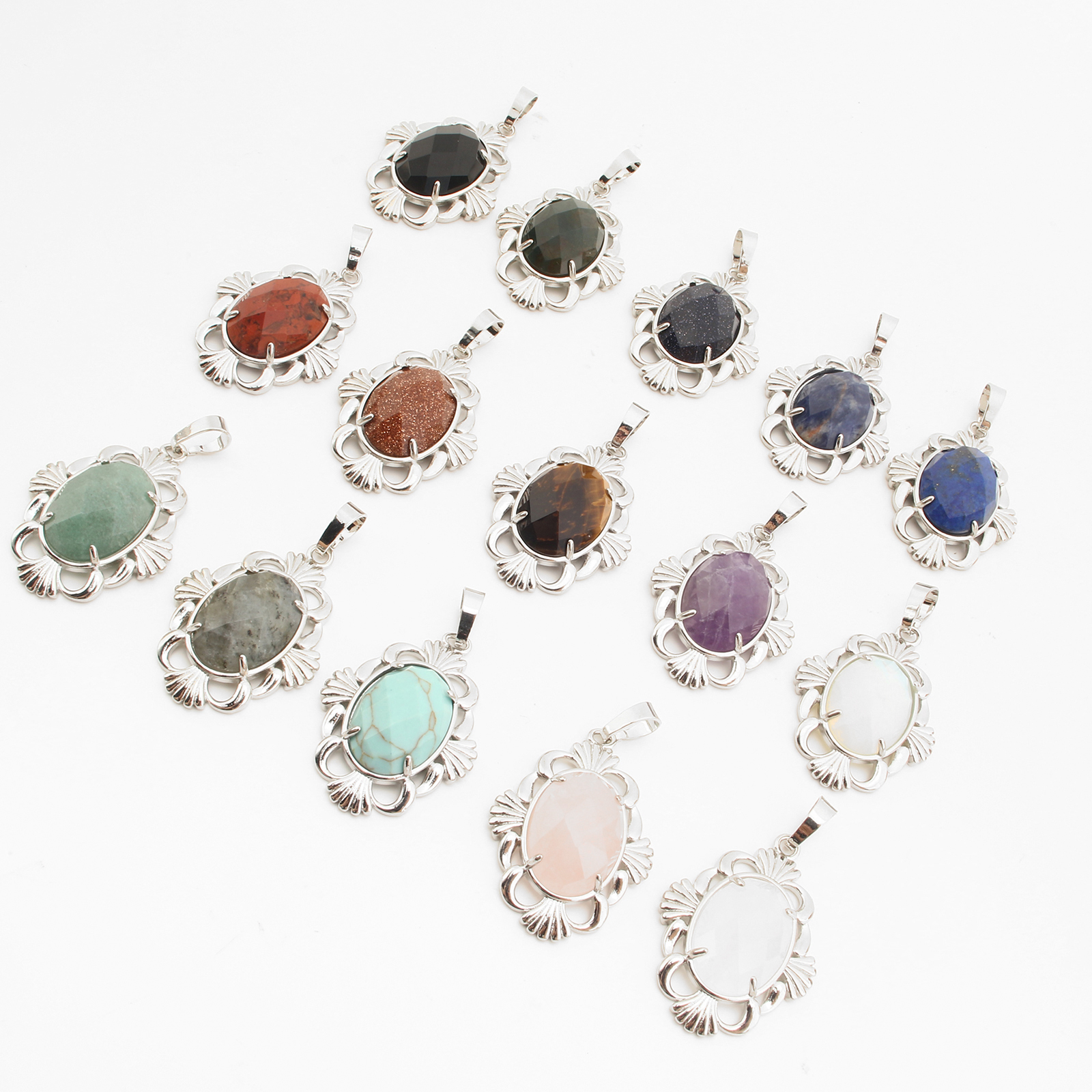 Gemstone Pendantifs en laiton, avec pierre gemme, Placage de couleur platine, DIY & différents matériaux pour le choix & creux, 42x25x7mm, Vendu par PC