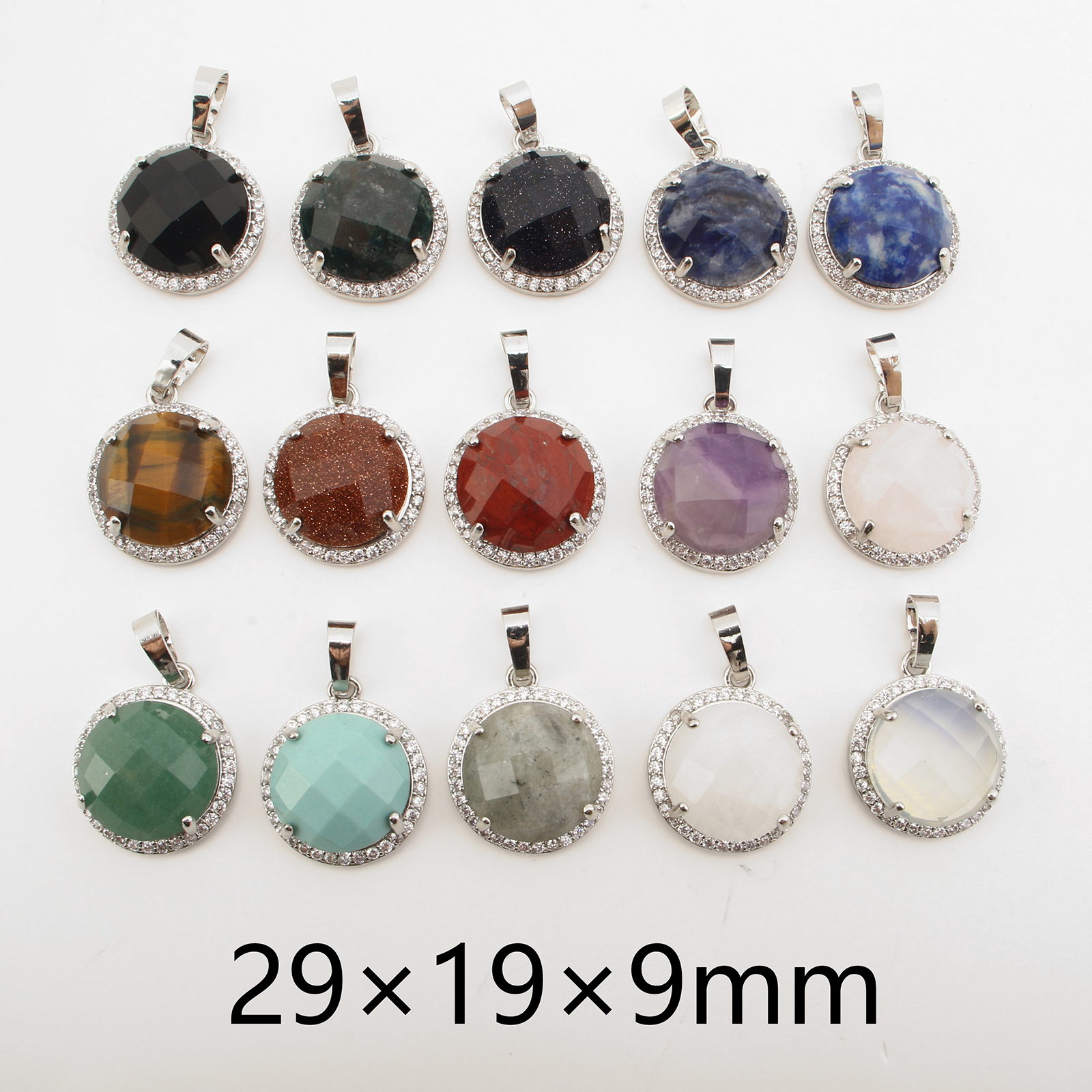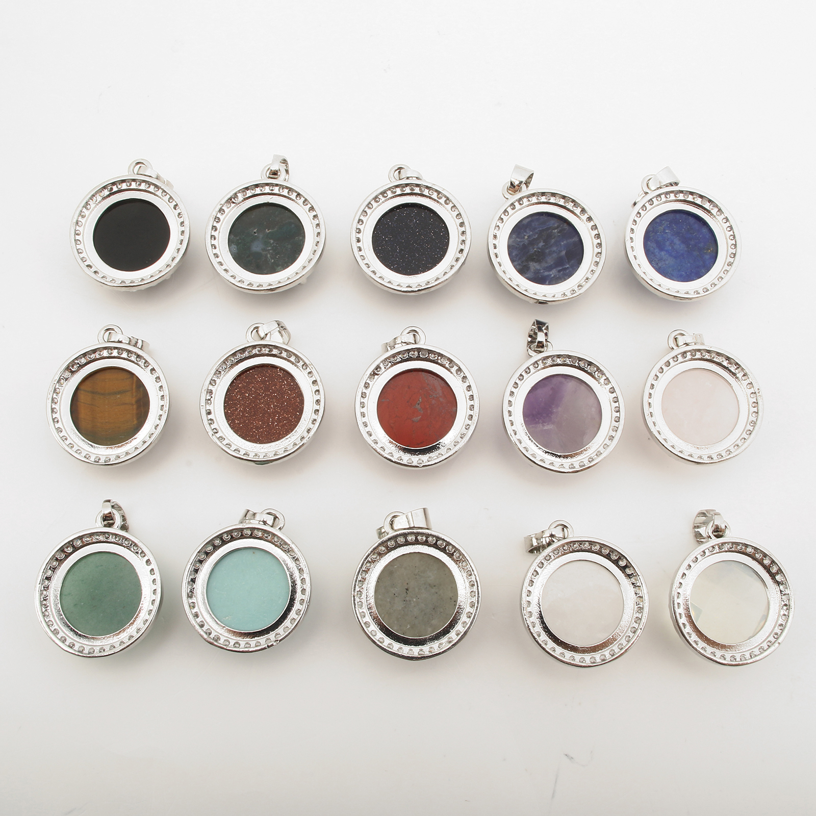 Gemstone Pendantifs en laiton, avec pierre gemme, Rond, Placage de couleur platine, DIY & différents matériaux pour le choix & avec strass, 29x19x9mm, Vendu par PC