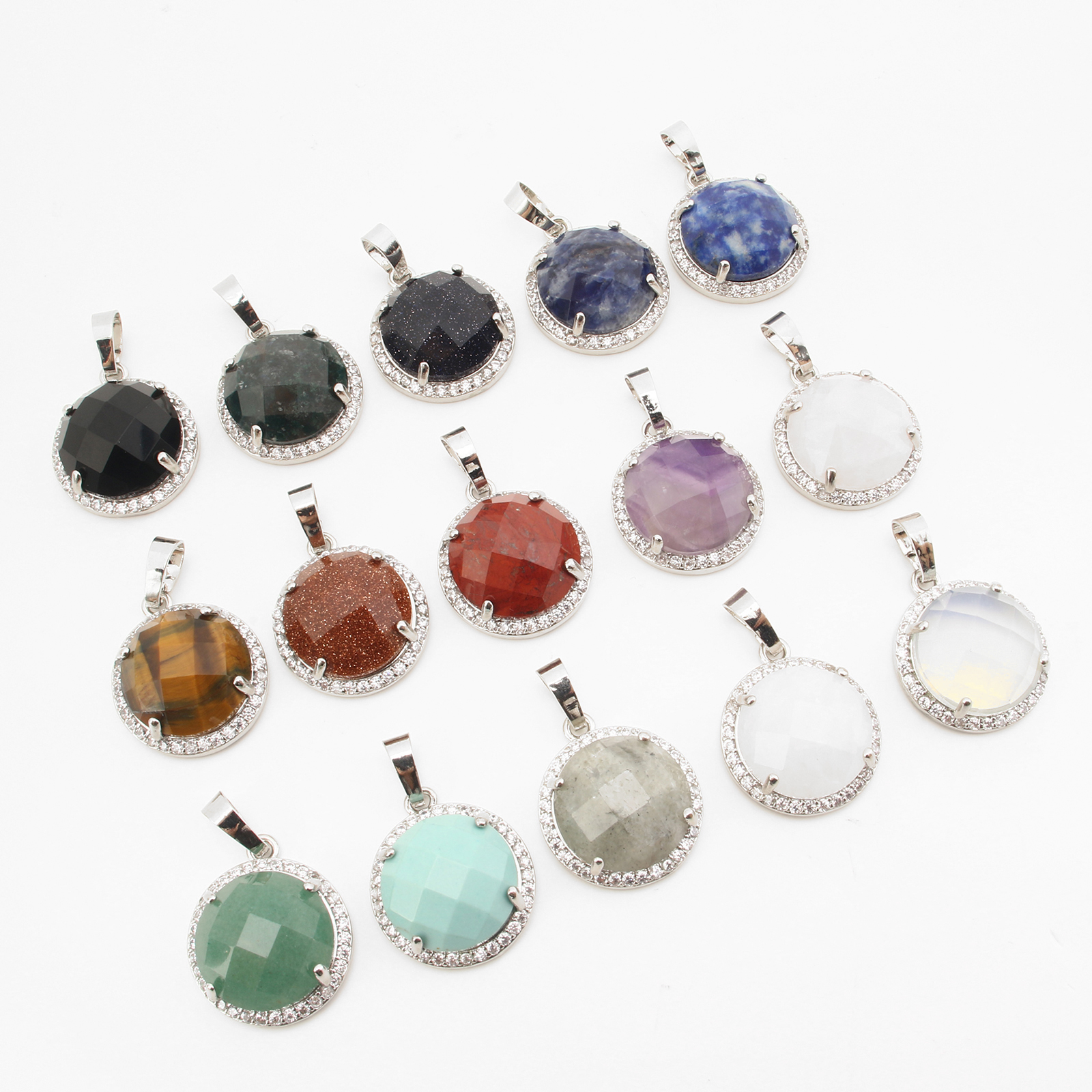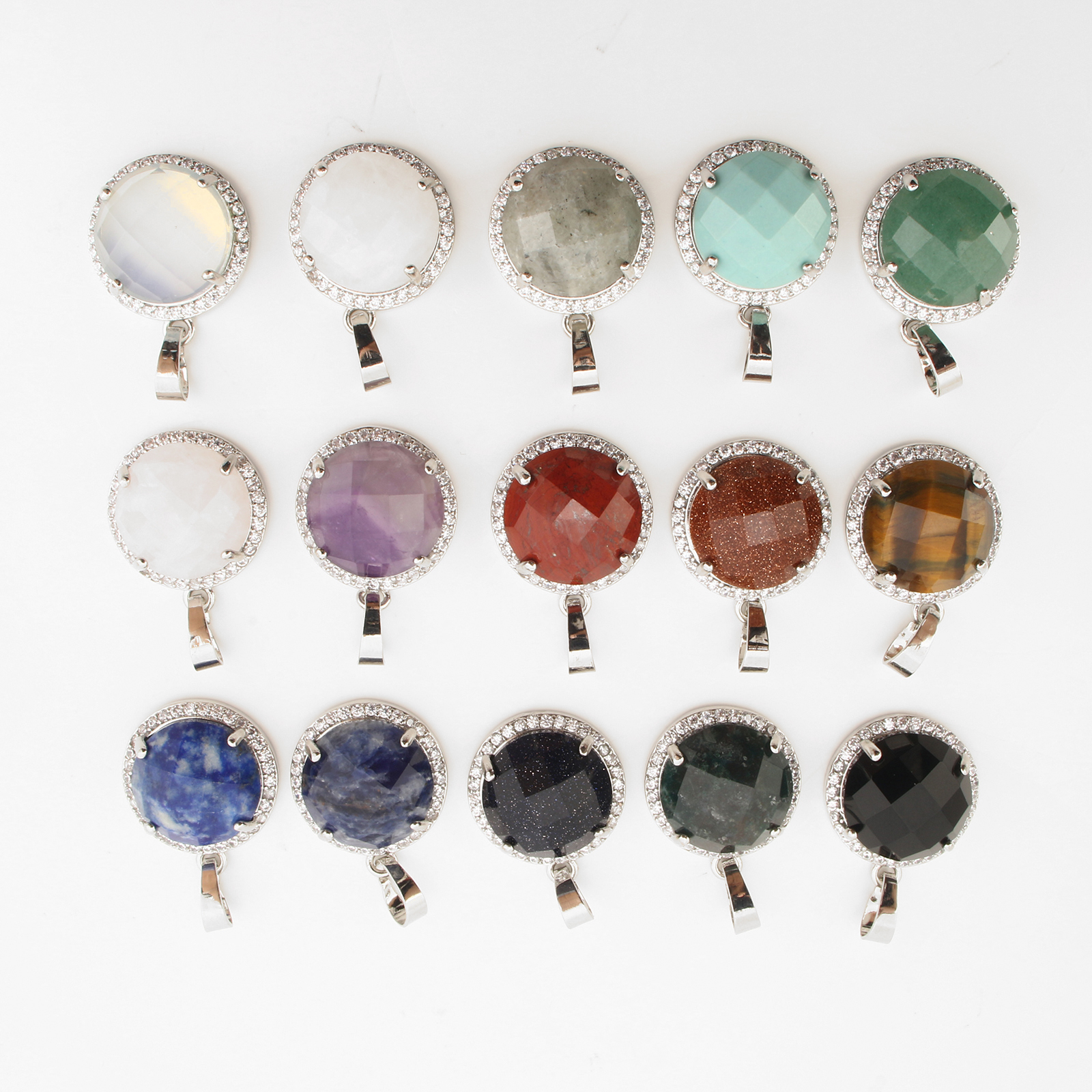 Gemstone Pendantifs en laiton, Pierre naturelle, avec laiton, Placage, DIY & pavé de micro zircon, plus de couleurs à choisir, Vendu par PC