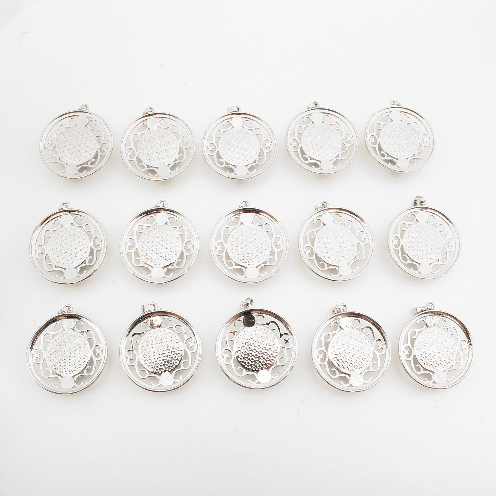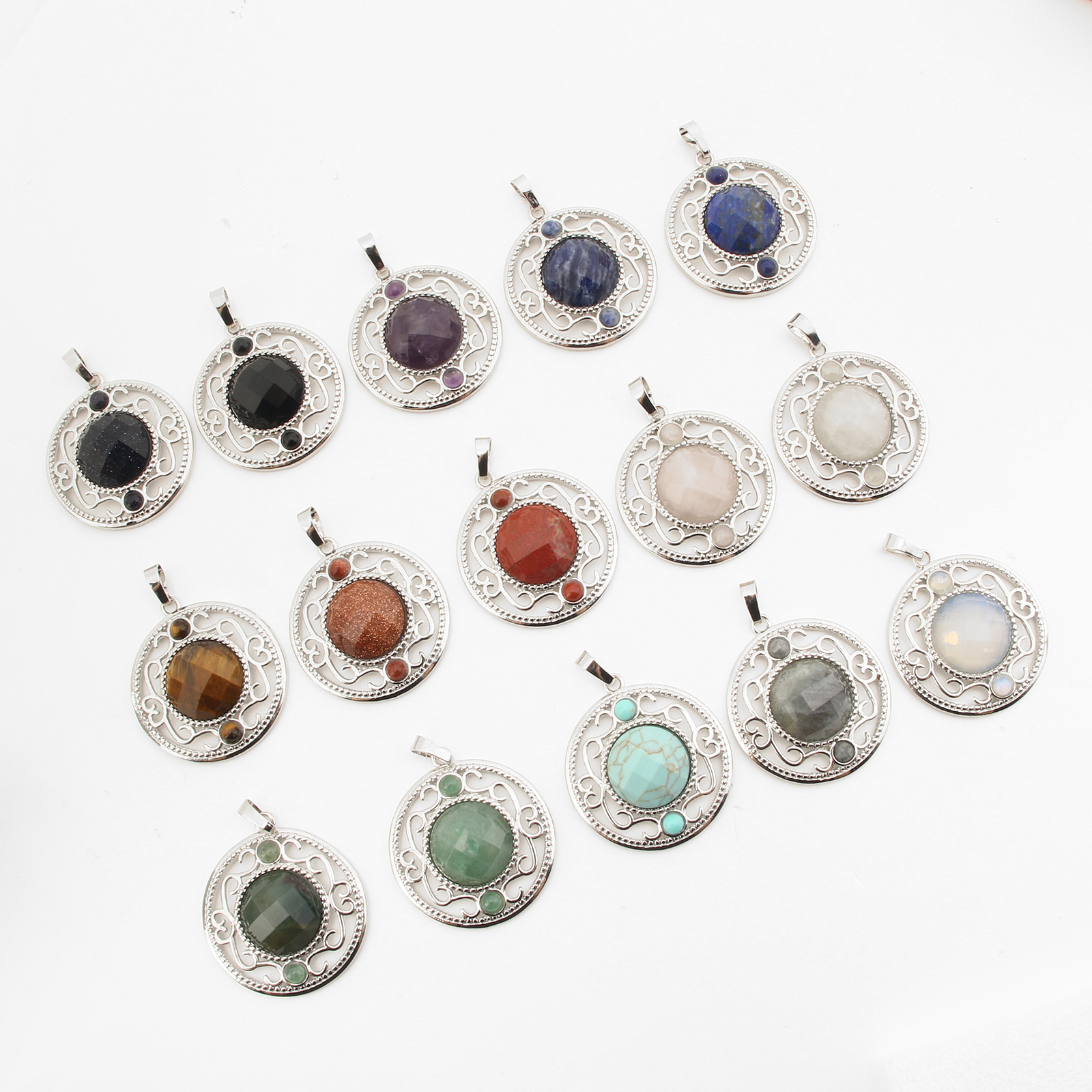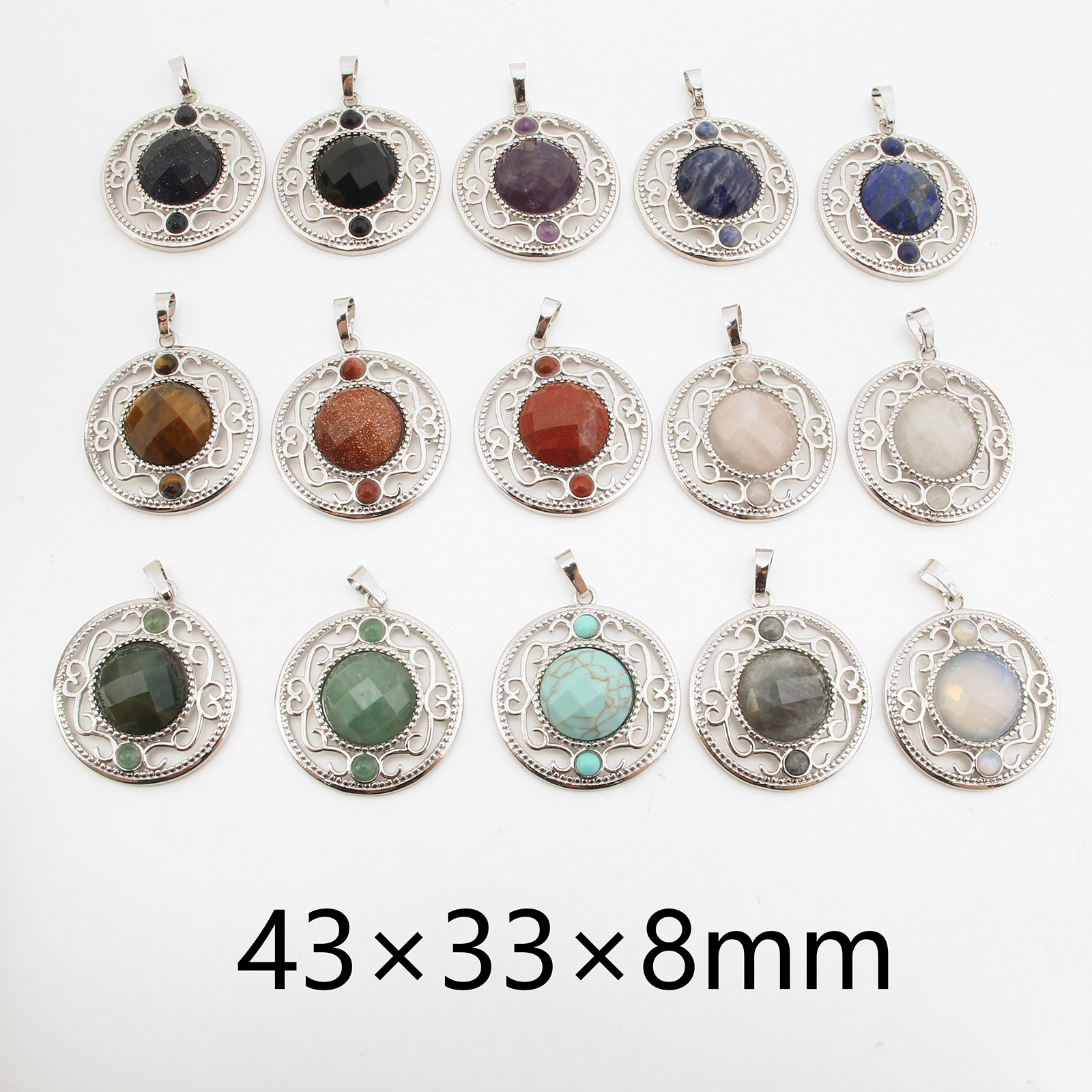 Gemstone Pendantifs en laiton, avec pierre gemme, Rond, Placage de couleur platine, DIY & différents matériaux pour le choix & creux, 43x33x8mm, Vendu par PC